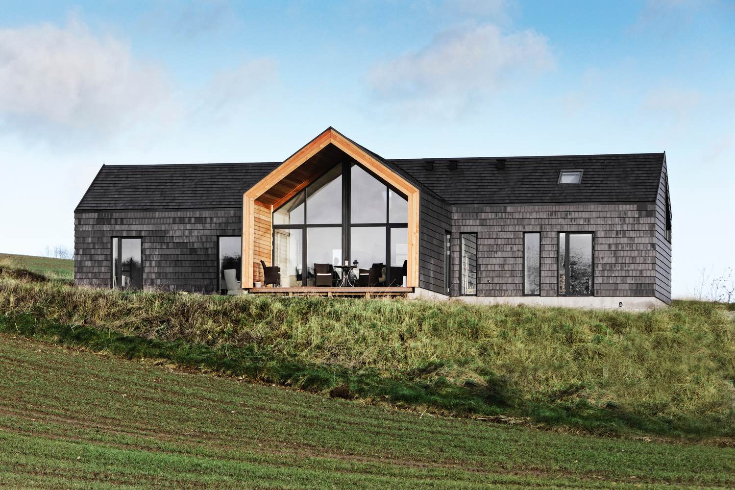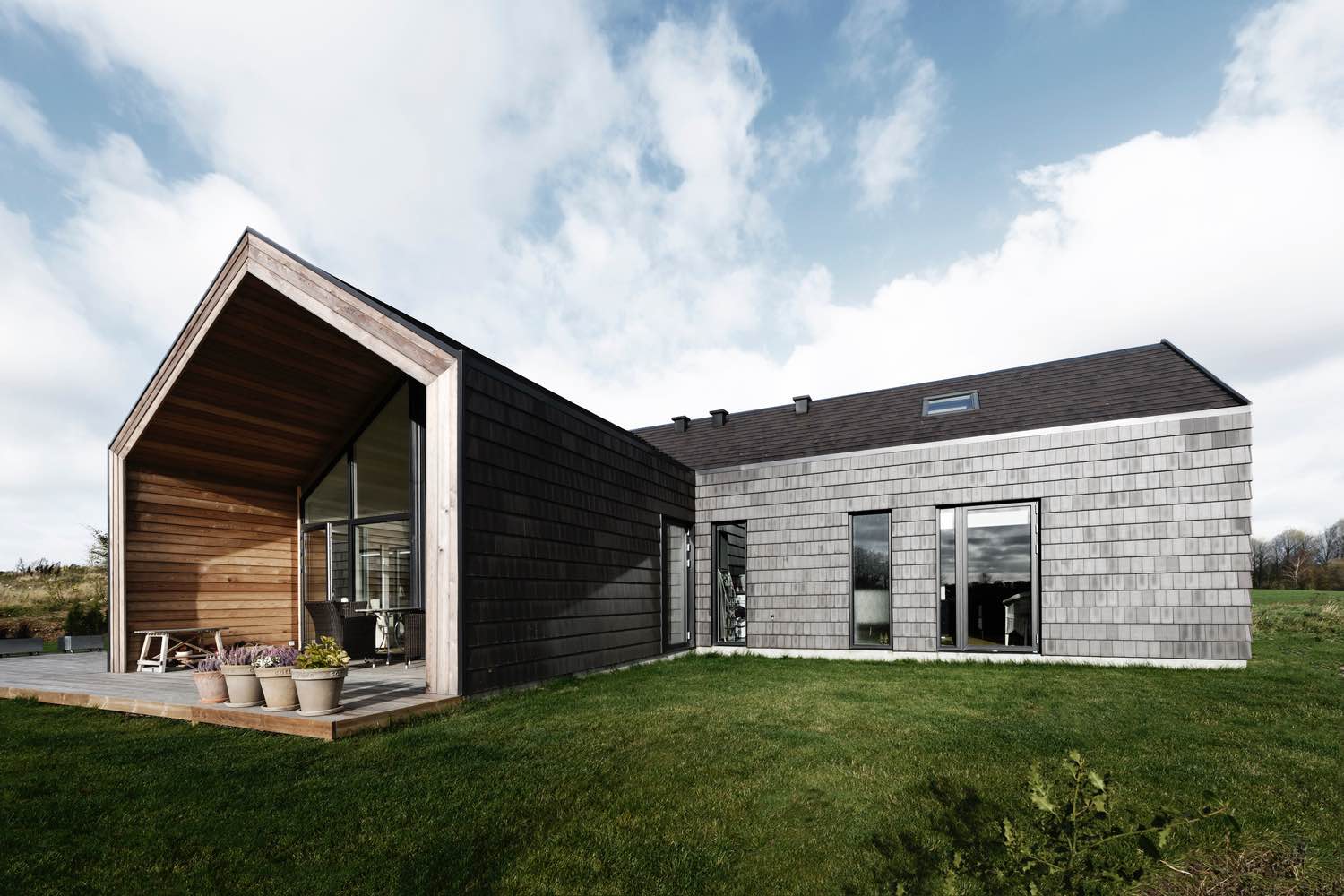 Brick Shingle House łączy tradycję i nowoczesność – cegła, drewno i prosta forma dachowa nawiązują do lokalnej architektury, a jednocześnie tworzą wizję zrównoważonego domu przyszłości. Dzięki ograniczonej palecie materiałów i subtelnej estetyce projekt nie tylko wpisuje się w krajobraz, ale też wyznacza kierunek dla redukcji emisji w budownictwie jednorodzinnym w Danii.
