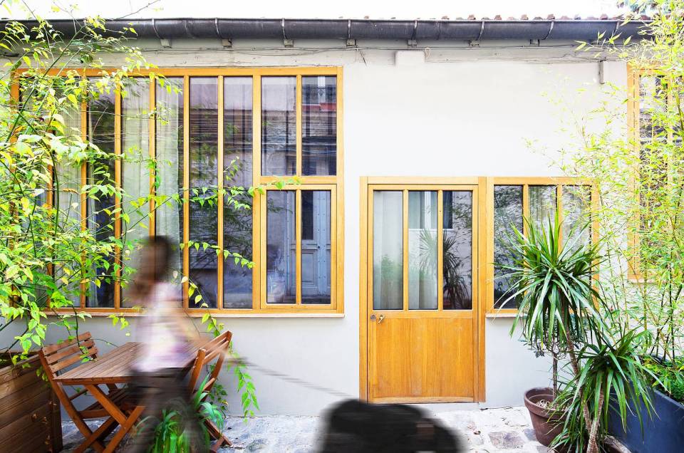 Ta loftowa rezydencja powstała w przekształconym, 50-metrowym warsztacie w jednej z paryskich dzielnic, z widokiem na brukowany dziedziniec. Biuro NZI Architectes zaprojektowało wnętrze tak, aby maksymalnie wykorzystać istniejącą przestrzeń, jednocześnie zachowując charakter starego budynku. Architekci wykorzystali różnicę poziomów podłogi, aby oddzielić kuchnię i jadalnię od części salonu – krawędź podłogi pełni także funkcję ławki przy stole. Białe ściany i sufity harmonizują z odsłoniętymi kamiennymi ścianami, tworząc połączenie surowości i przytulności, rustykalności i nowoczesności, przypominające atmosferę nowoczesnej stodoły.