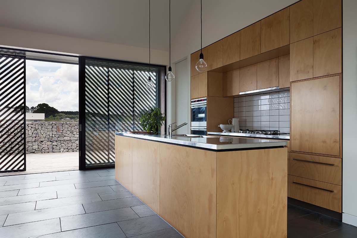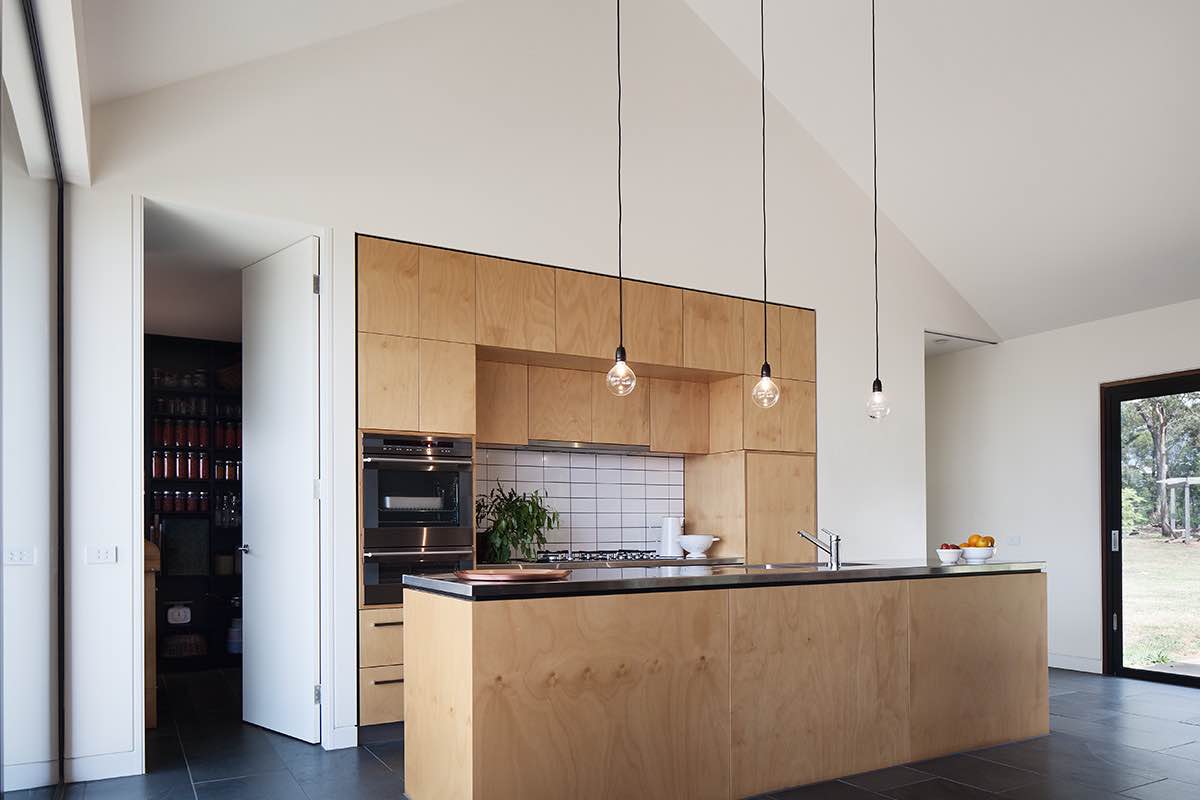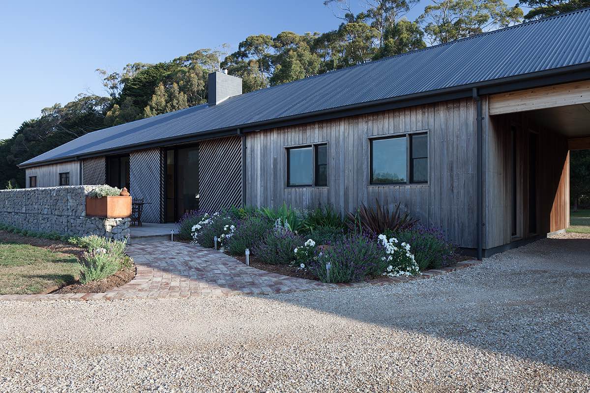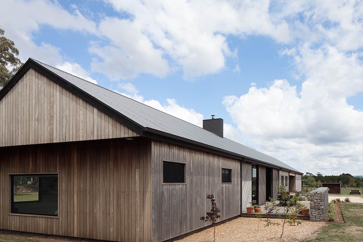 Elewacje pokryto drewnem spotted gum, które z biegiem czasu pokryje się srebrzystą patyną, wtapiając dom w krajobraz eukaliptusów. Jasne, spokojne materiały nadają budynkowi szlachetny, rustykalny charakter, jednocześnie pozwalając naturze pozostać na pierwszym planie.