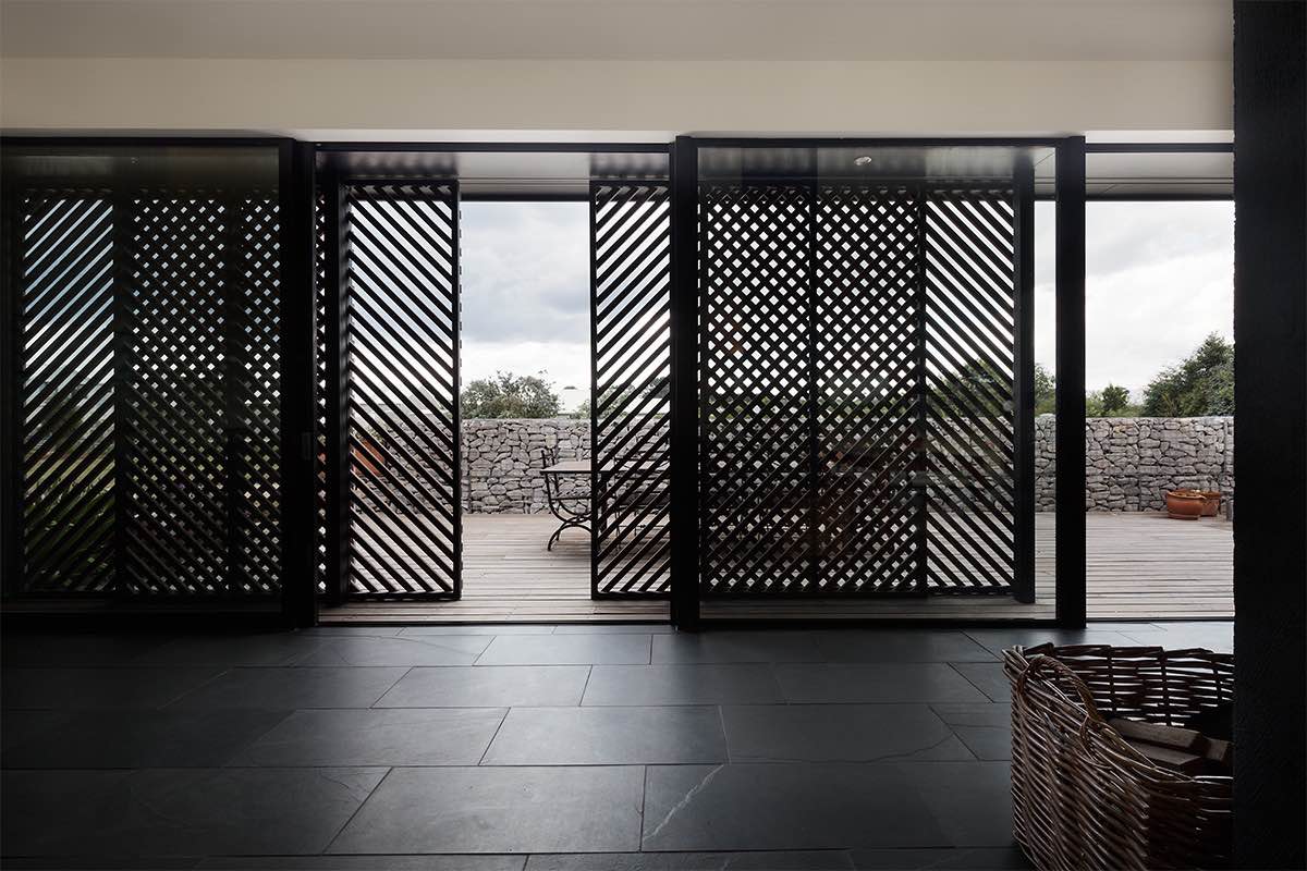 Dom zaprojektowano jako zespół współczesnych form wiejskich skupionych pod jednym, rozległym dachem dwuspadowym. Konstrukcja łączy w sobie trzy funkcje: dawną maszynownię (pełniącą rolę garażu), zadaszoną strefę załadunkową oraz główny dom mieszkalny z otwartą kuchnią i kominkiem w sercu wnętrza. Ten prosty, ale wyrafinowany gest sprawia, że całość wygląda naturalnie – jakby stała tu od pokoleń.