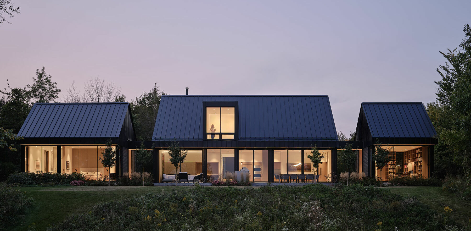 Triptych House to dom, który odpowiada na potrzeby nowoczesnych rodzin – zapewnia funkcjonalność, prywatność, kontakt z naturą oraz wyrafinowaną estetykę. Przemyślany układ przestrzenny, szlachetne materiały i subtelne detale sprawiają, że budynek doskonale wpisuje się w krajobraz i ducha Prince Edward County.