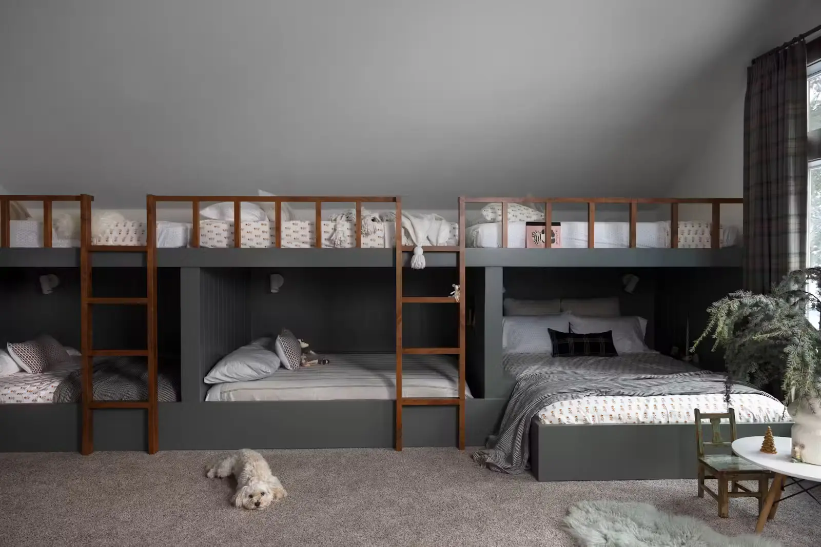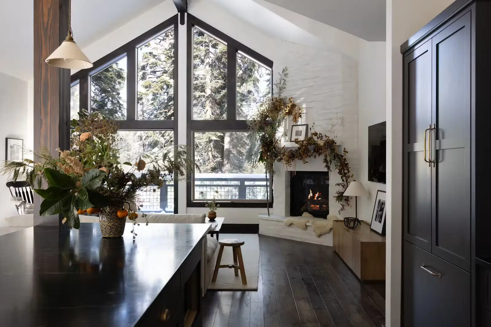 Jako fotografka Bess Friday ma coś, co nazywa „błogosławieństwem i bolesnym przekleństwem” polegającym na oglądaniu podczas pracy wielu dobrze zaprojektowanych przestrzeni. „Jest mnóstwo inspiracji, z których można czerpać” mówi. „To może być przytłaczające”. Znalazła wraz z mężem nieruchomość w górach Truckee, która nawiązywała do lat 90. Kiedy kupili ją w styczniu 2022 roku, Bess zatrudniła projektantkę i bliską przyjaciółkę Hanę Mattingly do pomocy przy remoncie.