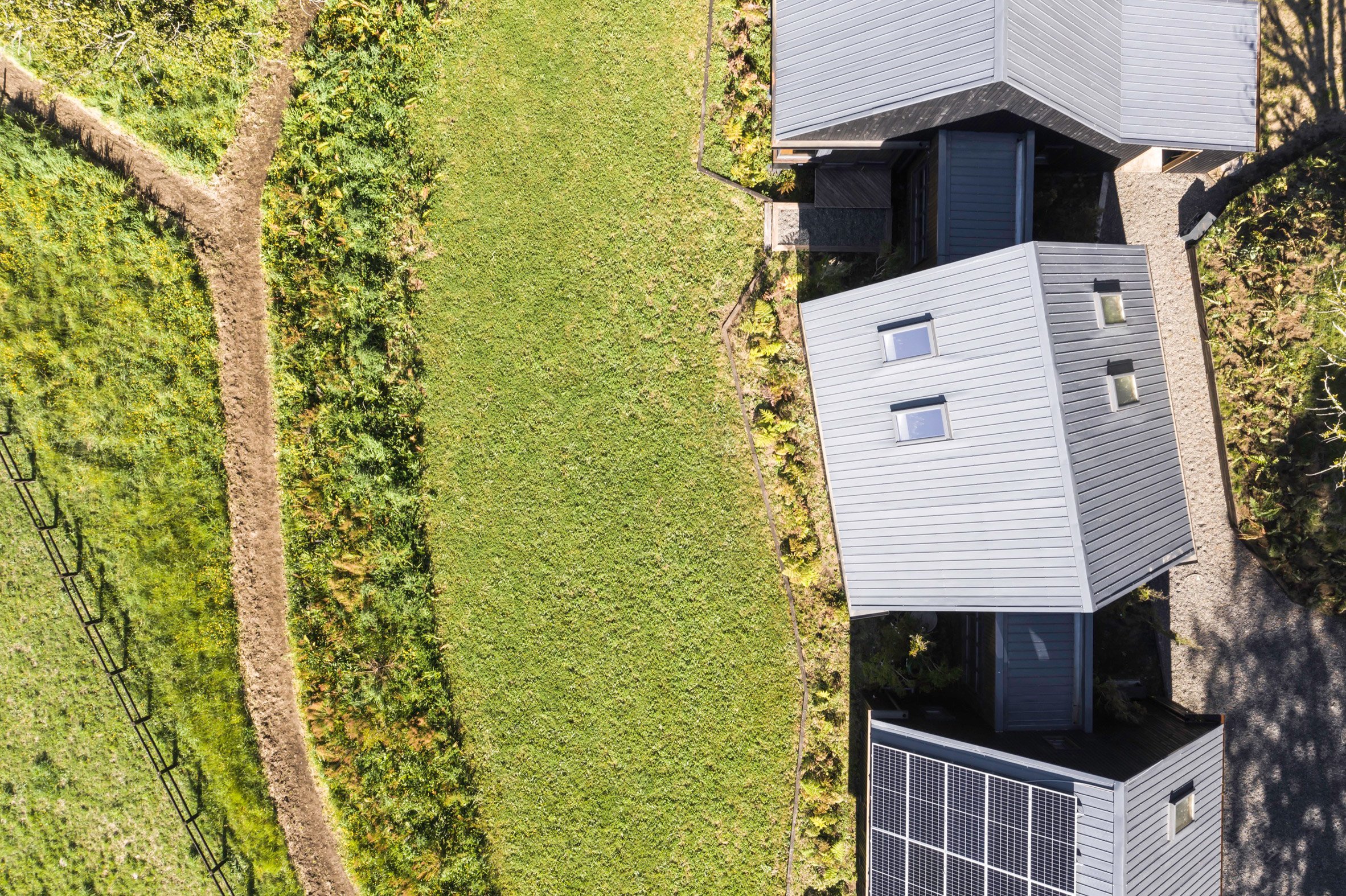 Jednym z najważniejszych założeń było minimalizowanie wpływu na środowisko. Na dachu zamontowano panele fotowoltaiczne, które dostarczają energię, a deszczówka jest gromadzona i wykorzystywana do nawadniania. Jako naturalna izolacja posłużyła owcza wełna, zamknięta w drewnianej konstrukcji, co zwiększa efektywność energetyczną budynku.