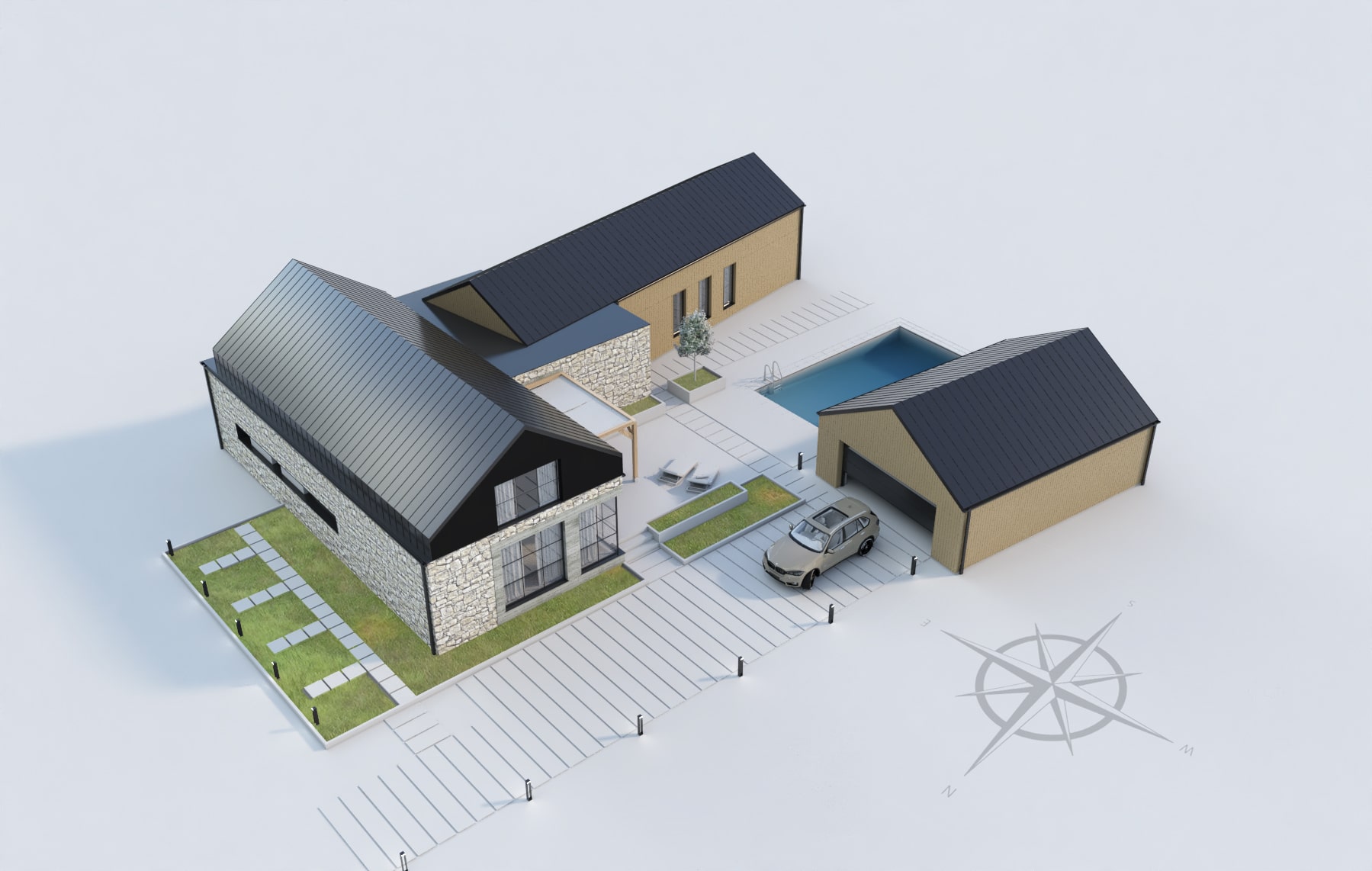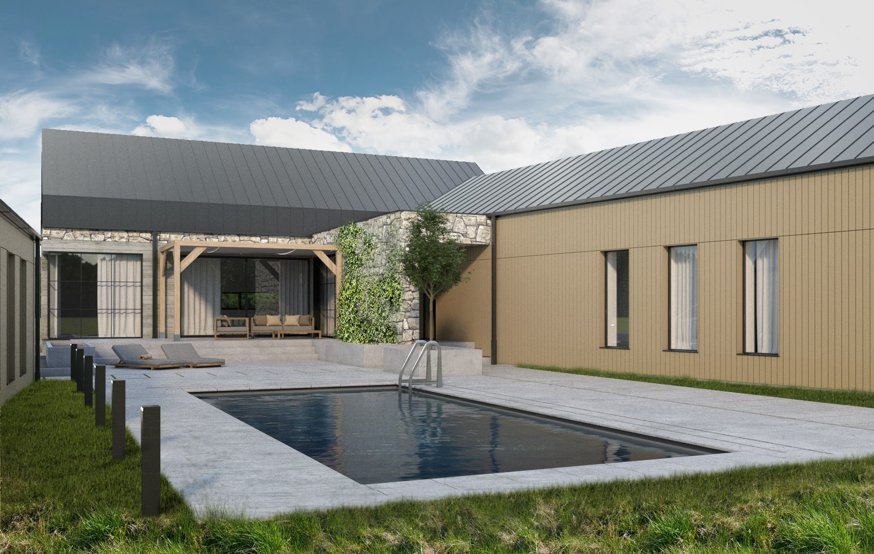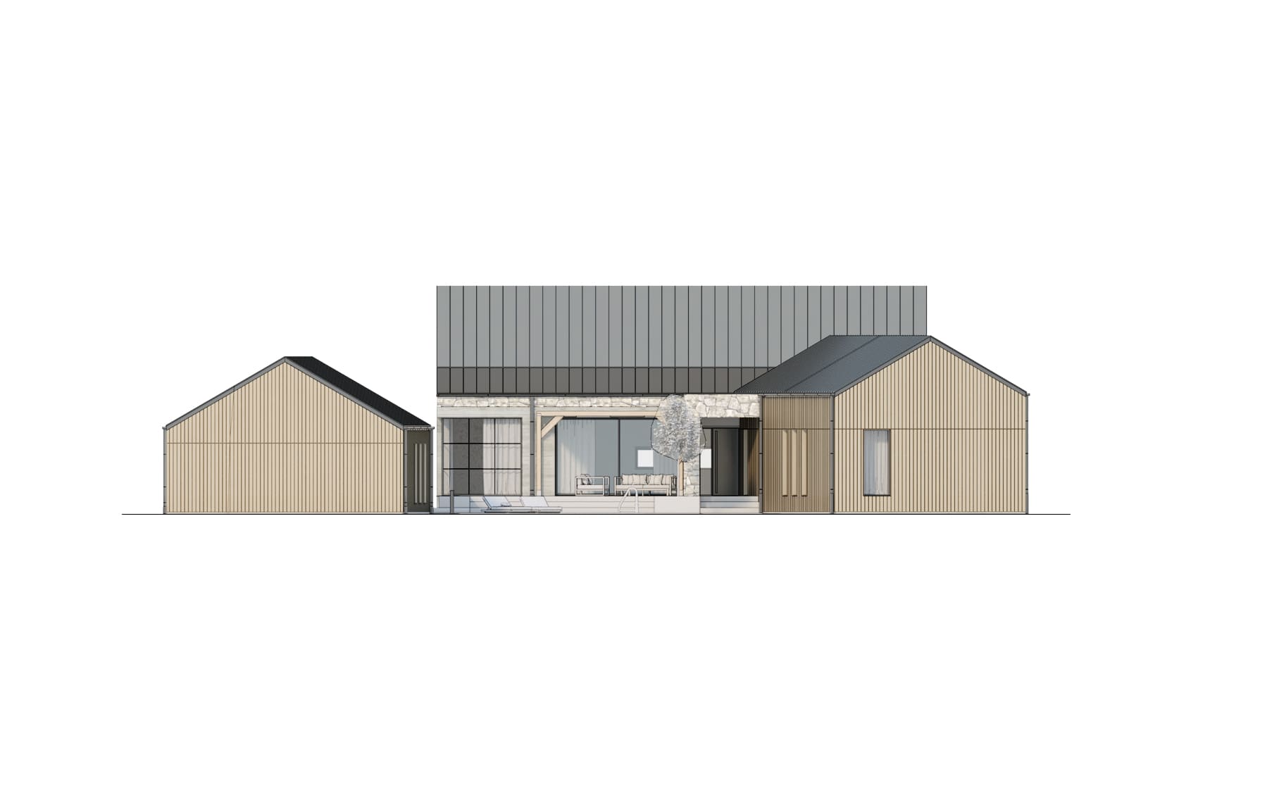 Tak powstało założenie, które można określić mianem modern country – indywidualnej, dopasowanej do miejsca i mieszkańców interpretacji nowoczesnej stodoły. To dom–kompleks, w którym architektura, urbanistyka i krajobraz wzajemnie się uzupełniają, tworząc spójną, przemyślaną całość.