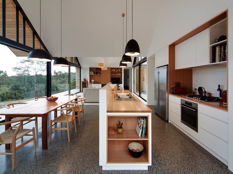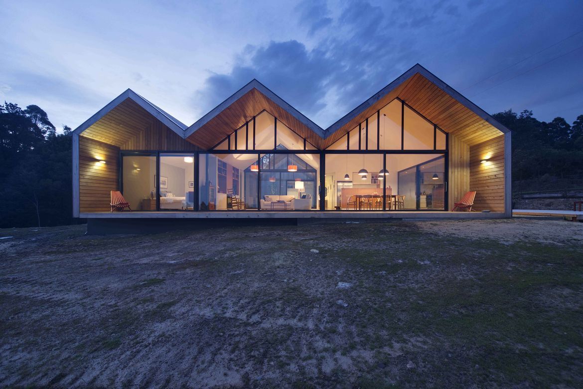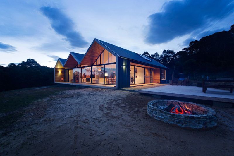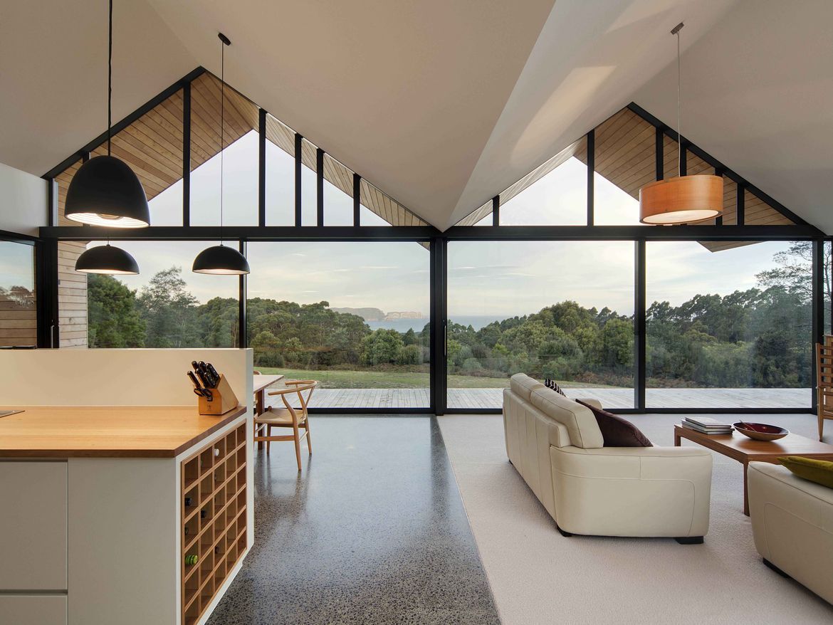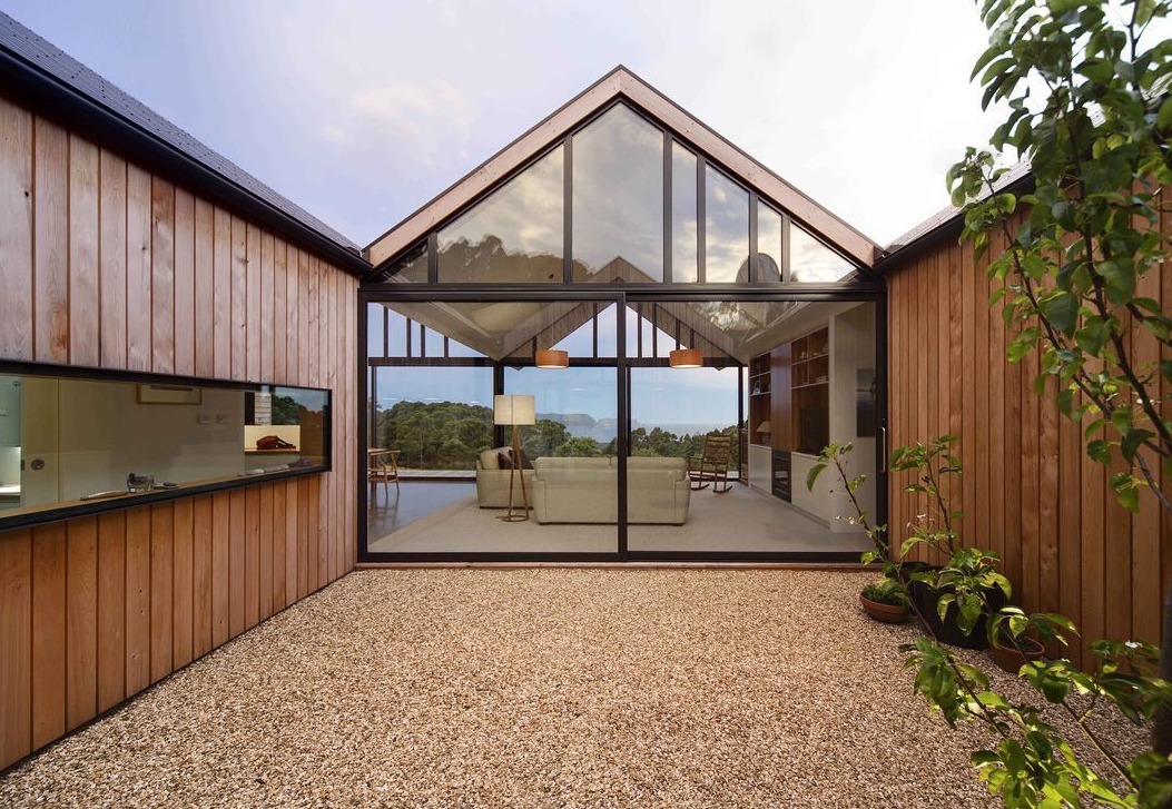 Ten wyjątkowy dom położony jest na spektakularnej działce z widokiem na Ocean Spokojny oraz wyspę Tasmanię, co czyni lokalizację jedną z największych jego zalet. Teren został wcześniej oczyszczony, co pozwoliło na pełne wykorzystanie walorów krajobrazowych. Projekt architektoniczny nawiązuje do typologii budynków rolniczych, jednak reinterpretując ją w nowoczesny sposób – powstała unikalna forma hybrydowego domu z podwórzem, która łączy surowość gospodarczego stylu z luksusem i funkcjonalnością współczesnego budownictwa.