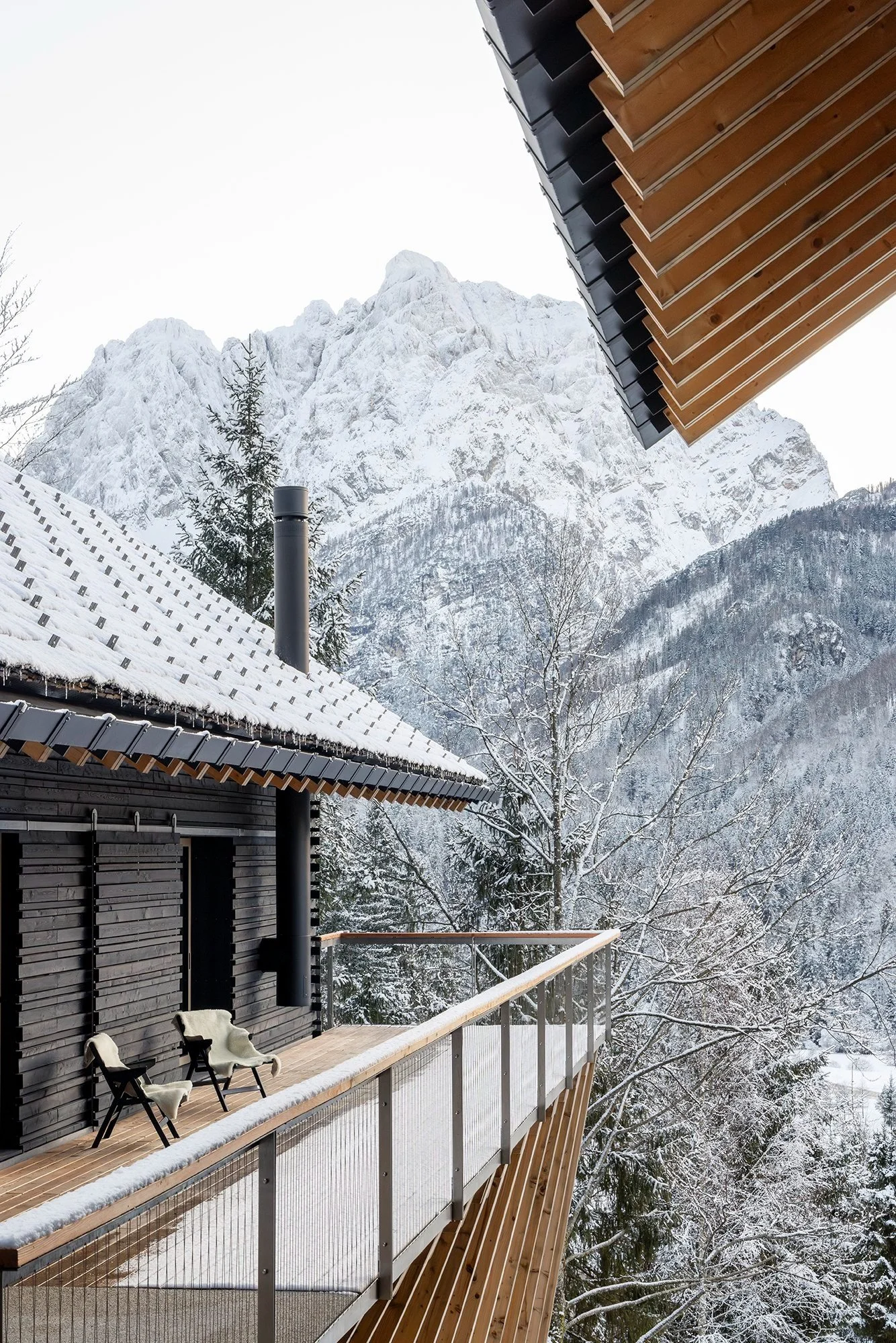 Współczesne domy wakacyjne położone u stóp najwyższych gór Słowenii powstały w miejscu wyjątkowym — na obrzeżu Parku Narodowego Triglav, w regionie, gdzie od wieków przenikały się kultury Słowenii, Włoch i Austrii. Usytuowane na skraju lasu, ponad taflą jeziora Jasna, redefiniują sposób zamieszkiwania stromych, górskich terenów. Projekt w subtelny sposób łączy tradycję alpejskiej architektury drewnianej z nowoczesnym podejściem do formy, konstrukcji i relacji z naturą.