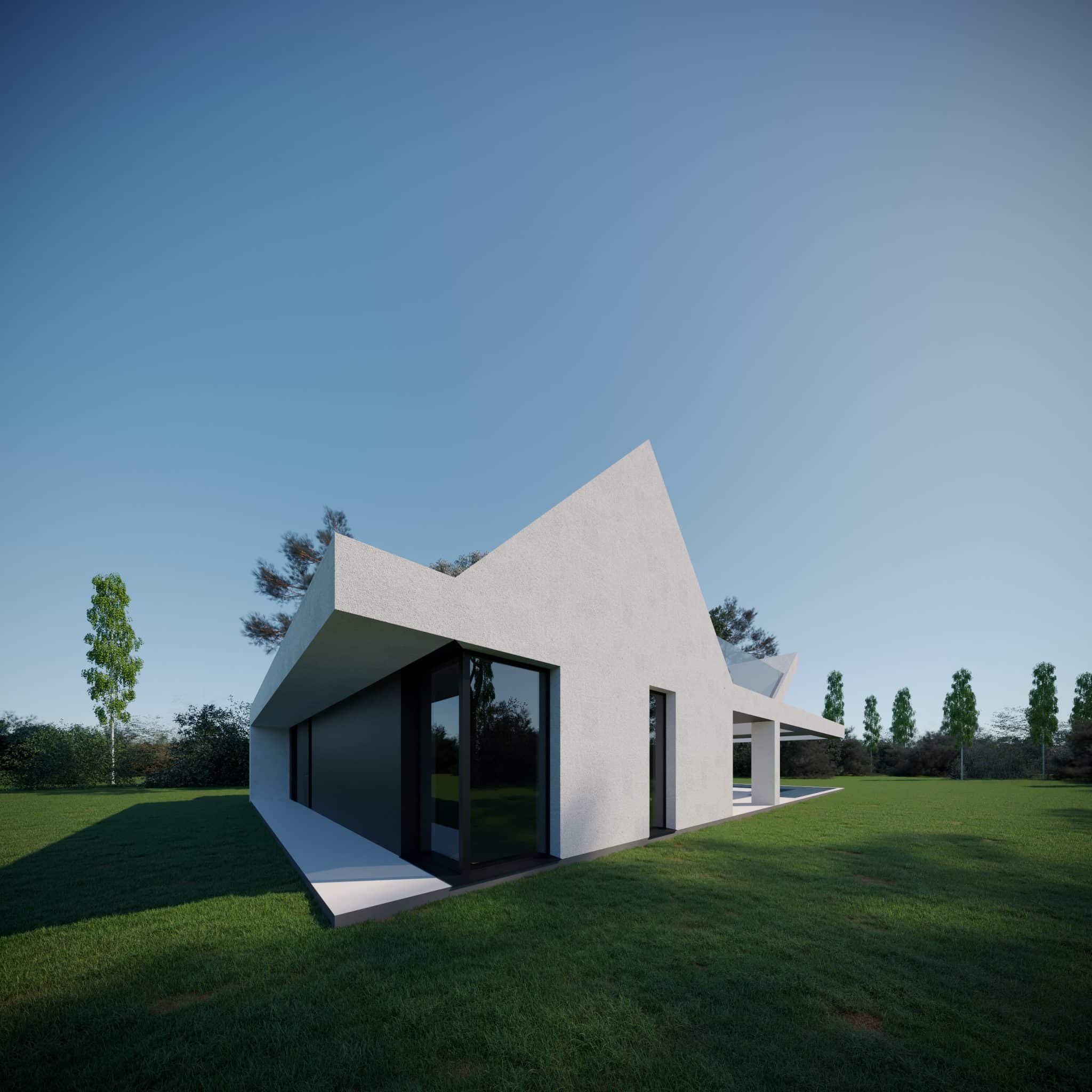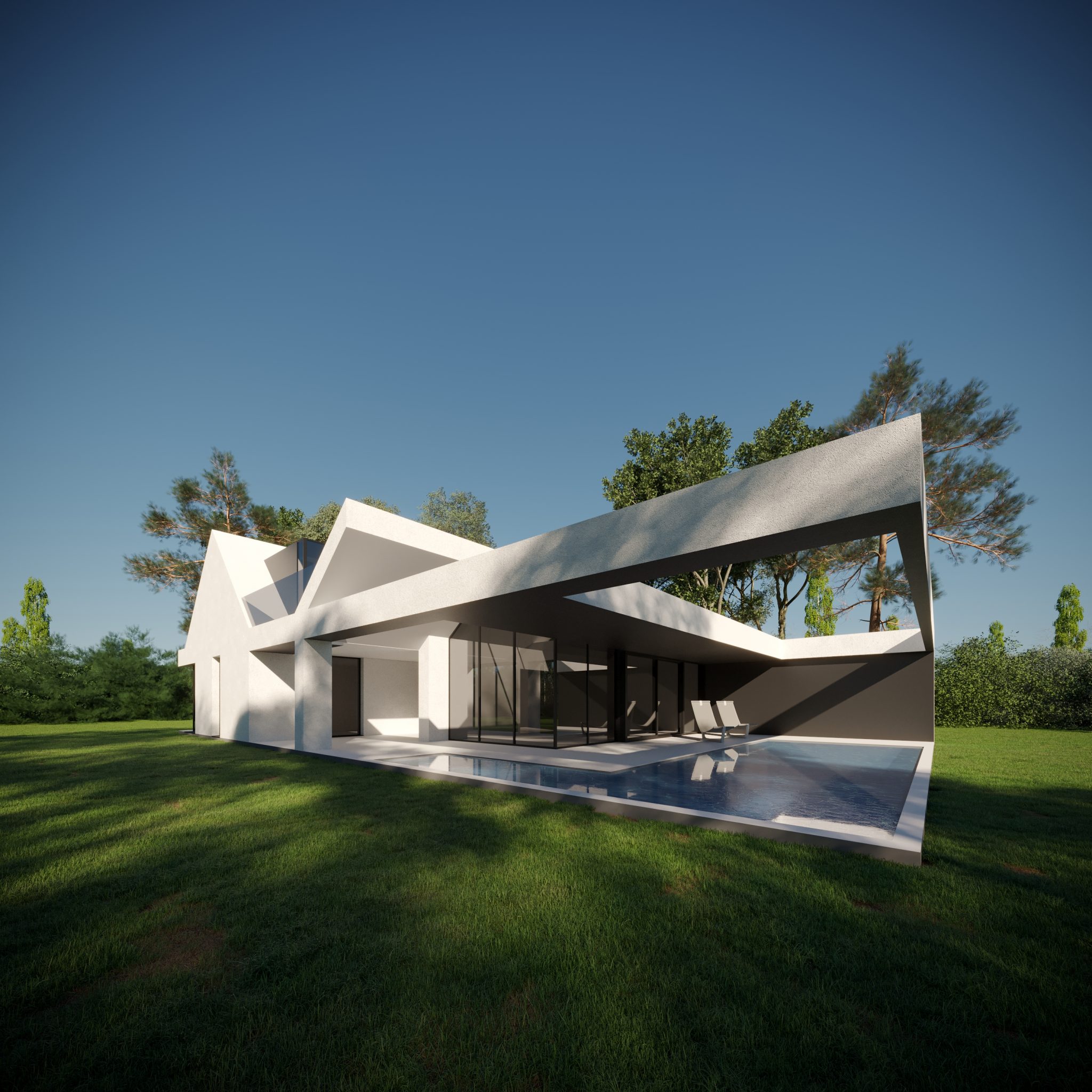 Od początku założeniem było stworzenie domu całkowicie indywidualnego – dopasowanego do stron świata, uwarunkowań formalnych oraz rozbudowanego programu funkcjonalnego. Efektem jest architektura futurystyczna, ale jednocześnie logiczna i czytelna w odbiorze.