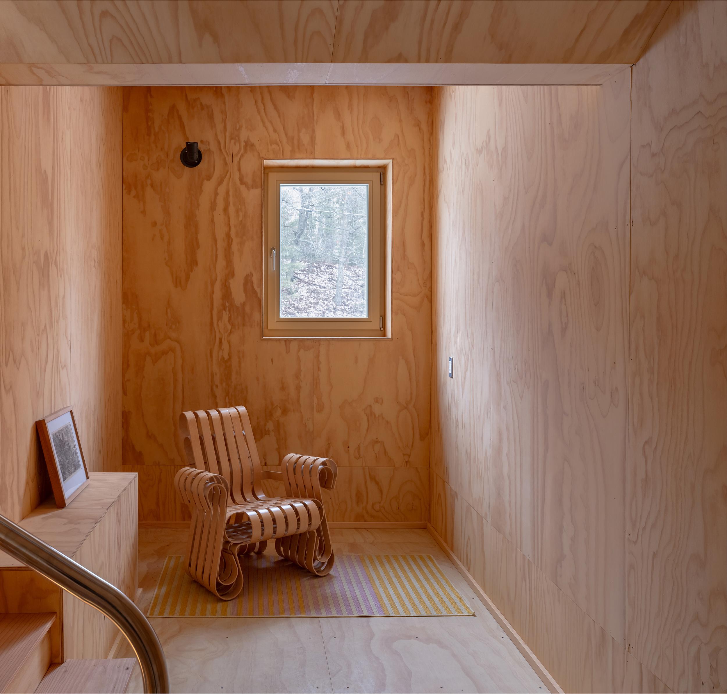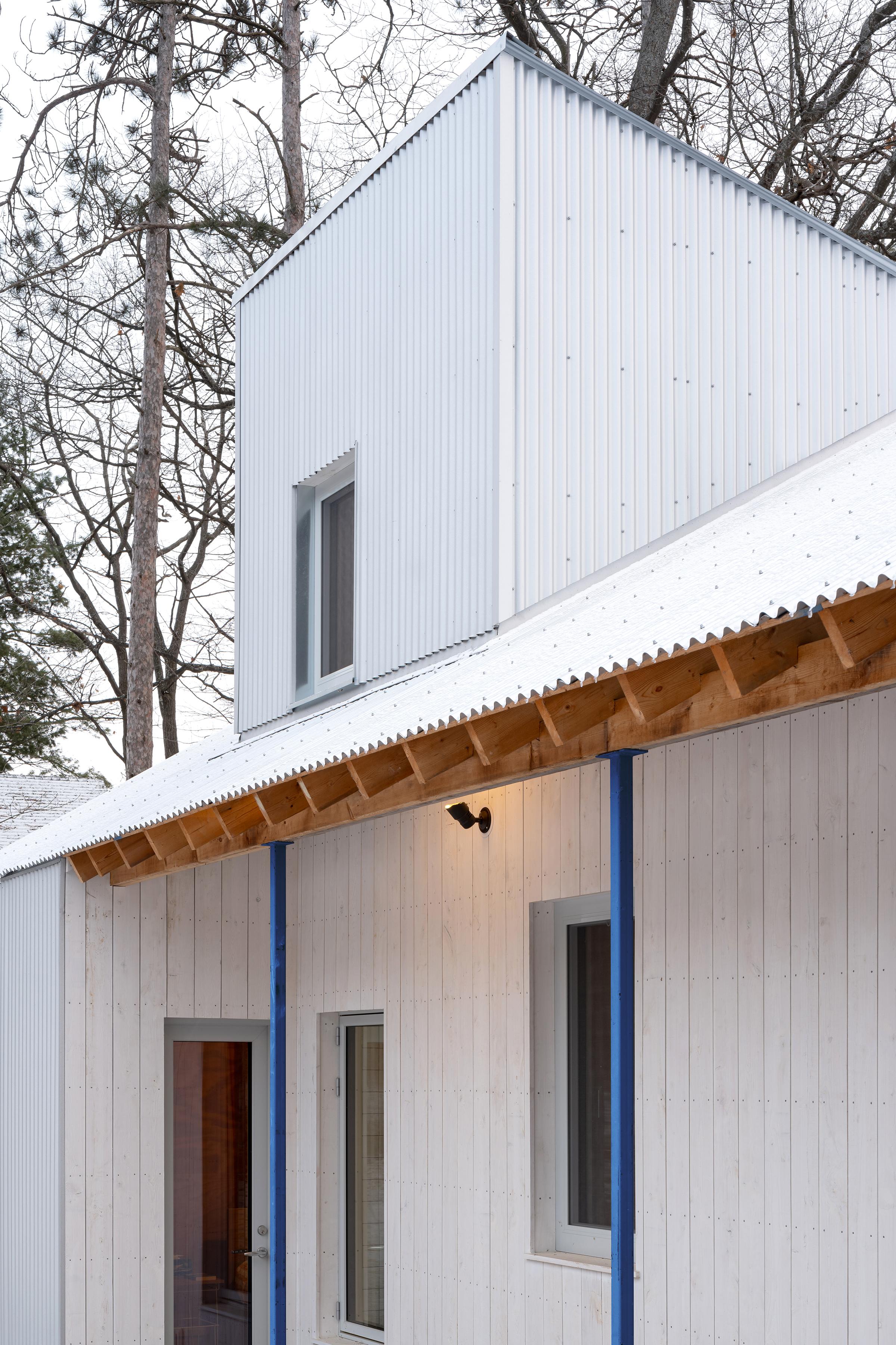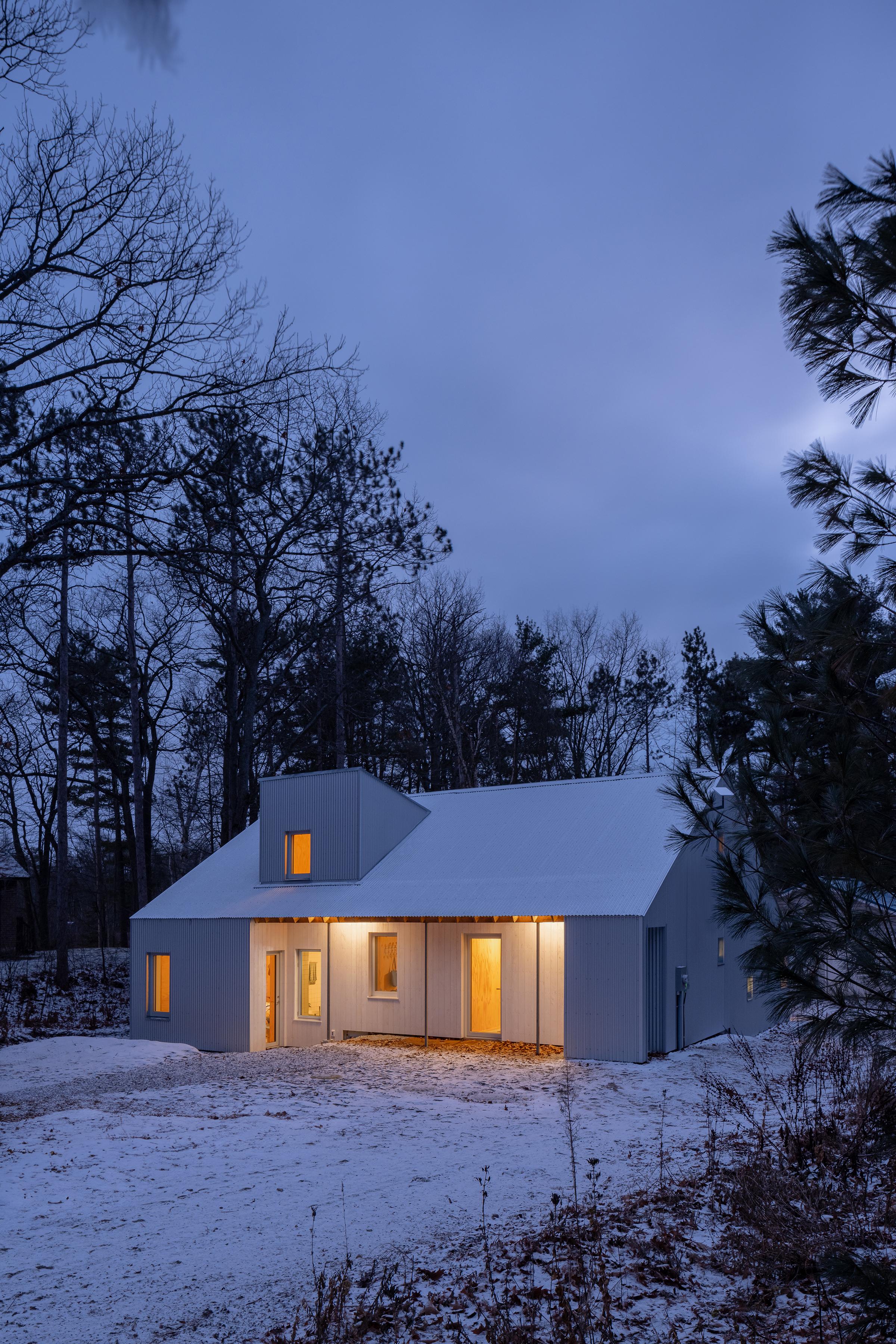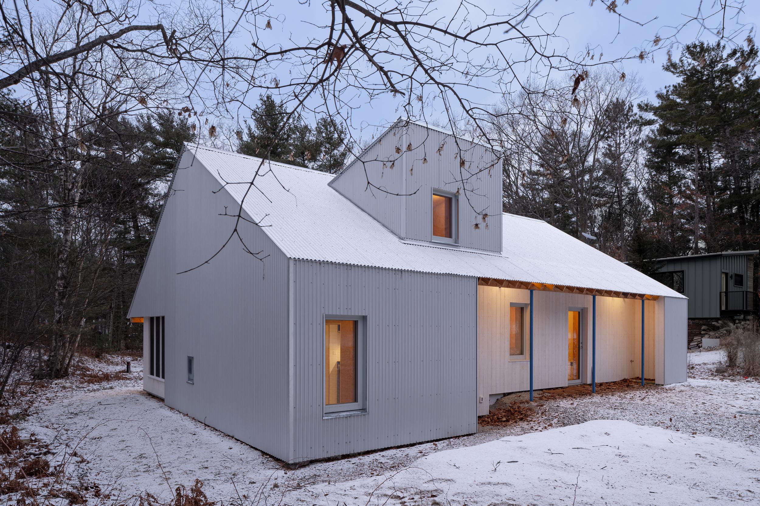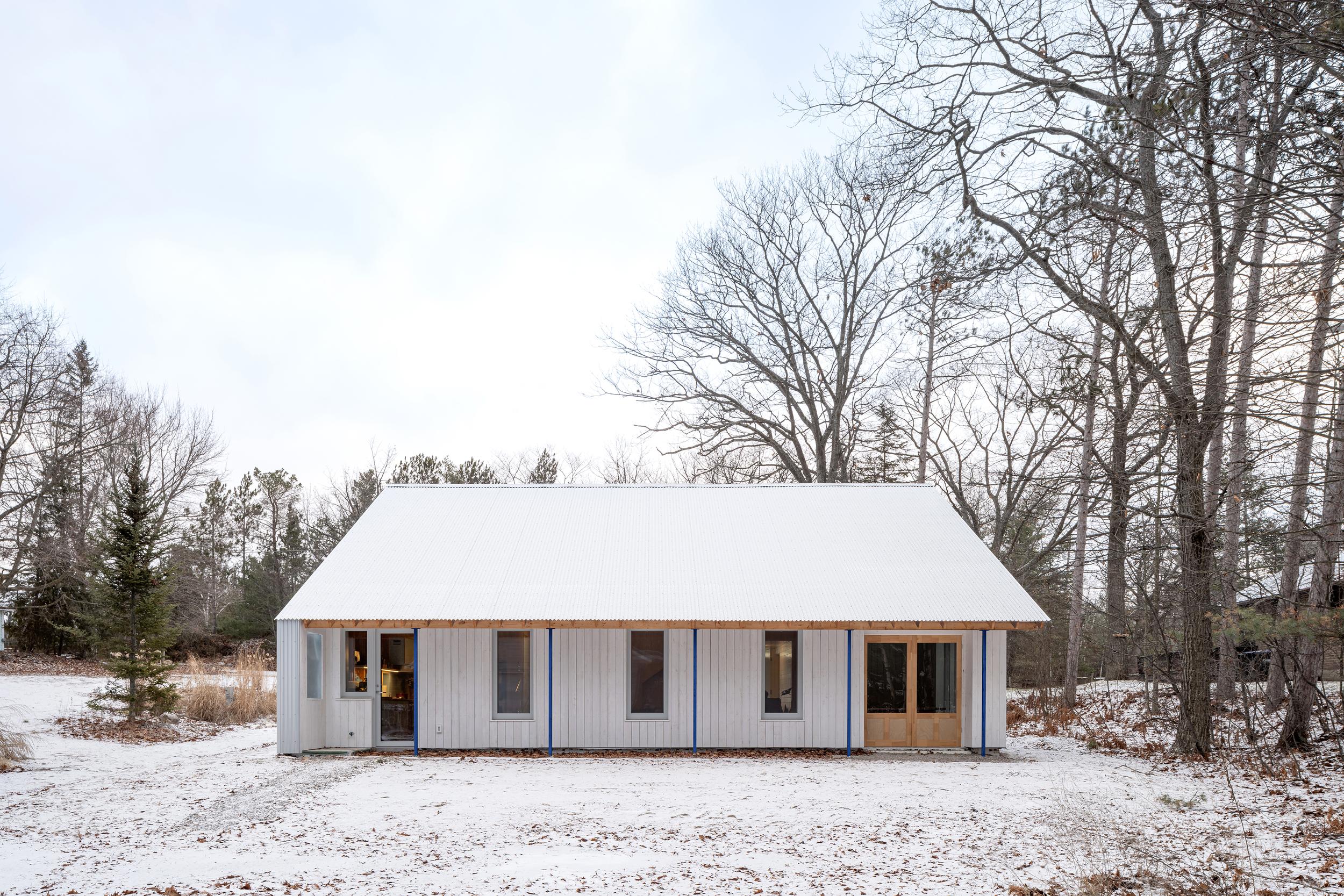 Projekt czerpie inspirację z wiejskich form Ontario oraz stylu domów plażowych. Minimalistyczna liczba przeszkleń maksymalizuje prywatność i wrażenie samotności w lesie. Okna zostały rozmieszczone tak, aby umożliwić naturalną wentylację od bryzy jeziora. Morskie akcenty, takie jak linki na antresoli czy portowe okno, podkreślają lokalny charakter.
