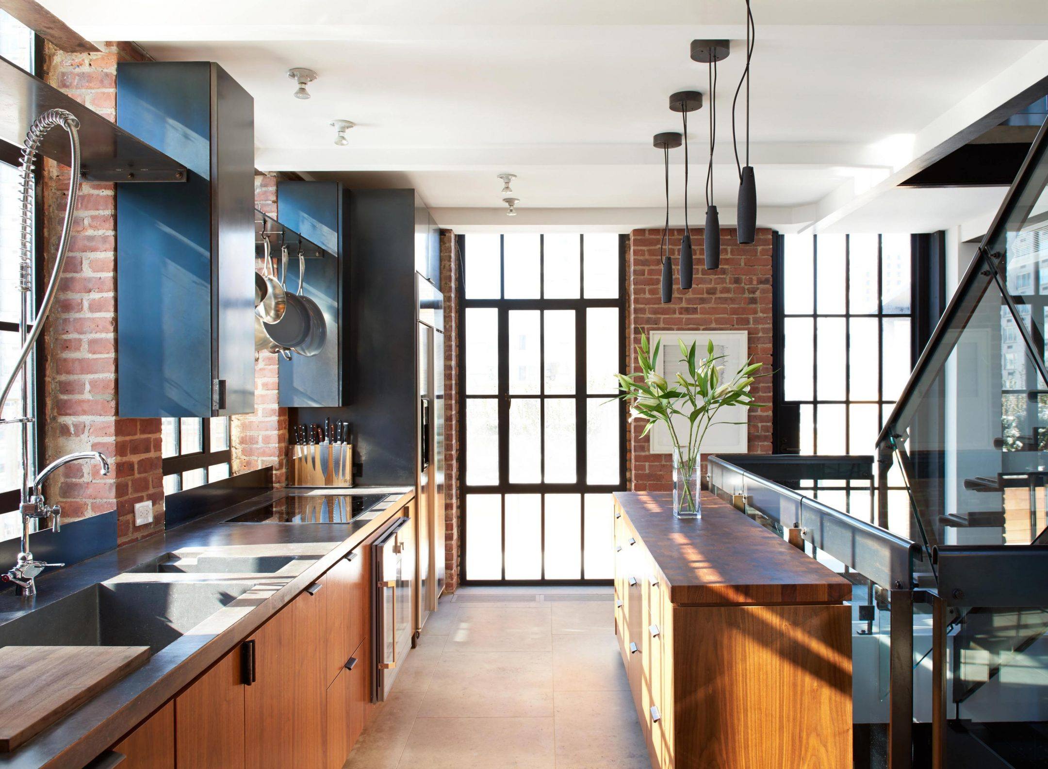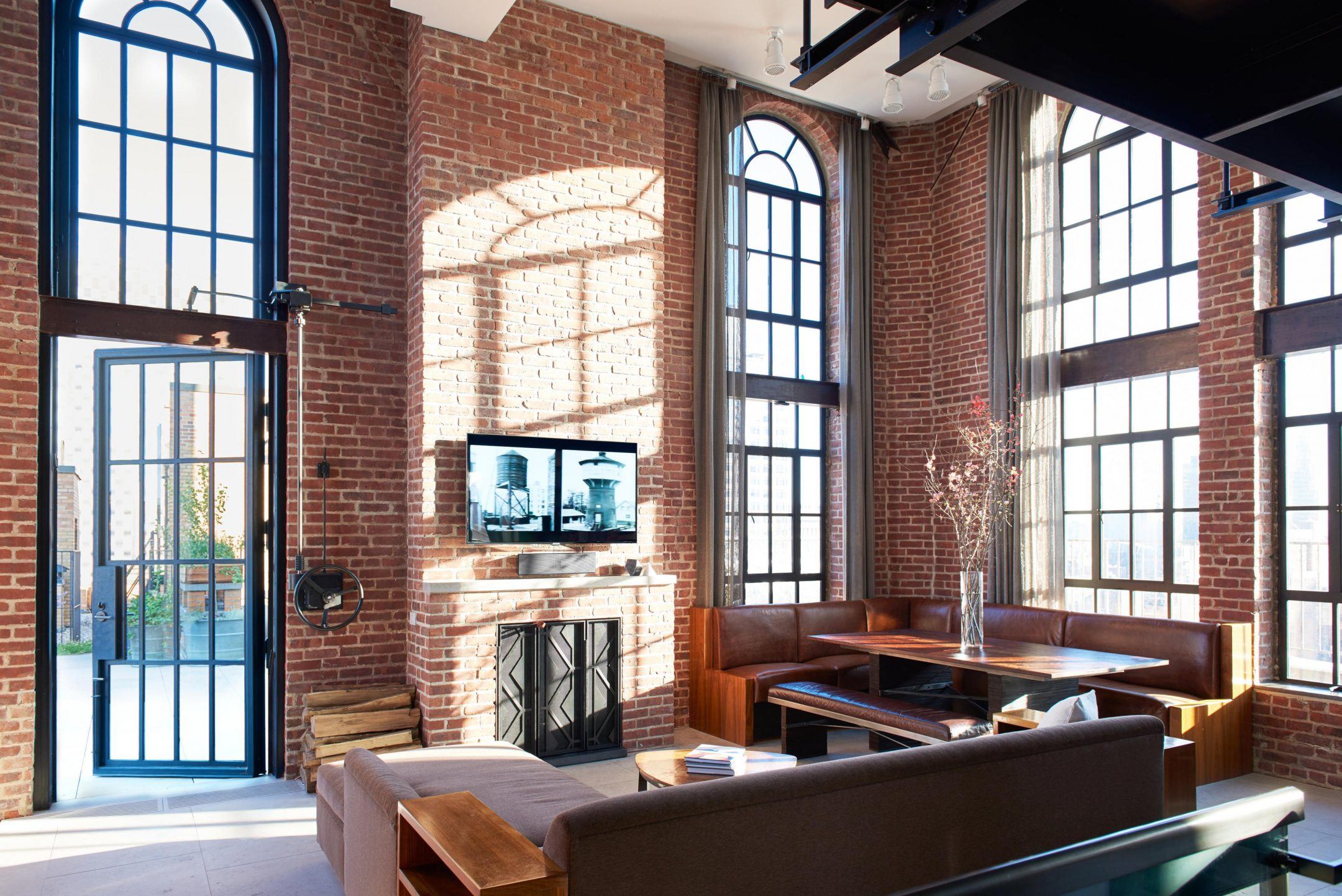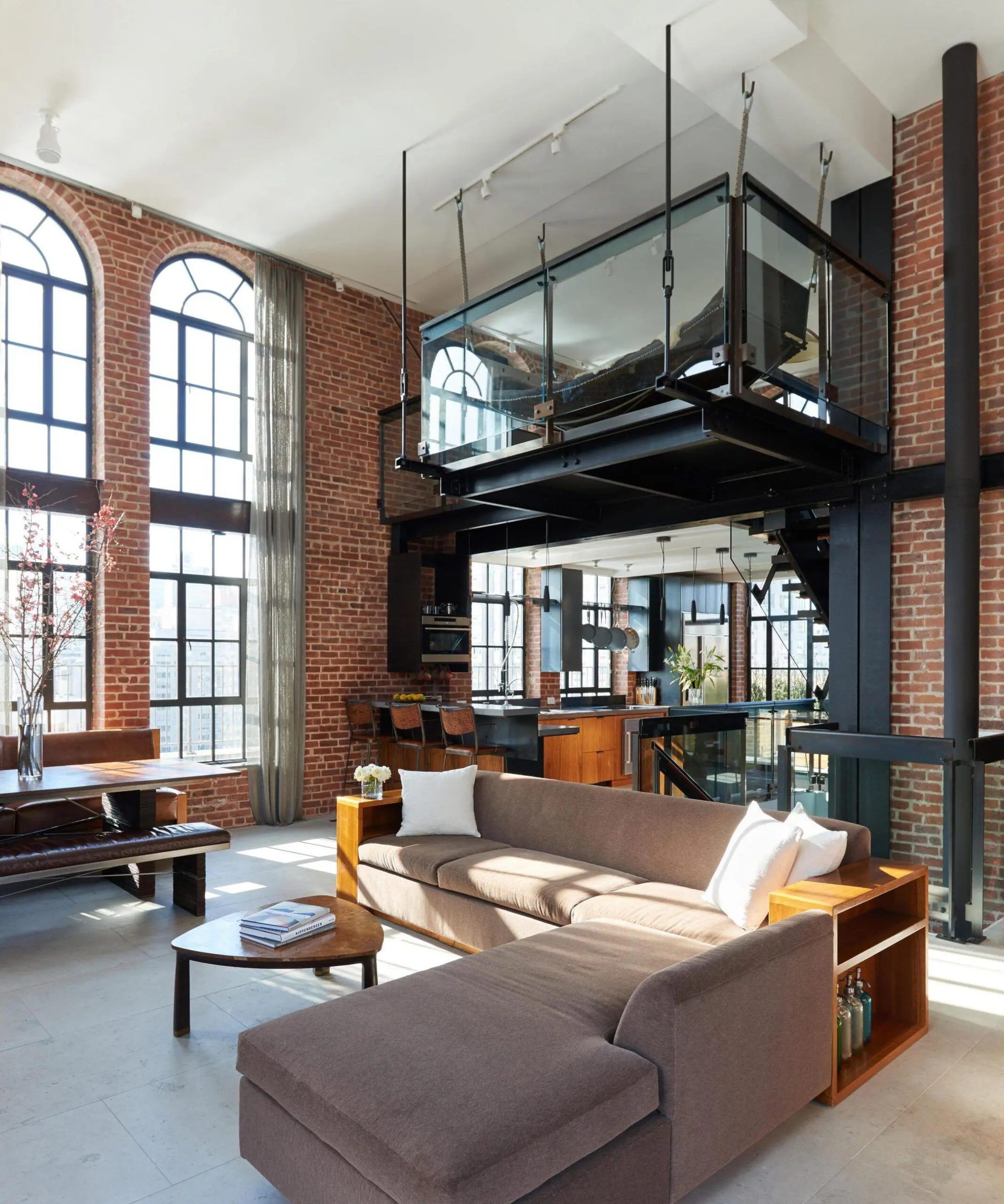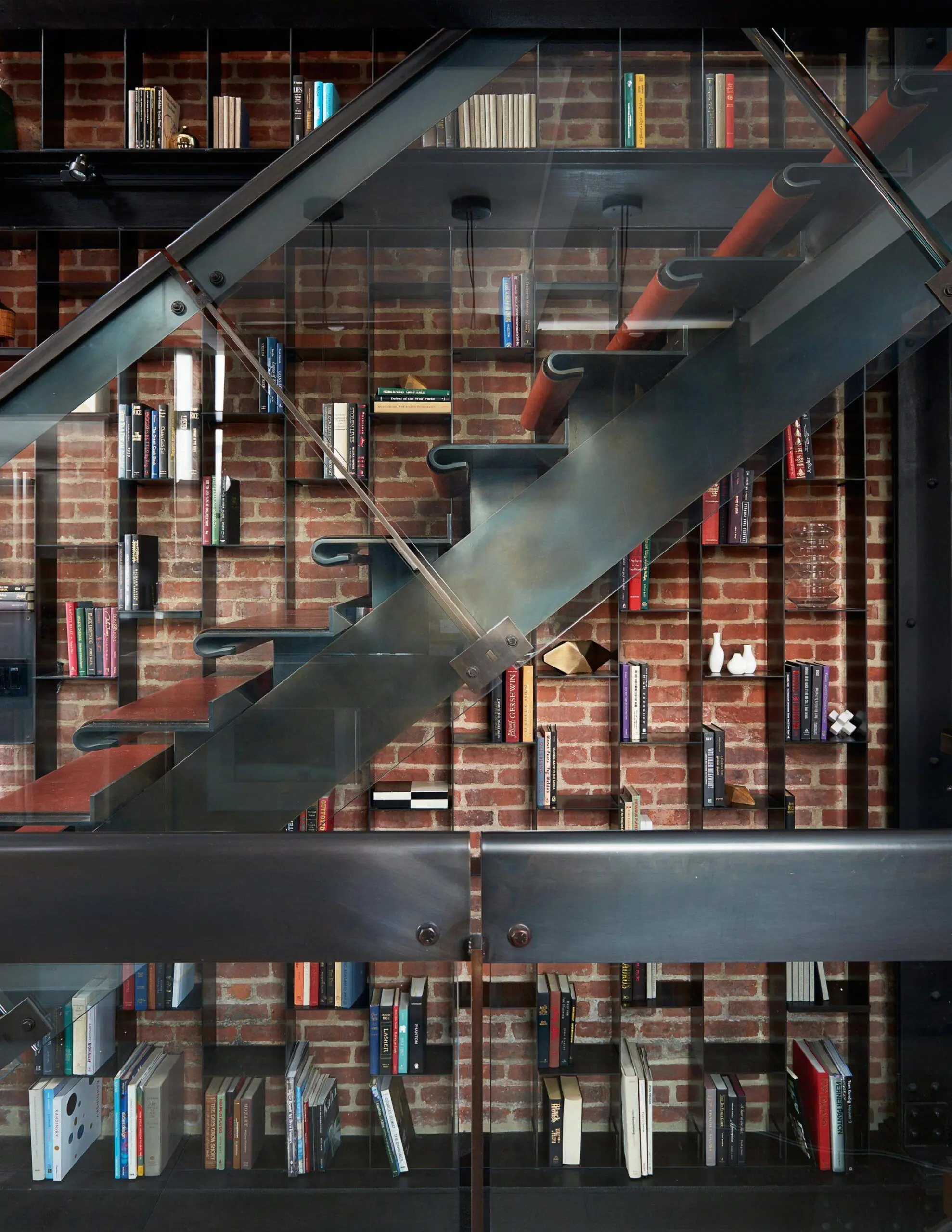 Centralnym elementem wnętrza jest trzypoziomowa stalowa klatka schodowa, oparta na oryginalnej ceglanej ścianie, która nie tylko łączy wszystkie poziomy rezydencji, ale pełni także funkcję wielopoziomowej biblioteki.