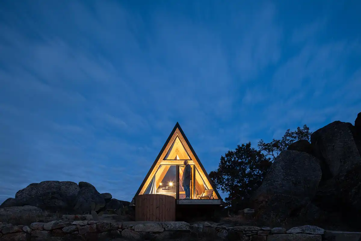 Vagar Country House Mountain Shelters to zespół trzech minimalistycznych schronień górskich zlokalizowanych w okolicach Belmonte w Portugalii, zaprojektowanych przez pracownię Filipe Pina Arquitectura jako część większego założenia The Vagar Country House. Projekt powstał na rozległym, niemal 250-hektarowym terenie Serra da Esperança – krajobrazie surowym, nieujarzmionym i silnie zakorzenionym w lokalnej tradycji pasterskiej. Architektura nie próbuje tu dominować nad naturą, lecz cicho się w nią wpisuje, czerpiąc inspirację z dawnych schronień pasterzy, zwanych lokalnie choças.