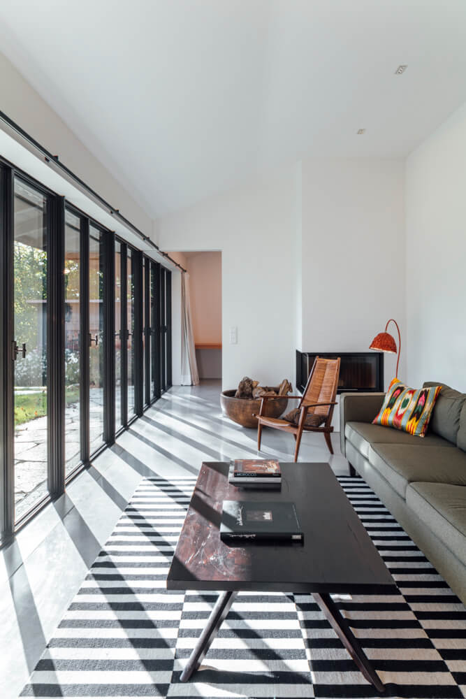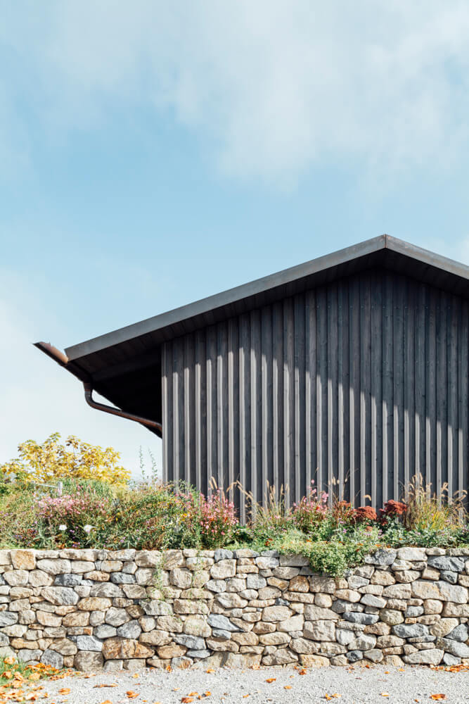 Aby zachować harmonię starego i nowego, nowa bryła nawiązuje do tradycji poprzez dobór materiałów i formę, unikając jednak dosłownej imitacji. Nowoczesna stodoła osłania się od północy przed sąsiednimi zabudowaniami, otwierając się szeroko na południe, w stronę alpejskiego krajobrazu, maksymalizując dostęp do naturalnego światła i panoramicznych widoków.