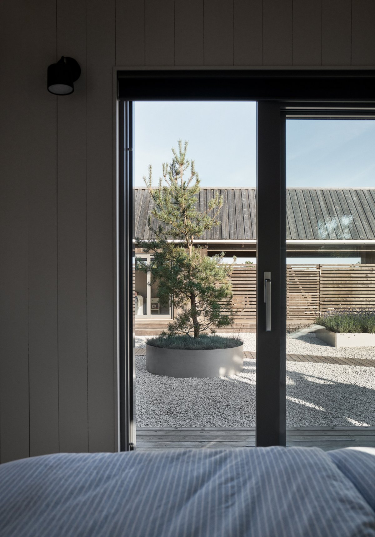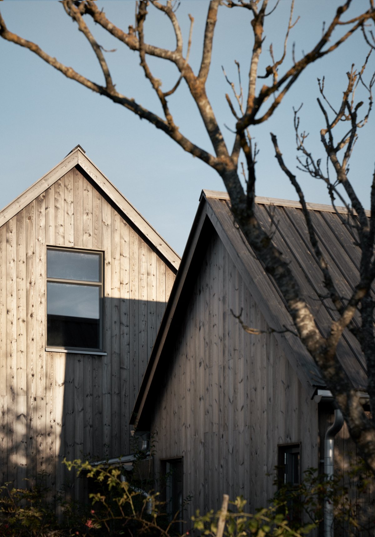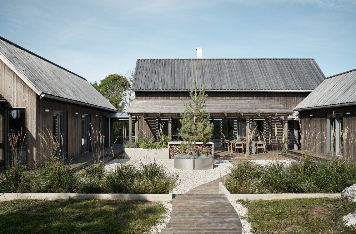 Kształt bryły budynku inspirowany jest tradycyjnymi stodołami gospodarskimi z Fårö, a także rybackimi chatami, których strome dachy i wielokrotnie połączone objętości tworzą przestrzeń pełną ciepła i przytulności. W Villa Magnergard zastosowano te same zasady projektowe, tworząc przestrzeń, która jednocześnie zachowuje swoją prywatność, oferując odosobniony dziedziniec, idealny do relaksu i odpoczynku. Dzięki takiemu podejściu, budynek harmonijnie wkomponowuje się w krajobraz i tworzy atmosferę intymności, której sprzyja również dobrze zaplanowane zagospodarowanie przestrzeni.