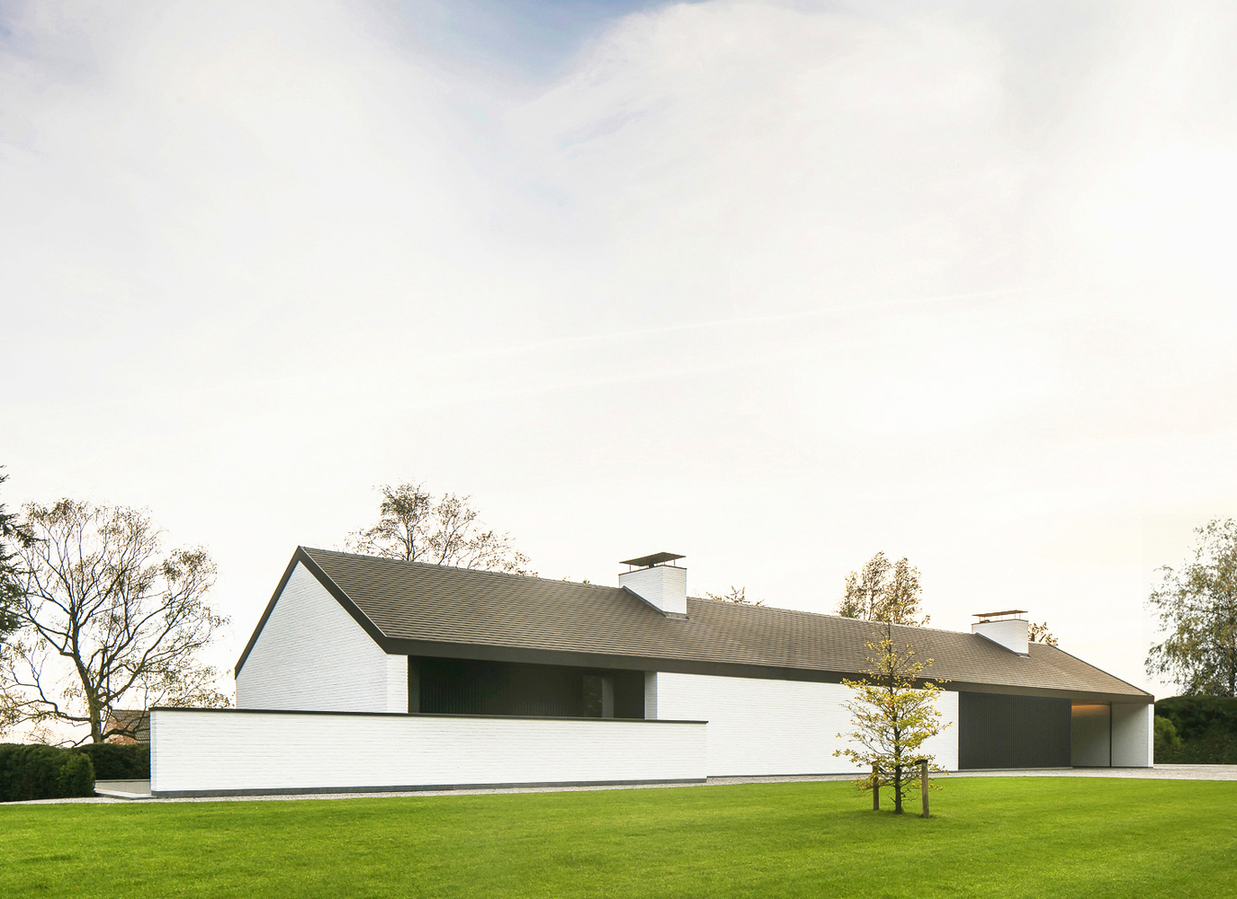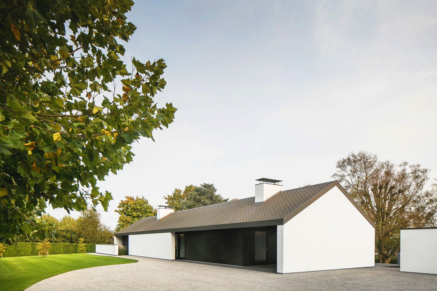 Zbudowana na miejscu poprzedniej willi, Villa NTT zachowuje tę samą kubaturę z dwuspadowym dachem. Architekci zaprojektowali smukłą, liniową bryłę z minimalistyczną kompozycją białych ścian i ciemnej stolarki zewnętrznej.