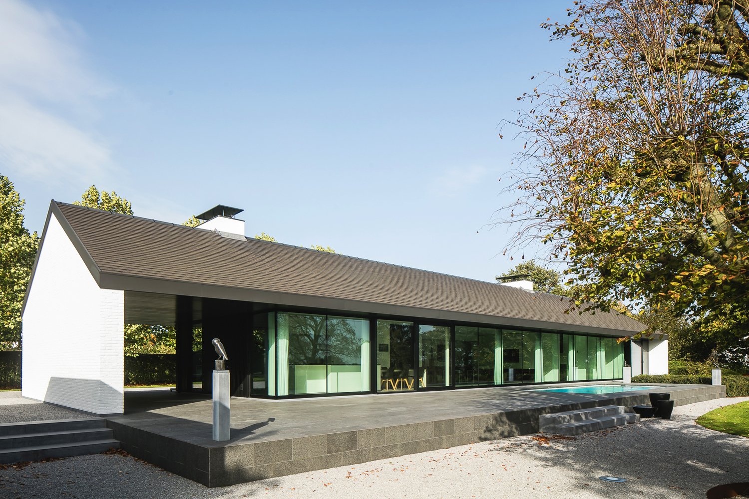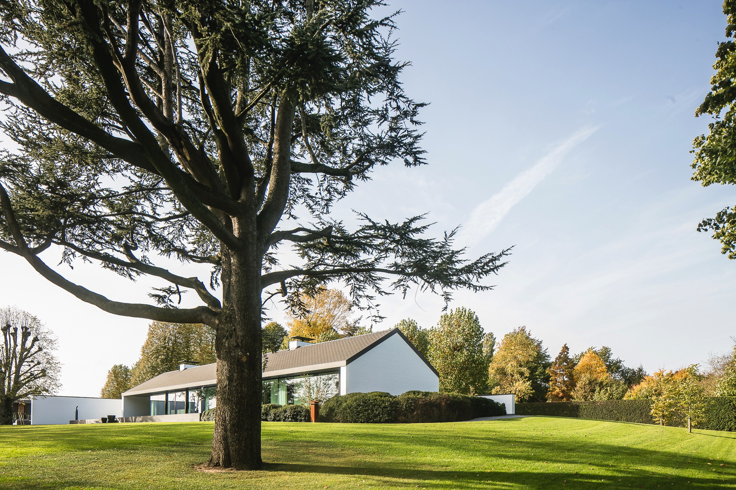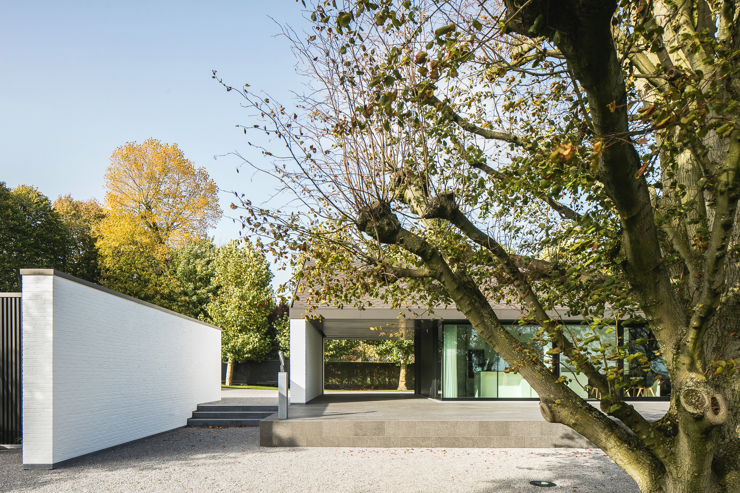 Villa NTT to wyjątkowy projekt, który łączy nowoczesną architekturę z otoczeniem natury. Położona w centrum miasta, w otoczeniu prywatnego parku, zapewnia poczucie intymności i spokoju. Krótka aleja prowadzi do głębszej części posesji, z widokiem na Poelberg, a nachylenie terenu potęguje wrażenie otwartości.