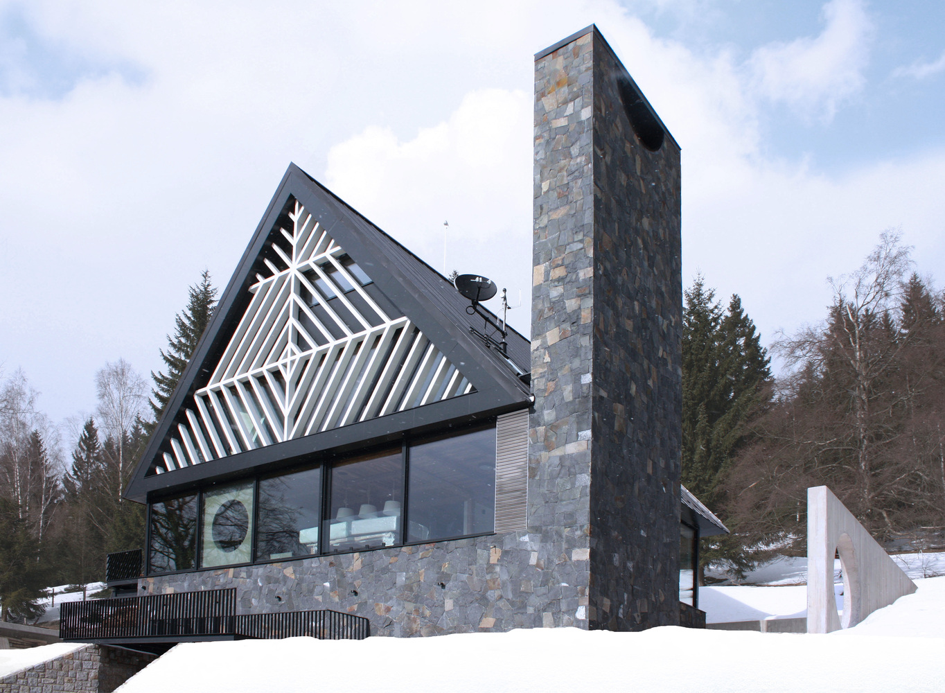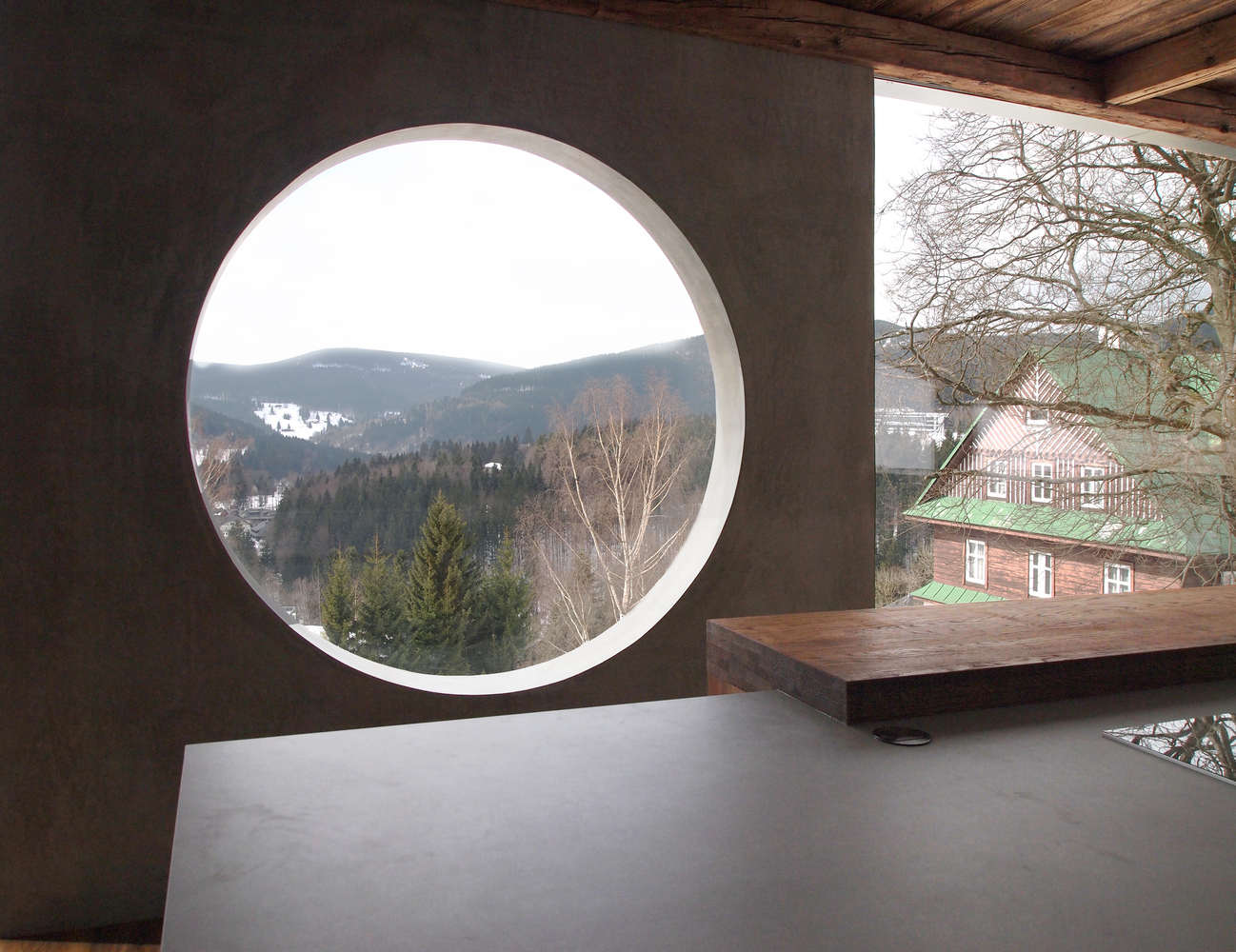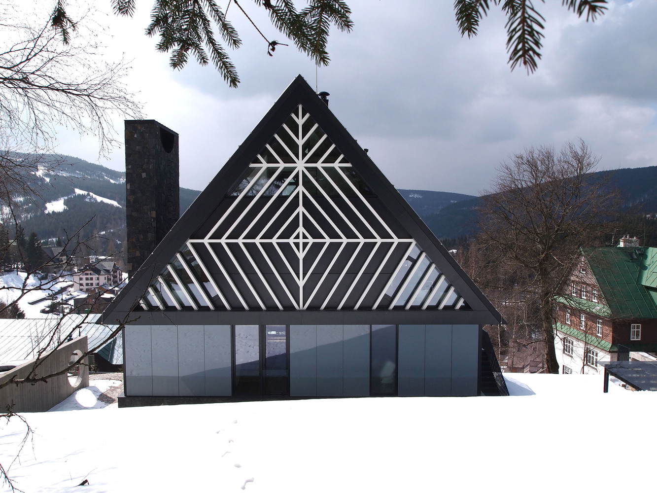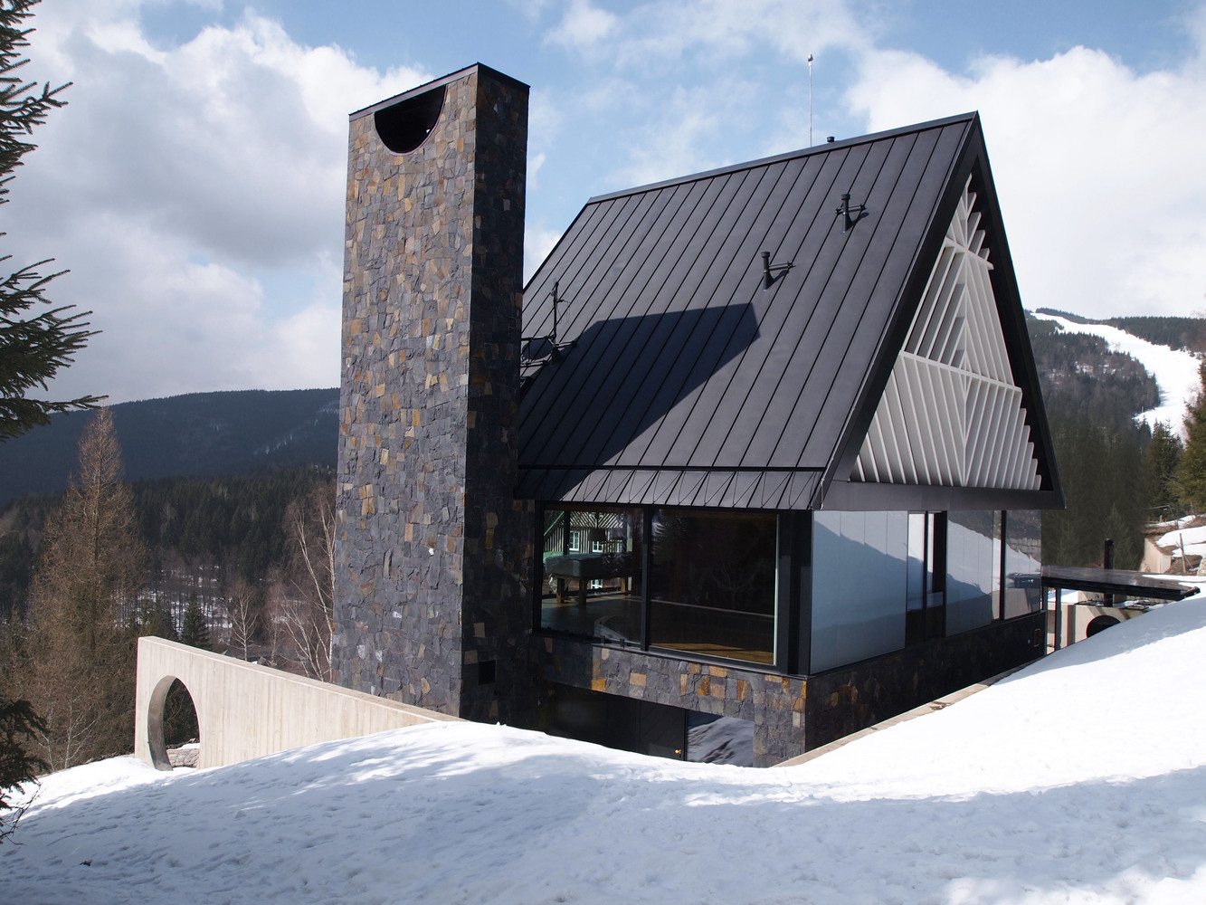 Położona w czeskim kurorcie Špindlerův Mlýn willa autorstwa pracowni ra15 a.s. została ukończona w 2017 roku i ma powierzchnię 150 m². Dom powstał jako rodzinna siedziba, zaprojektowana z myślą o trwałości, ponadczasowości i silnym związku z lokalnym krajobrazem. Architekci oparli koncepcję na archetypicznej, prostej bryle, uzupełnionej o elementy nawiązujące do regionalnej tradycji budowania.