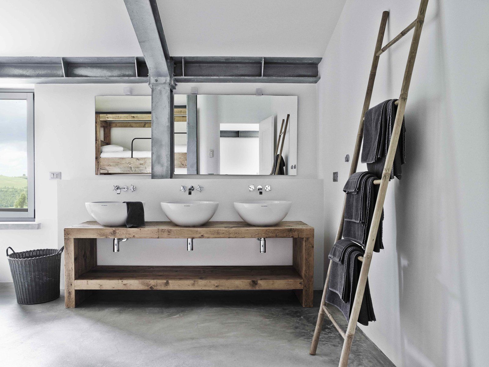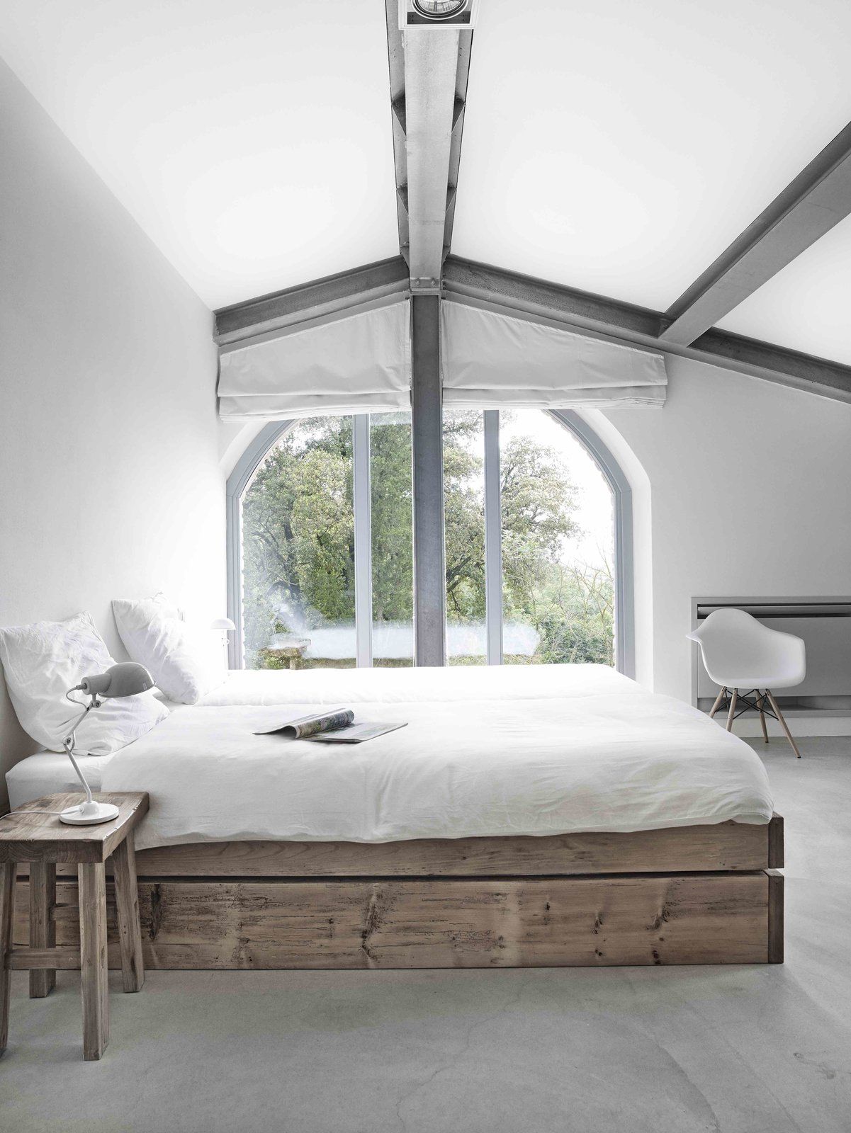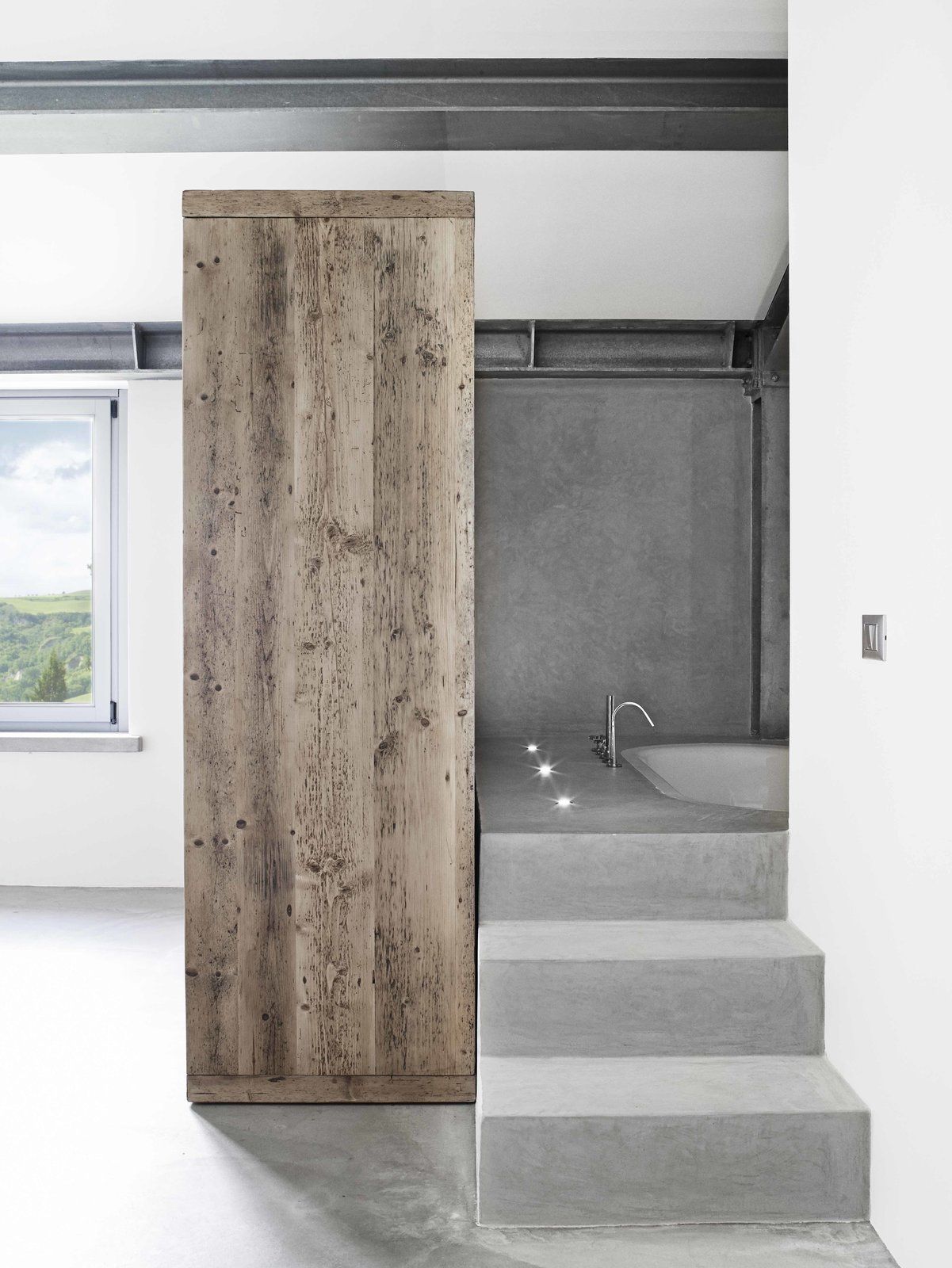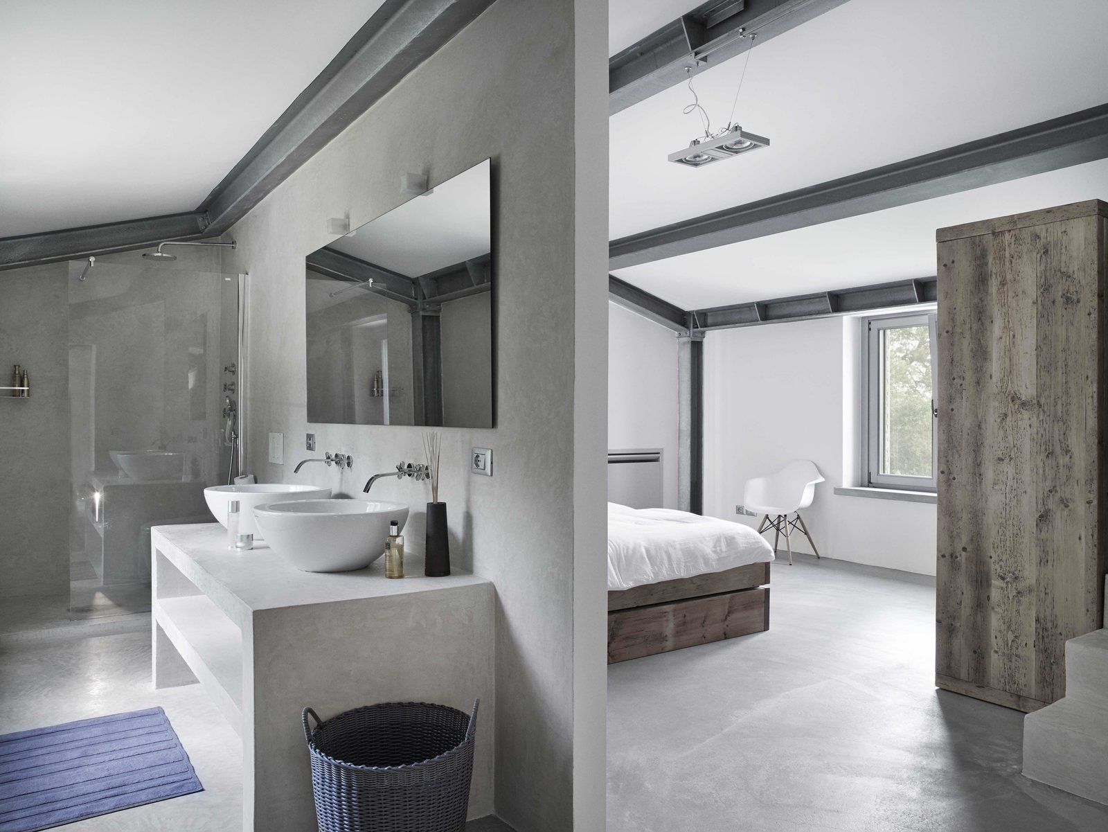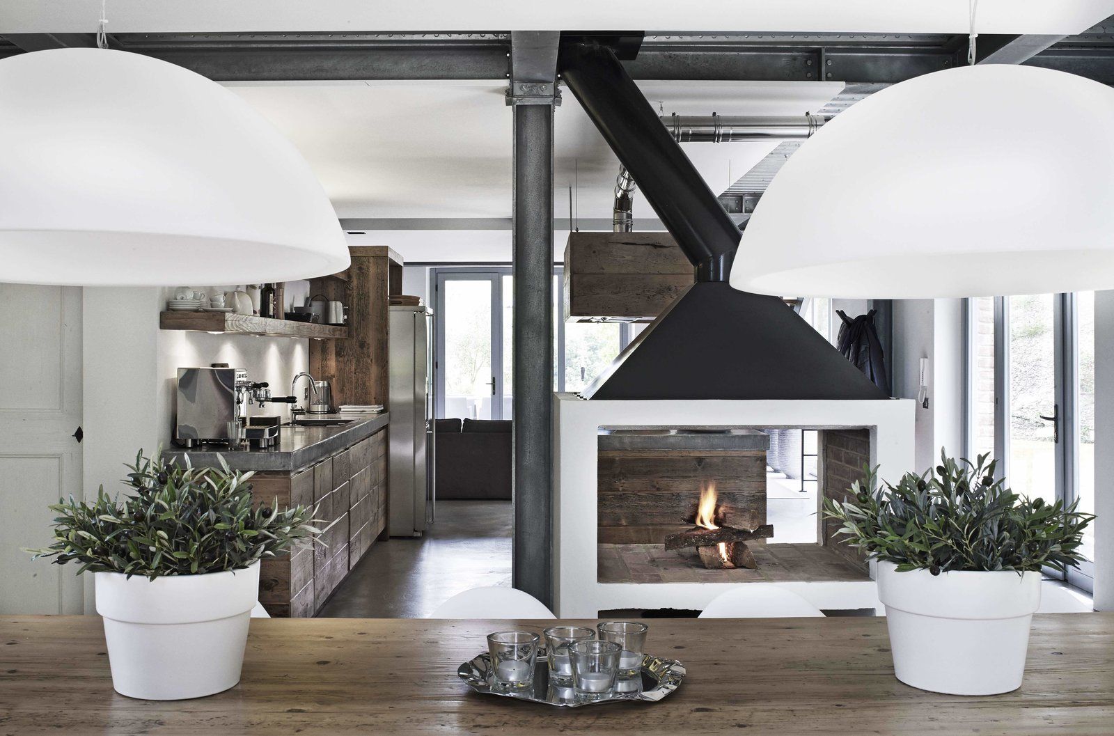 Monochromatyczny plan wnętrza został zaprojektowany przez Roba Landeweerda, który podkreślił różne tekstury i różnorodne wykończenia. Meble ze starego drewna dodają wiejskiego uroku tym industrialnym, nowoczesnym przestrzeniom.