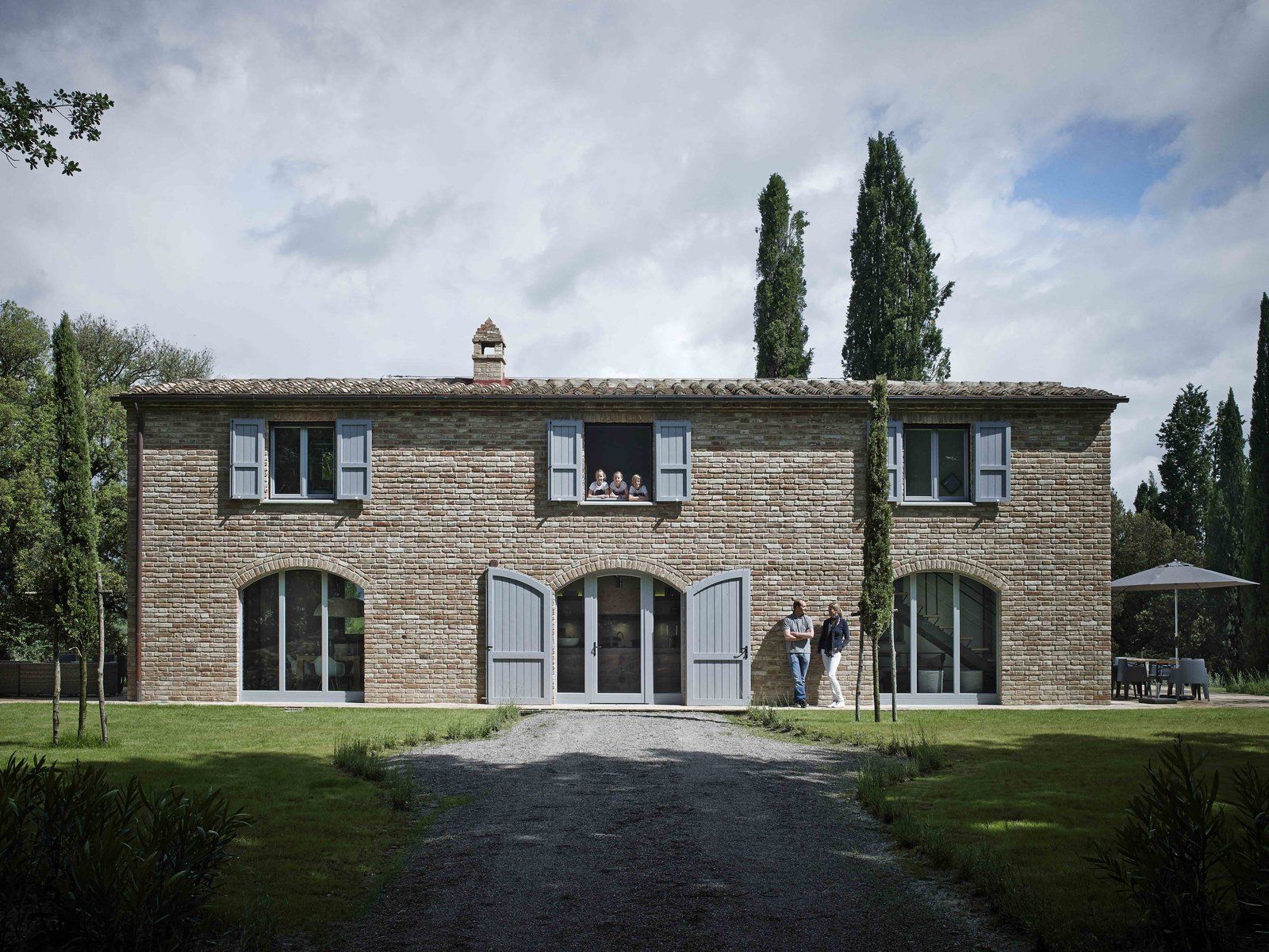 Za klasyczną, toskańską fasadą tej willi kryje się chłodny, monochromatyczny, nowoczesny dom wakacyjny.