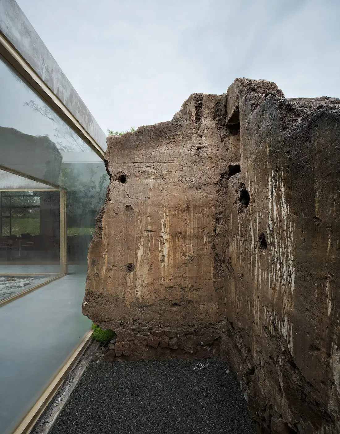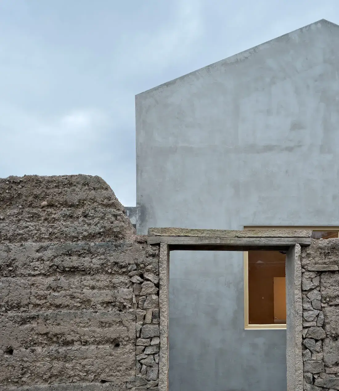 Dom mieszkańców wioski ożywia wspomnienia, integrując tradycyjne elementy architektoniczne z nowymi przestrzeniami publicznymi. Obok ruin dwóch domów z gliny odkryto dodatkowe sekcje ścian z ubitej ziemi. Znajdowały się tam trzy domy do hodowli grzybów, które z czasem niemal całkowicie zburzono. Nowy projekt obejmuje te pozostałości, pozwalając nowemu budynkowi „wyrosnąć” naturalnie ze starych ścian. Tworzy to harmonijne połączenie nowych betonowych struktur i historycznych fragmentów, zachowując typologię architektoniczną wsi i utrzymując jej tradycyjne środowisko przestrzenne.