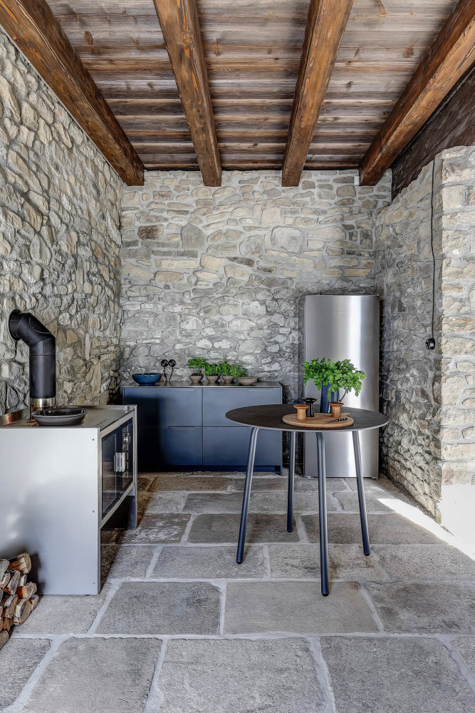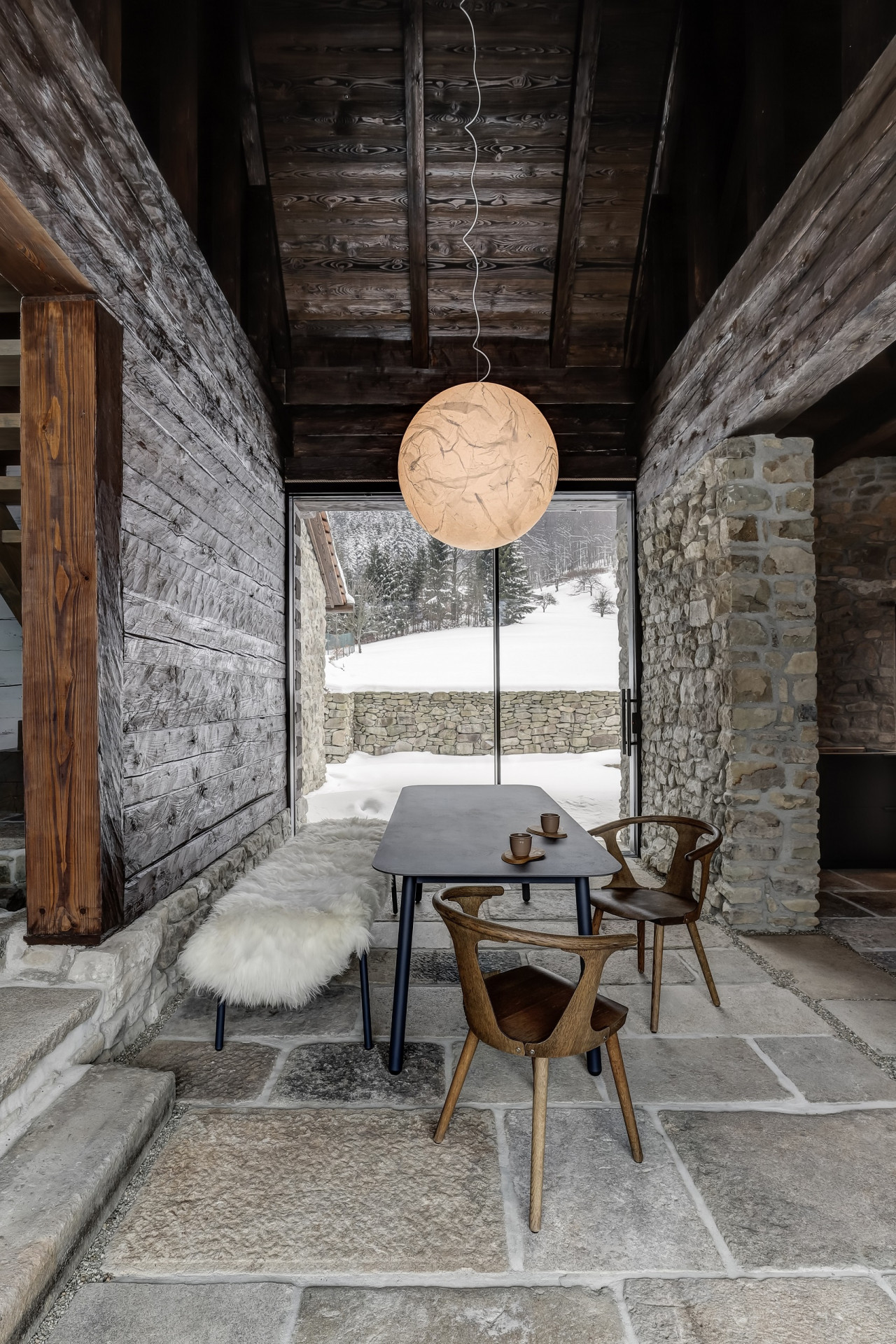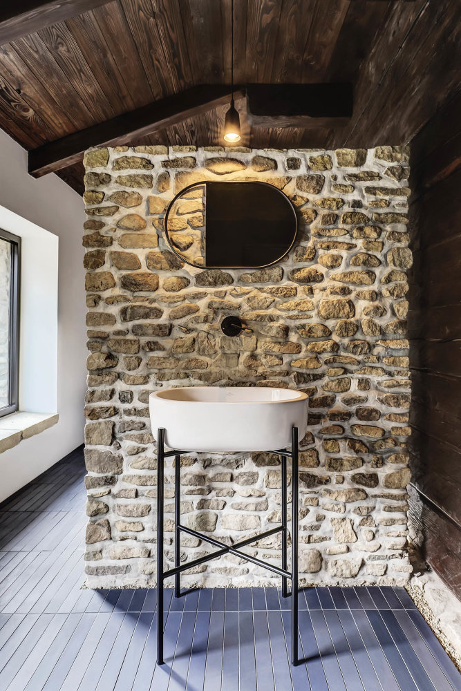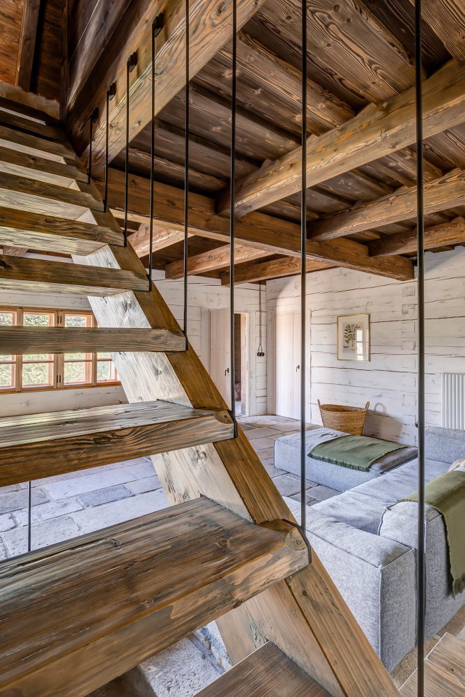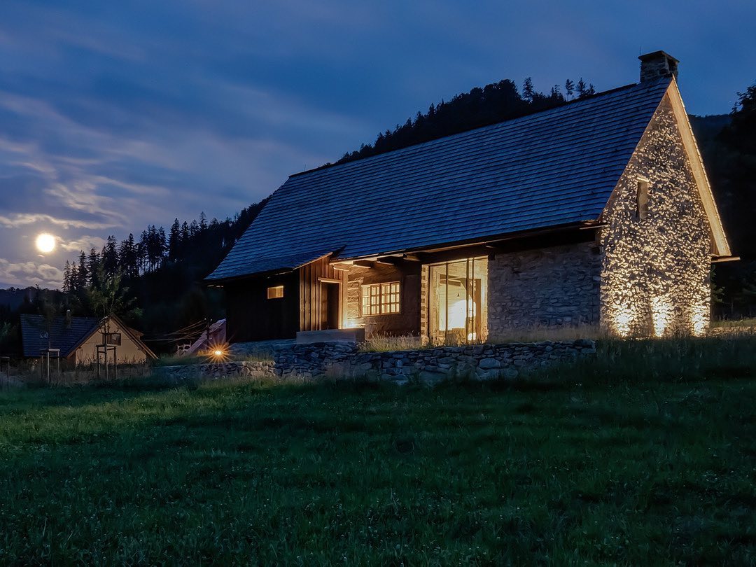 W sypialni z bali, opartej na oryginalnych konstrukcjach z XIX wieku, zasypiasz z widokiem na gwiazdy i budzisz się z chęcią, by przebiec boso przez poranną rosę. Stuletnie kamienie, drewniane łóżko, szept strumienia w oddali i światło księżyca nad głową – wszystko to tworzy architekturę emocji, w której forma i funkcja wzajemnie się przenikają.