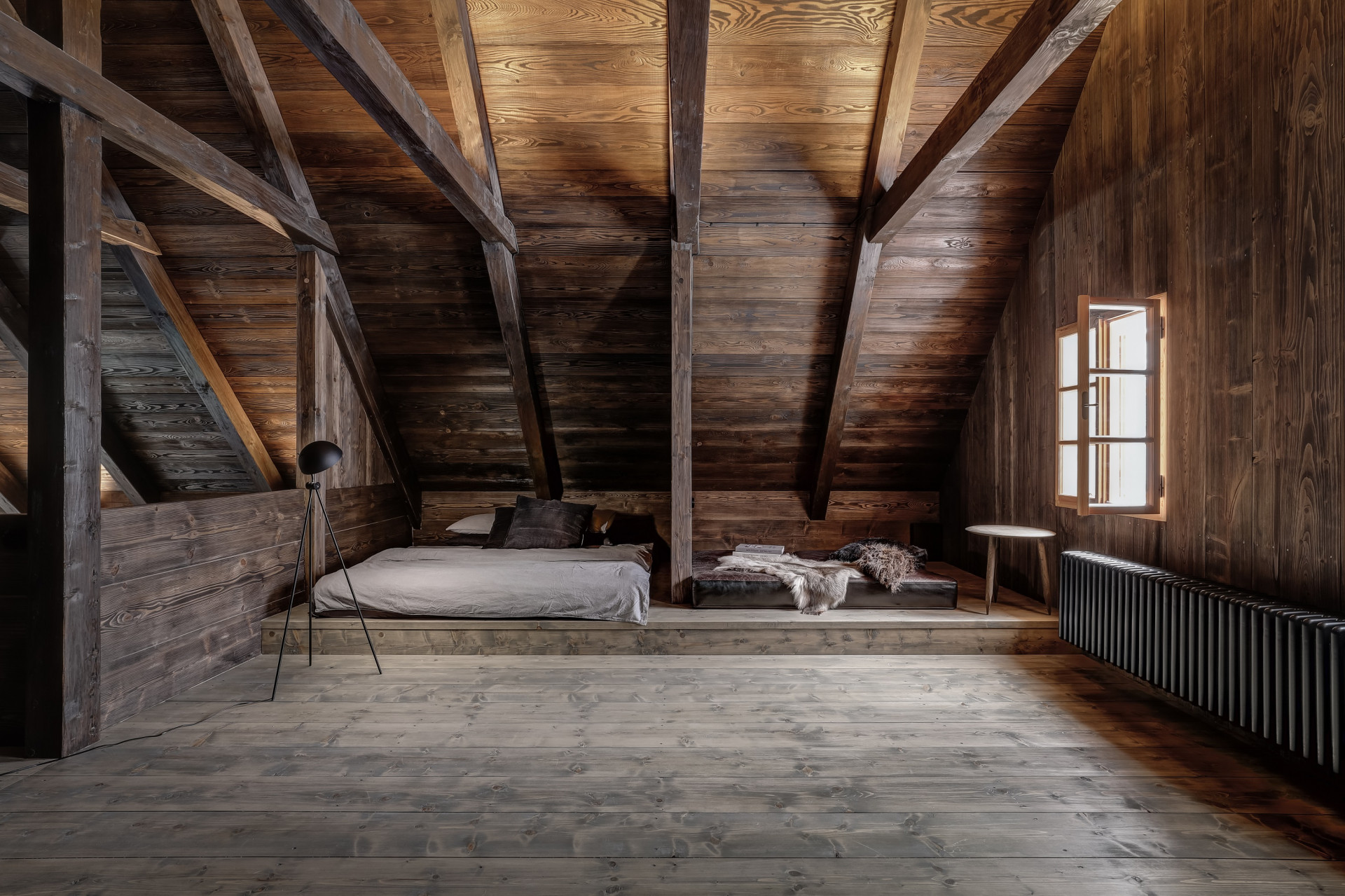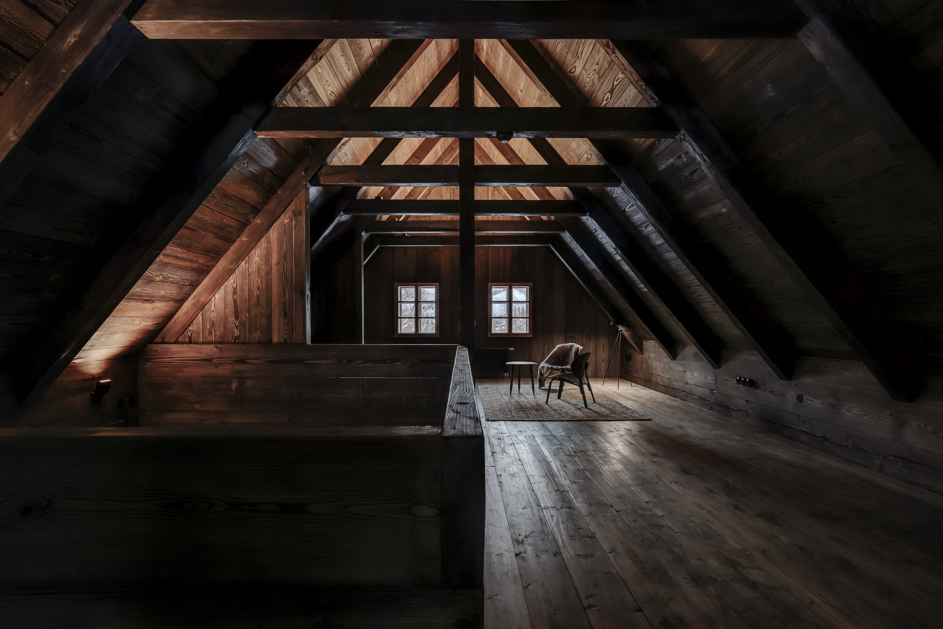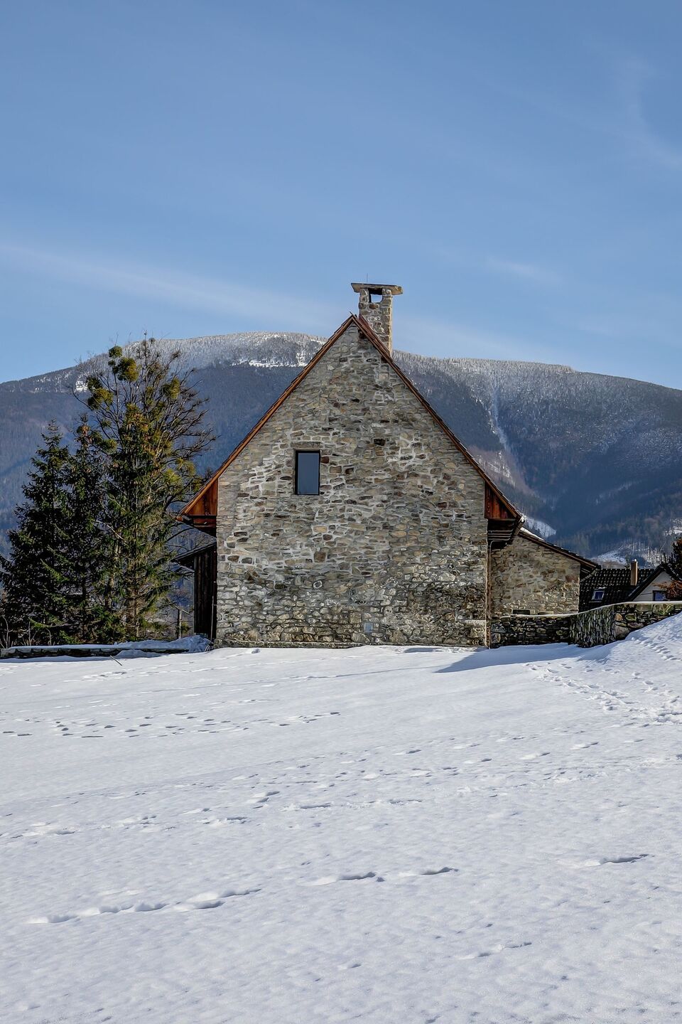 W sypialni z bali, opartej na oryginalnych konstrukcjach z XIX wieku, zasypiasz z widokiem na gwiazdy i budzisz się z chęcią, by przebiec boso przez poranną rosę. Stuletnie kamienie, drewniane łóżko, szept strumienia w oddali i światło księżyca nad głową – wszystko to tworzy architekturę emocji, w której forma i funkcja wzajemnie się przenikają.