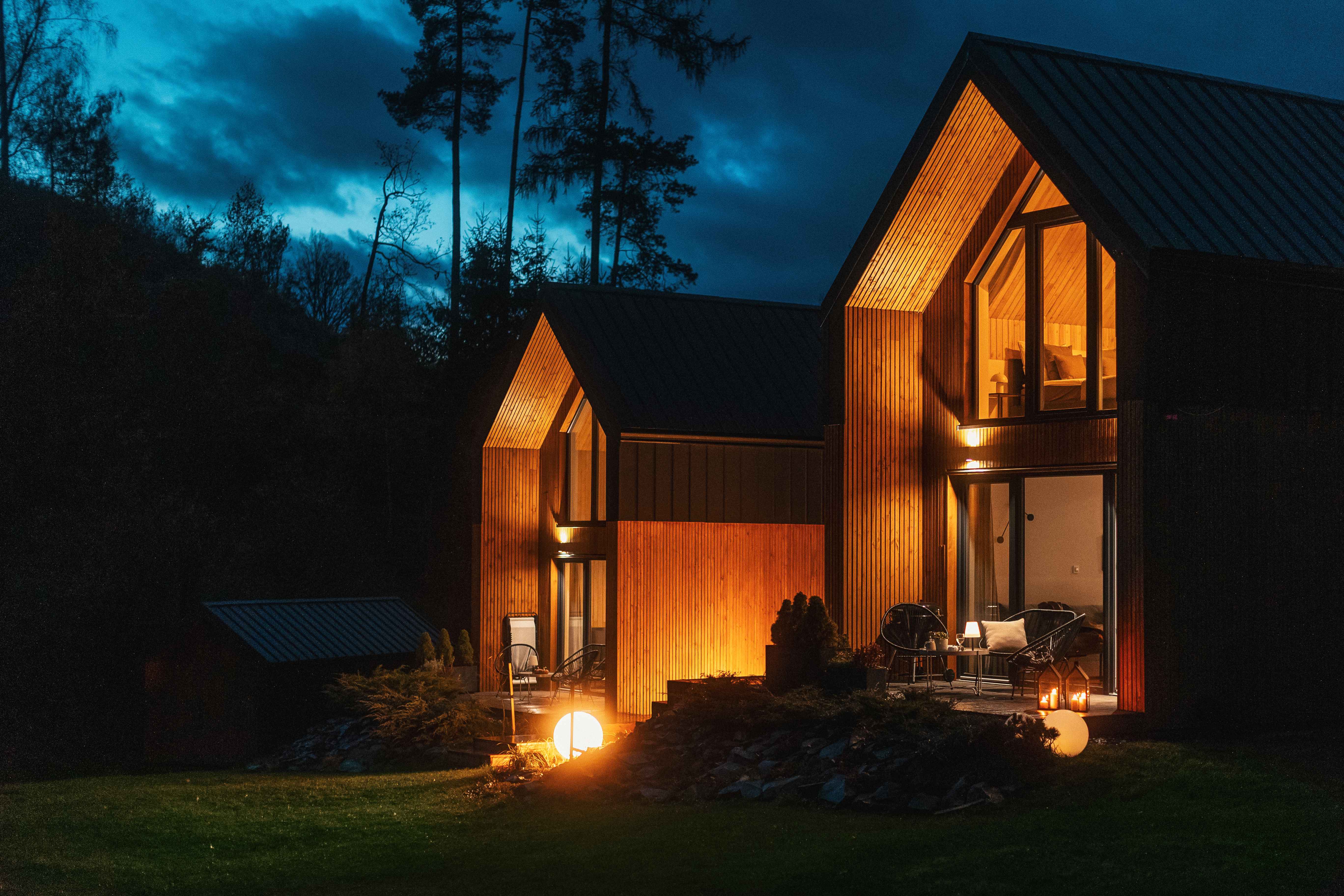 Hill & Chill to dwa nowoczesne domki w stylu nowoczesnej stodoły, położone w samym sercu Gór Stołowych, niedaleko Kudowy-Zdroju. Architektura w harmonii z krajobrazem – prosta, elegancka i blisko natury. Duże przeszklenia otwierają wnętrze na widoki, pozwalając cieszyć się każdym promieniem słońca i barwnym lasem z widokiem na góry. Poranek zaczyna się tu spokojnie. Przez okna wpada mleczna mgła, w dole słychać szum strumyka, a w kubku paruje kawa. To moment, w którym świat zwalnia, a Ty po prostu jesteś.