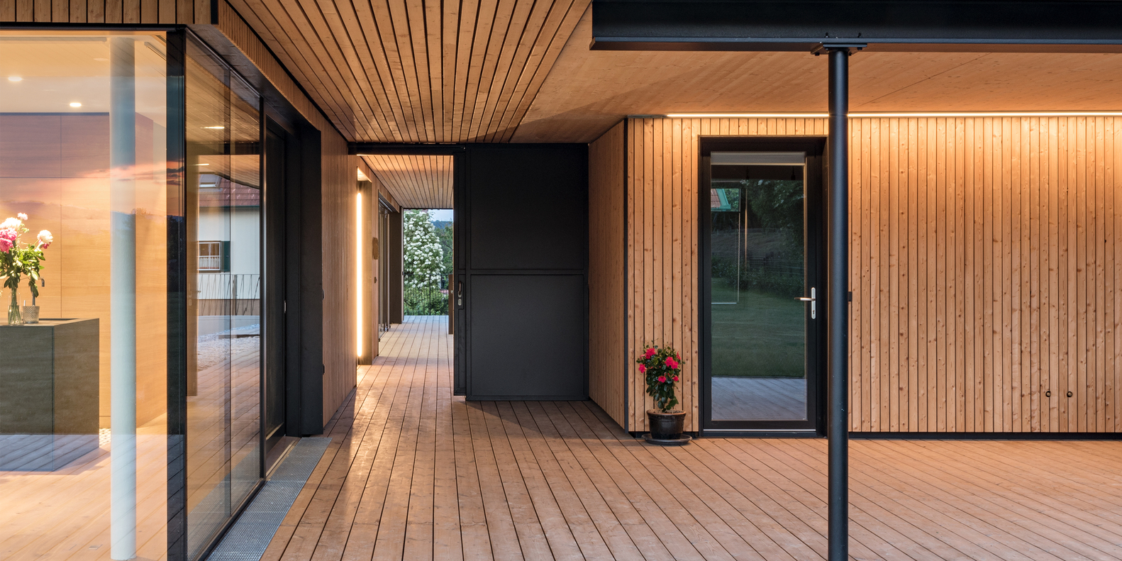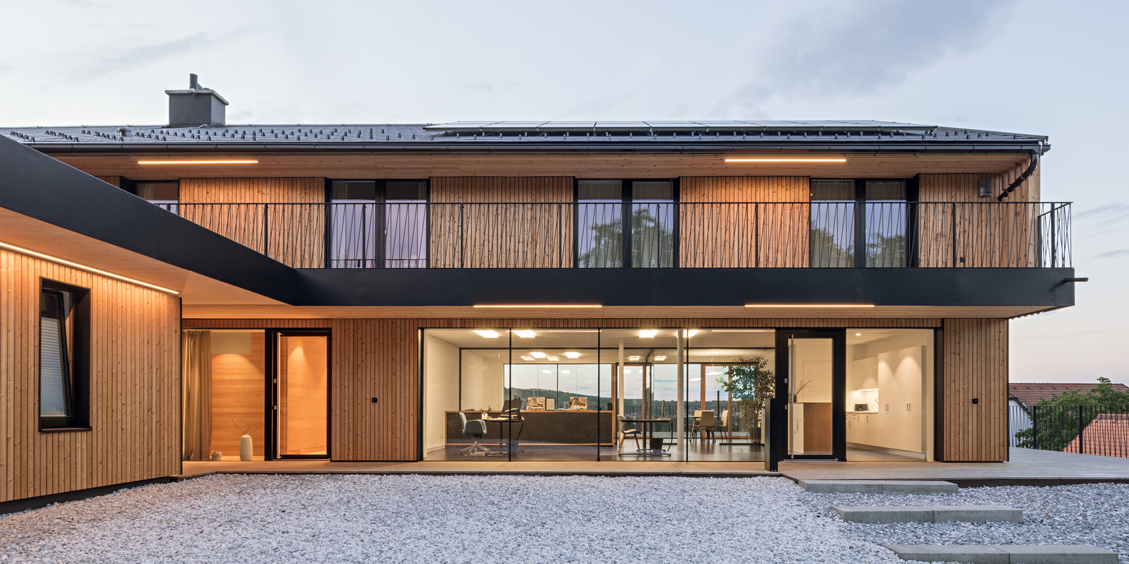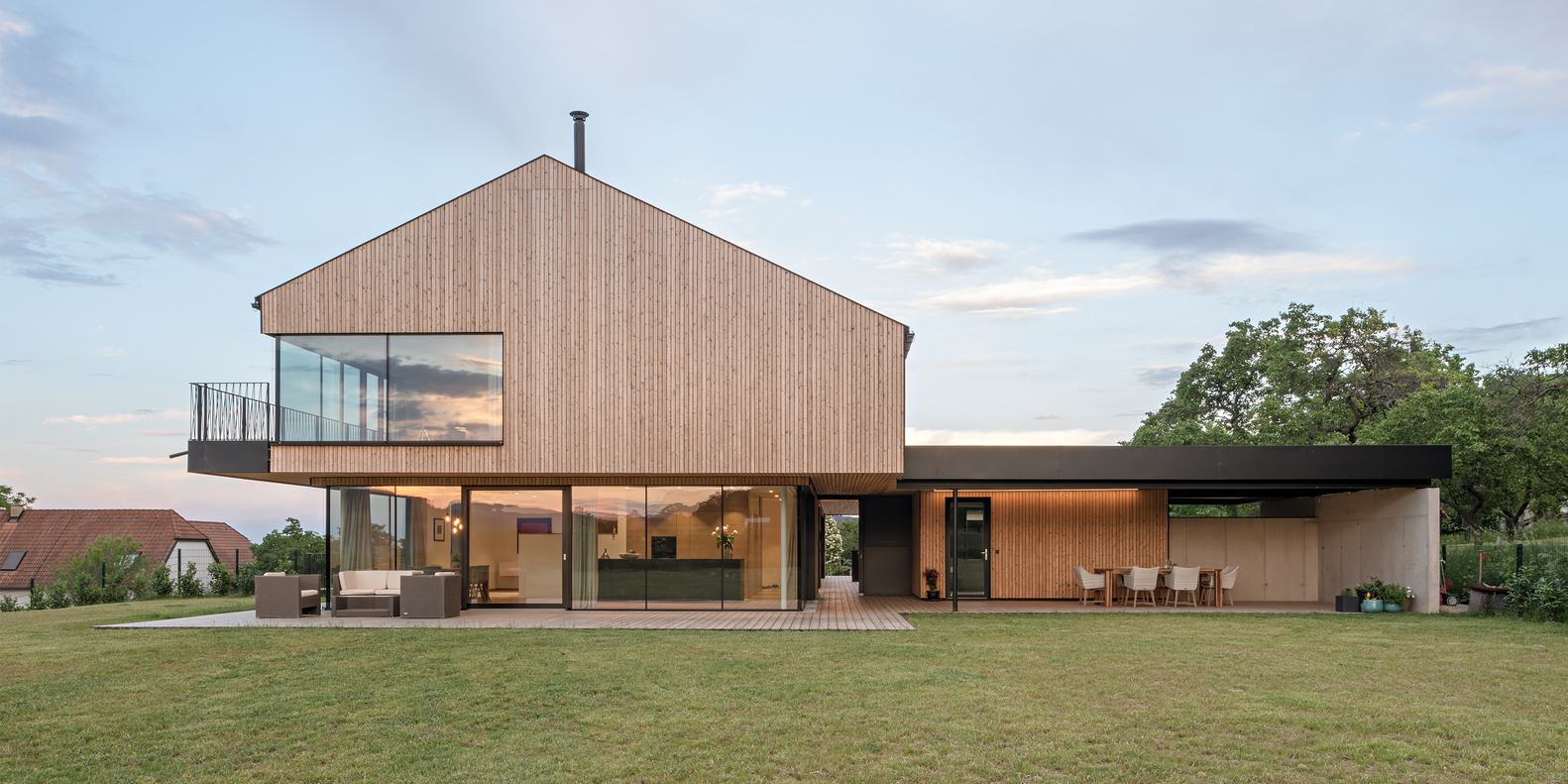 Prosty projekt rezydencji został połączony z ekologicznymi materiałami budowlanymi, by sprostać założeniom całej filozofii życiowej właścicieli. Konstrukcja powstała z drewna, ocieplenie to ekologiczne włókna drzewne, a elewacja również została wykonana z odpowiednio pozyskanych materiałów drewnianych. Część dachu, która kryje pomieszczenia dla gości lub partnerów biznesowych, została zaprojektowana jako zielony dach.