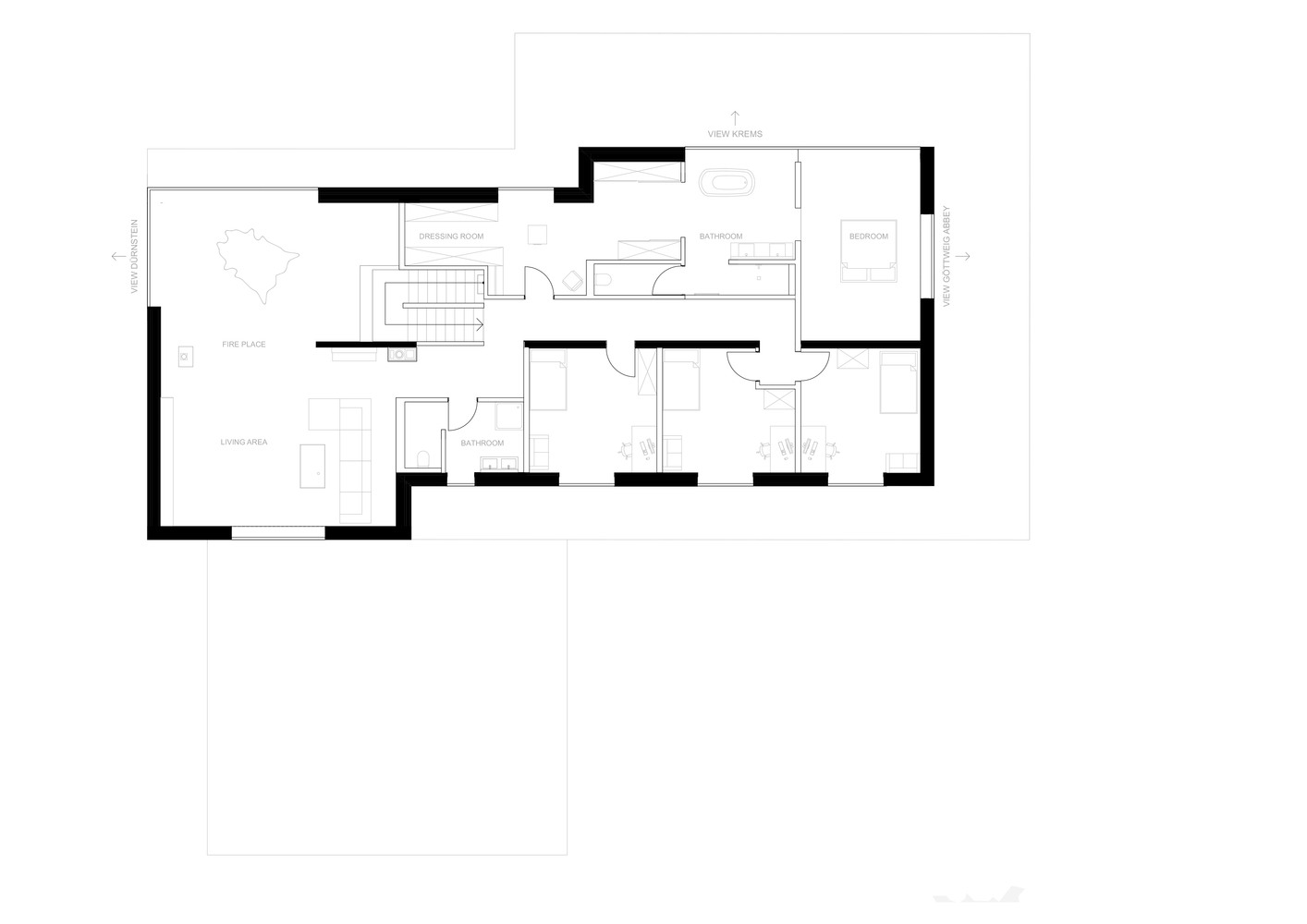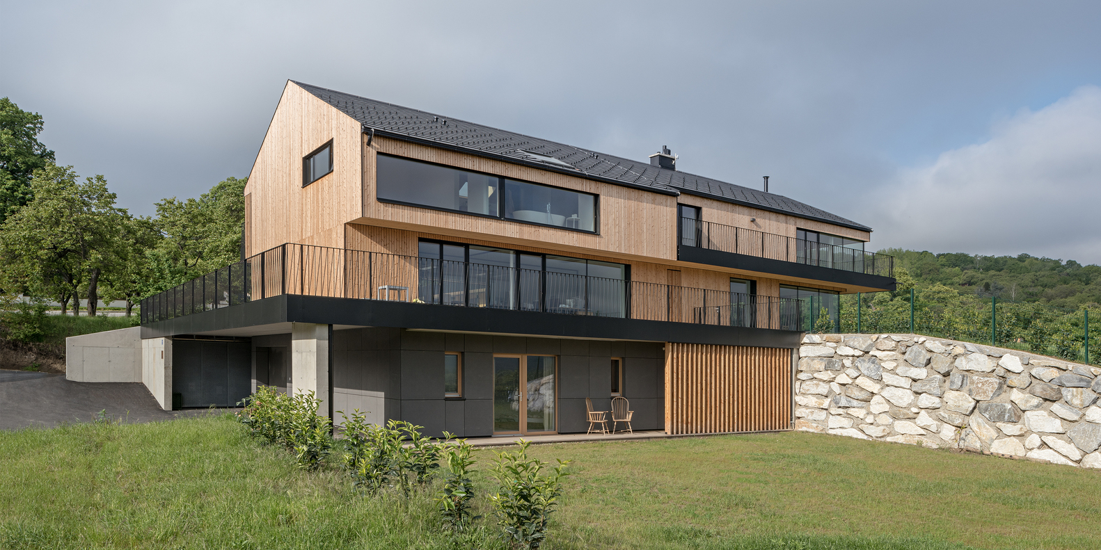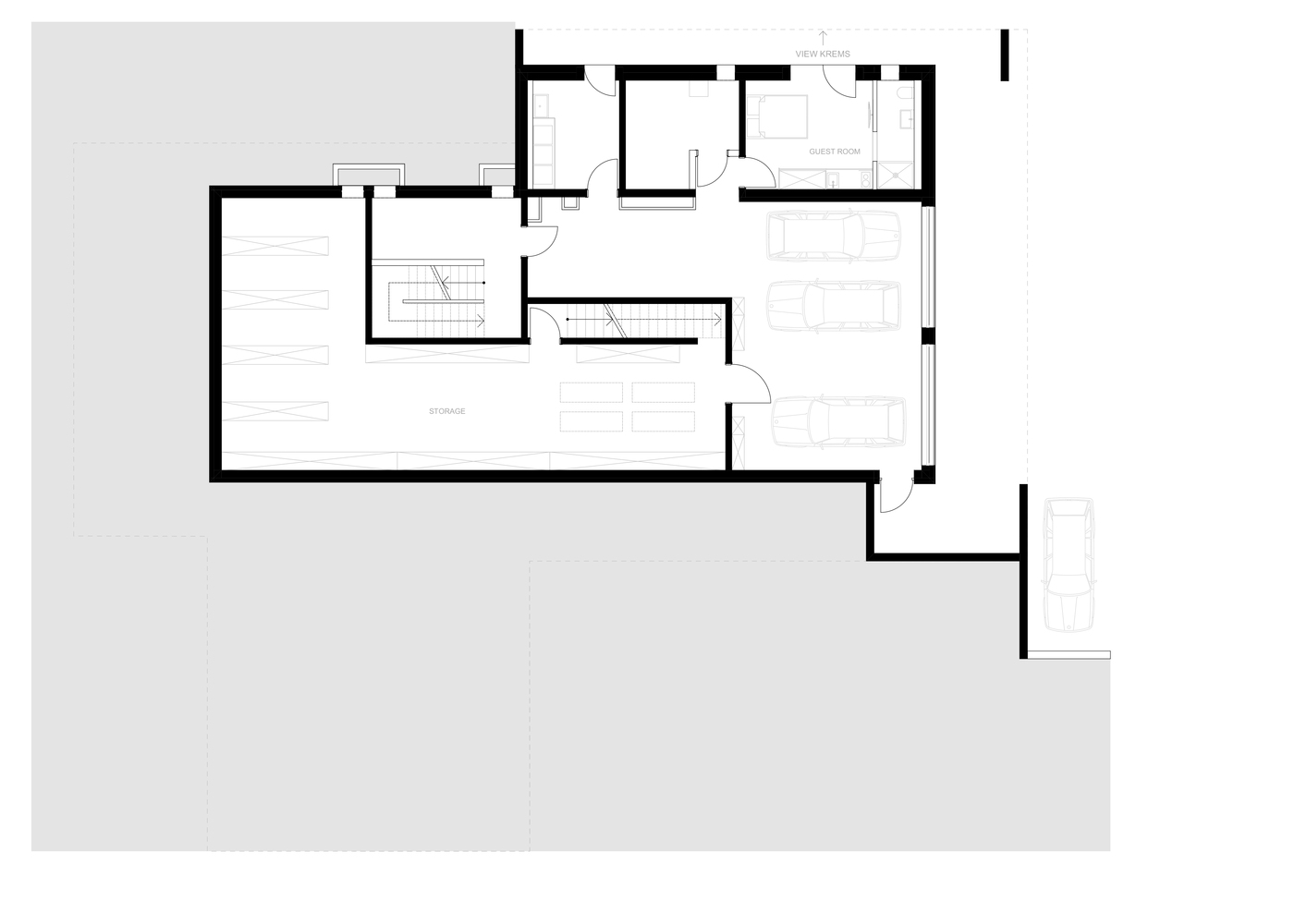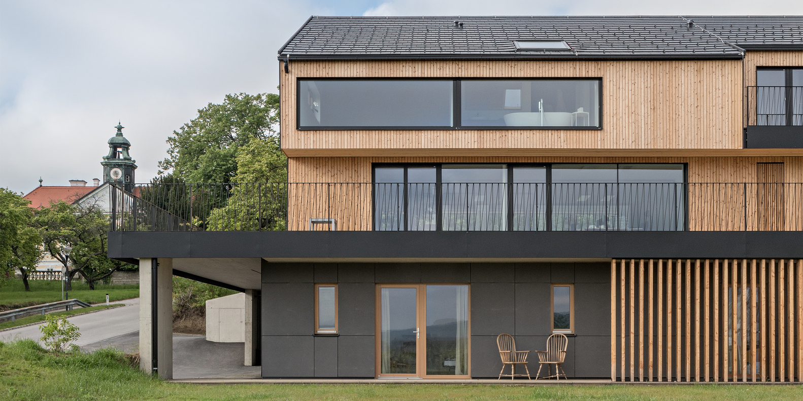 Budynek został doskonale osadzony w topografii nieruchomości, ukazując też wspaniałe dziedzictwo kulturowe miasta, w tym jego piękny zamek Dürnstein oraz opactwo Göttweig. Biura firmy zwrócone są w stronę ulicy i mają osobne wejście oraz dostęp do magazynu. Po przeciwnej stronie domu znajdują się przestrzenie prywatne.Ogromne okna sprawiają, że pomieszczenia zalane są naturalnym światłem i doskonale łączą się z otaczającą dom winnicą. Przeszklenia zostały starannie zaplanowane tak, by otwierały się na krajobrazy, ale jednocześnie zapewniały mieszkańcom odpowiednią prywatność.