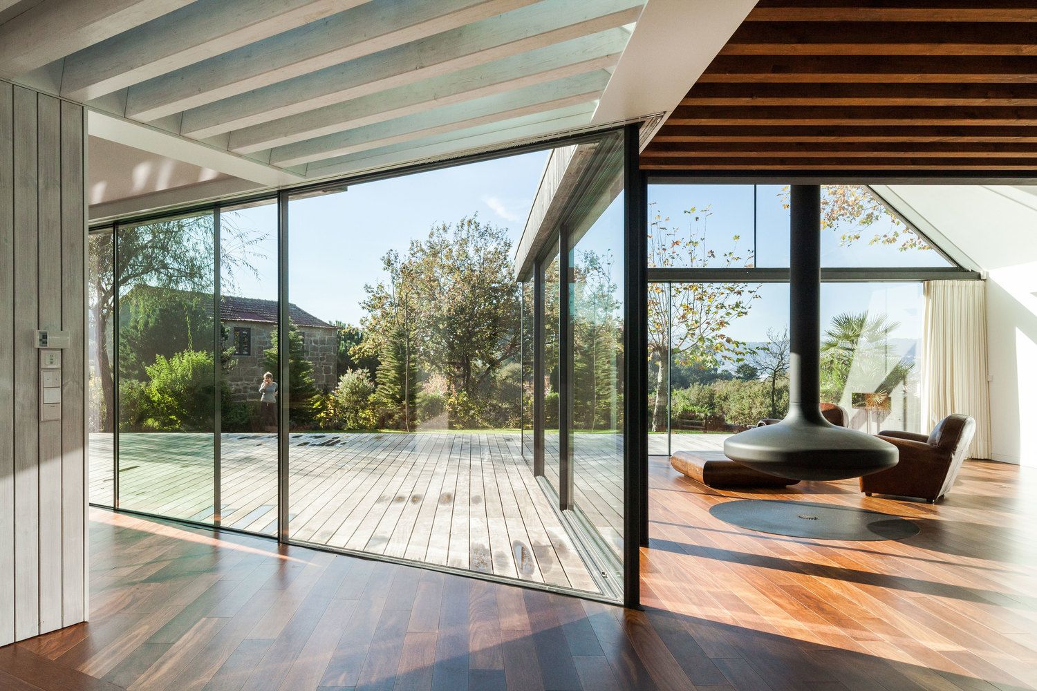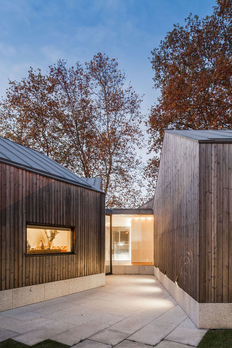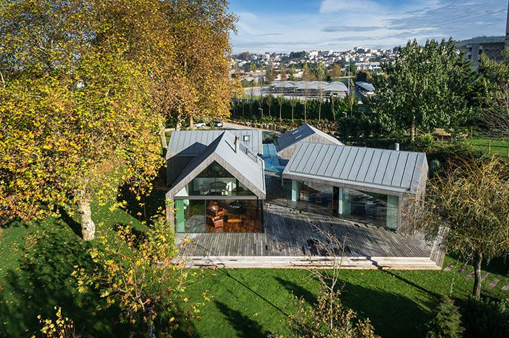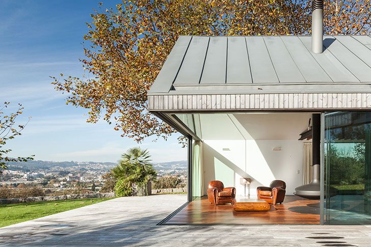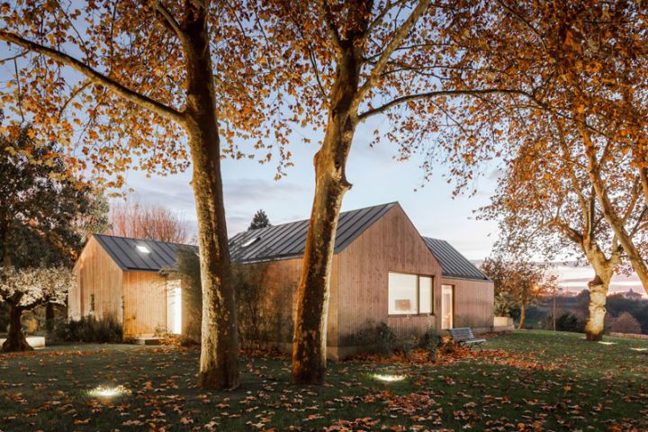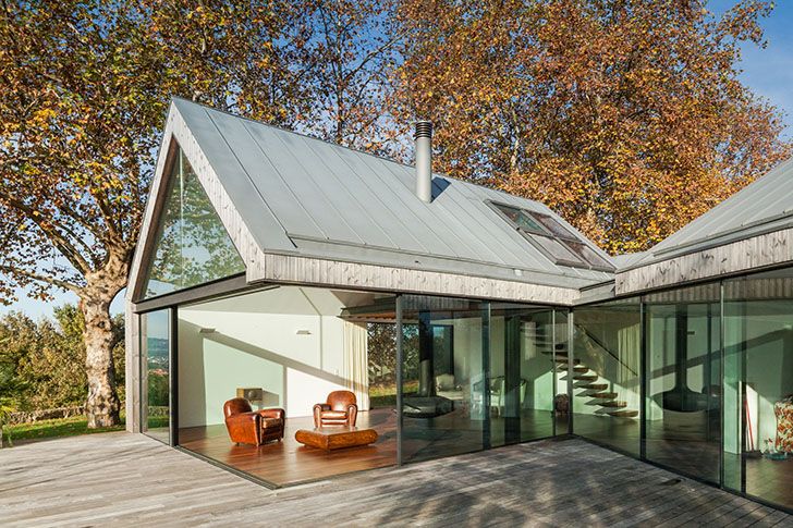 Na północy Portugalii, w otoczeniu malowniczej doliny, powstał wakacyjny dom zaprojektowany dla czteroosobowej rodziny. Jego forma wyrasta z szacunku do lokalnego kontekstu i inspiracji istniejącą zabudową. Architekci postanowili podzielić całość na kilka części o podobnych wymiarach, lecz różnym ustawieniu. Trzy z nich ustawiono prostopadle względem centralnej przestrzeni, a czwartą delikatnie obrócono, aby dopasować ją do sąsiedniego budynku. Ta bliskość stworzyła naturalny dialog między konstrukcjami, a skromna skala starszego obiektu stała się punktem odniesienia dla całego projektu.