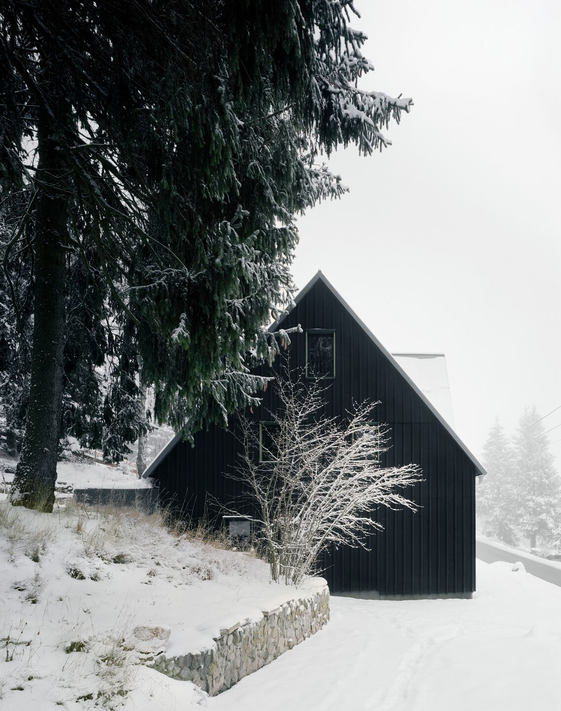 Architekt zaprojektował dom w Rudawach dla swoich rodziców, tworząc przestrzeń dla całej rodziny, harmonijnie wpisującą się w naturalne otoczenie. Nowoczesna stodoła łączy w sobie tradycyjne materiały – kamień łupany i drewno iglaste, podkreślając związek z lokalnym krajobrazem.