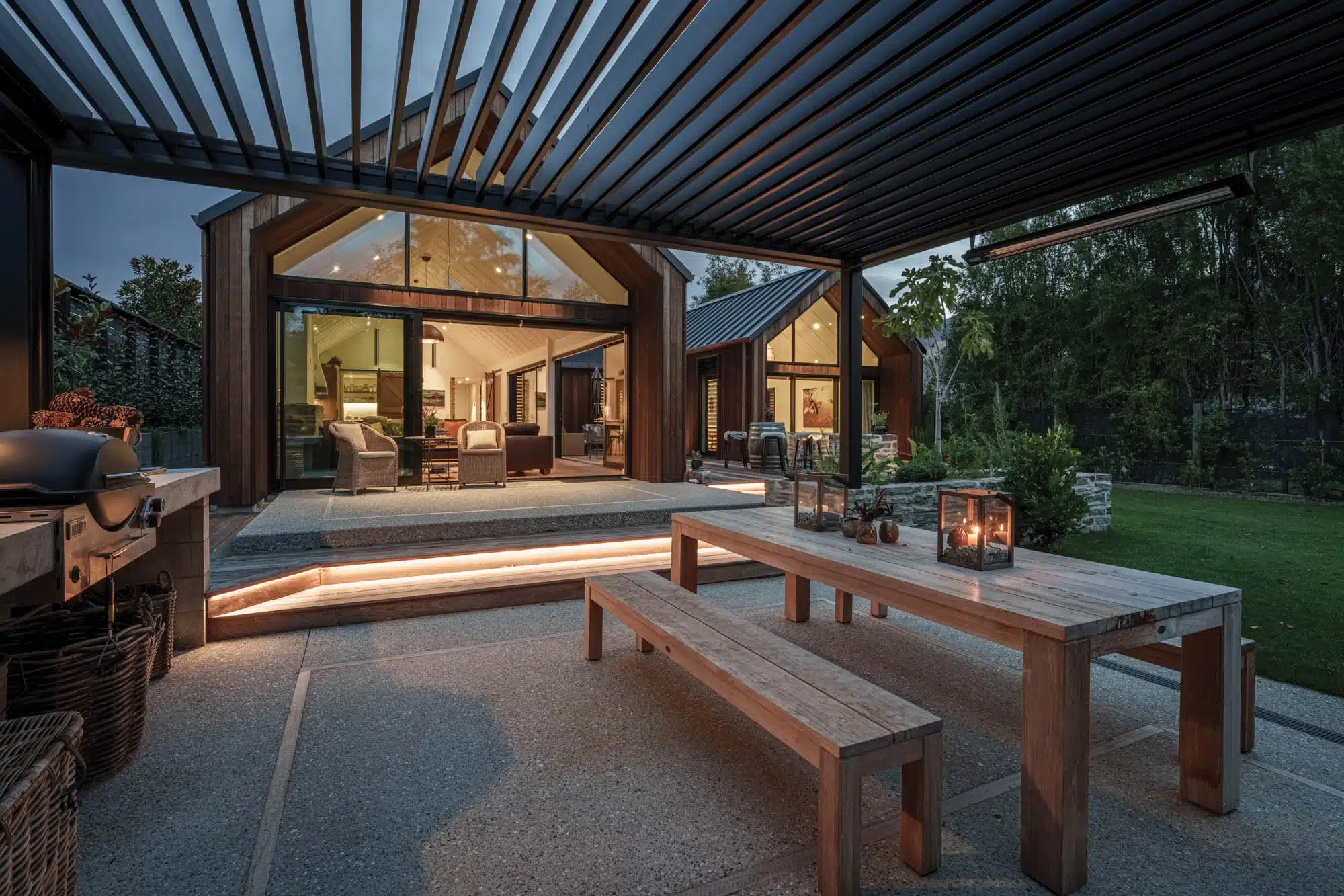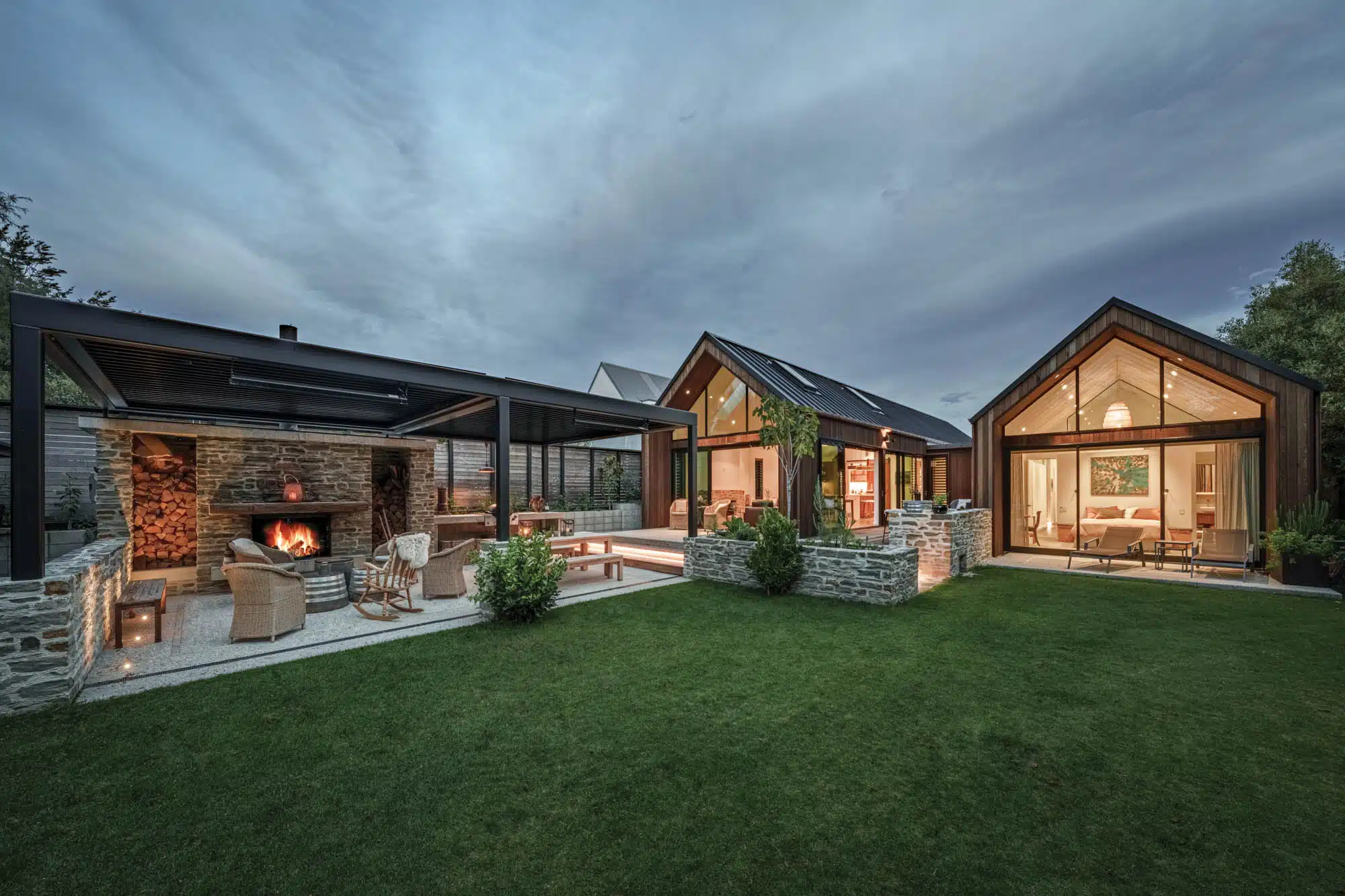 Wanaka Retreat to dom, w którym nowoczesność spotyka się z naturą. Pawilonowy układ, duże przeszklenia i wyważone proporcje sprawiają, że wnętrza są przestronne, jasne i sprzyjają rodzinnej integracji, jednocześnie oferując prywatność i spokój. To współczesna interpretacja wiejskiego domu – funkcjonalna, pełna światła i bliskości z otaczającym krajobrazem.