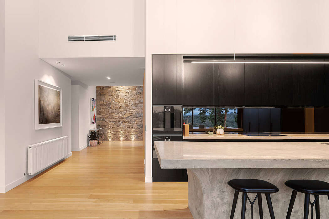 Wystarczy pokonać około 20 kilometrów od centrum biznesowego i finansowego Malbourne, by trafić w zupełnie inne miejsce. To właśnie tu rozciąga się cicha dzielnica Warrandyte, którą upodobali sobie właściciele szukający spokojnego miejsca, gdzie mogliby odpocząć od pełnego życia rytmu miasta. W zachwycającej scenerii powstał nowoczesny dom w stylu wiejskim, który stał się również miejscem do prezentacji produktów firmy Unios. Oświetlenie całej rezydencji zaprojektowała firma Lights & Tracks, która wykorzystała w tym projekcie różne lampy, starannie podkreślając konkretne miejsca w domu. Odpowiednie punkty i listwy oświetleniowe witają nas we wszystkich pomieszczeniach wewnętrznych, a także przy wejściu.