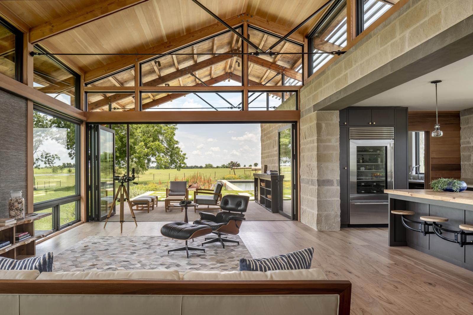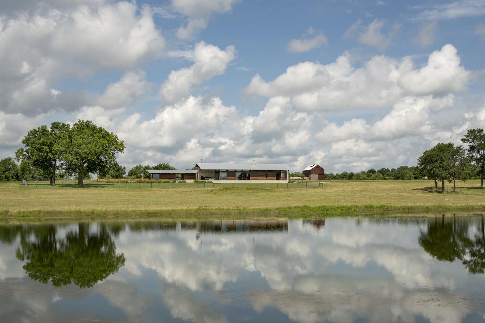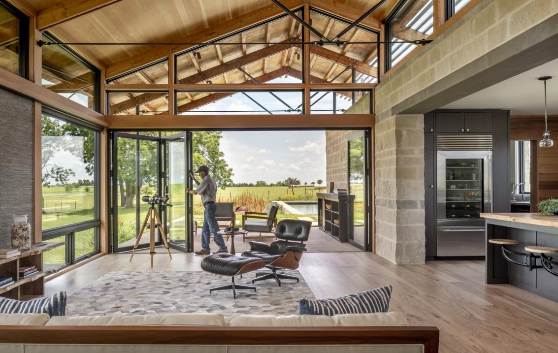 Ranczo Washington County, położone na delikatnym wzniesieniu z malowniczym widokiem na spokojny staw i rozległe, falujące pola, to przykład harmonijnego połączenia współczesnej architektury, ekologicznego podejścia i osobistej historii mieszkańców. Ten nowoczesny dom wiejski, zaprojektowany z myślą o dwóch geologach, którzy porzucili miejskie życie na rzecz spokojnej codzienności blisko natury, uosabia ideę świadomego, zrównoważonego projektowania.