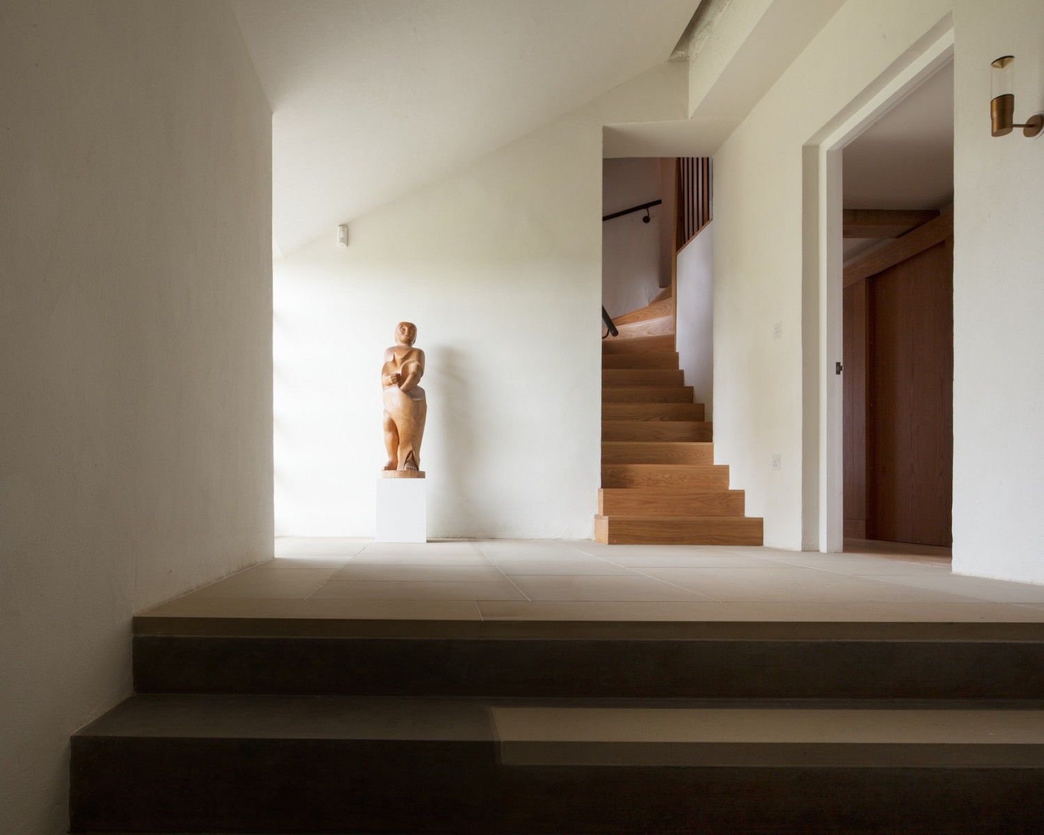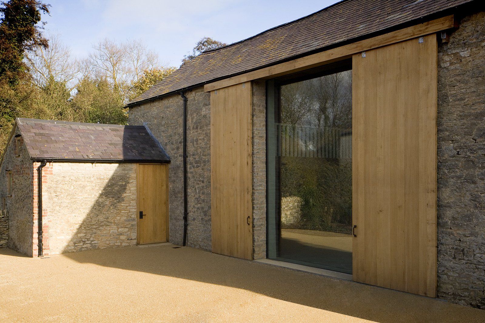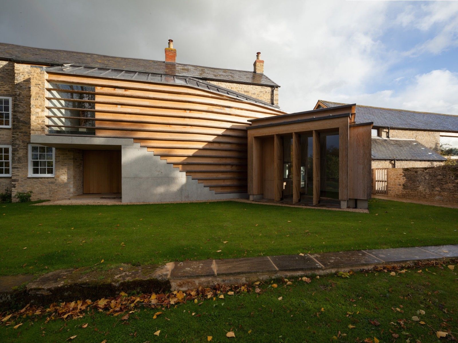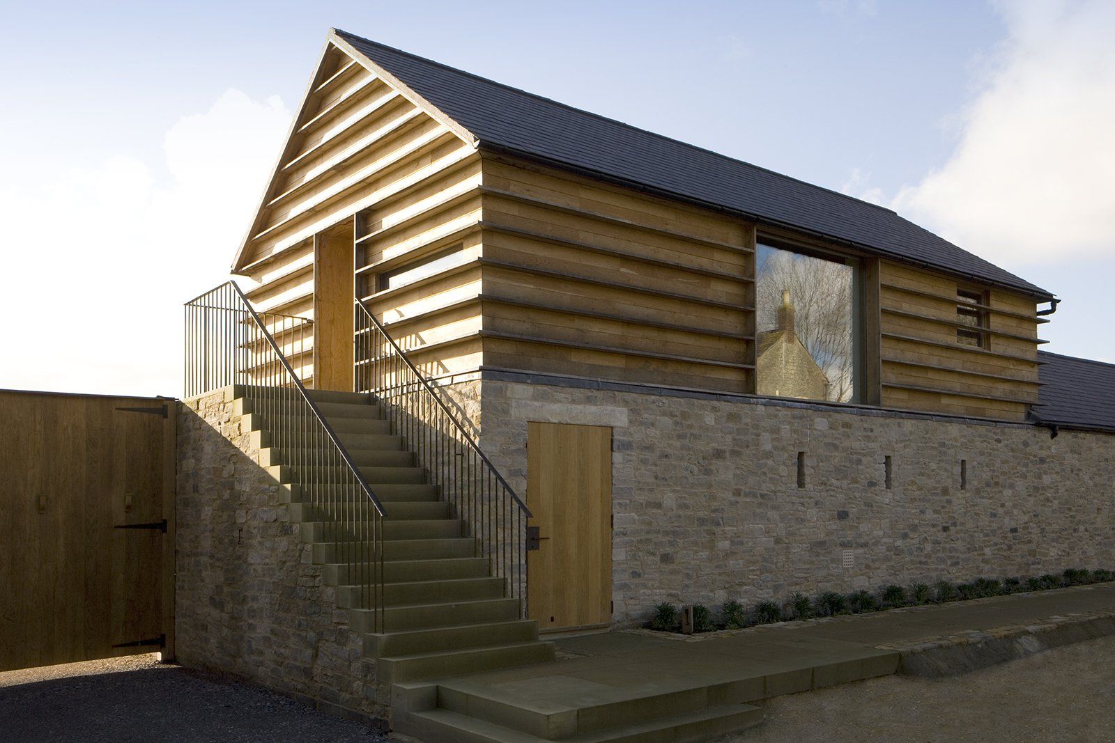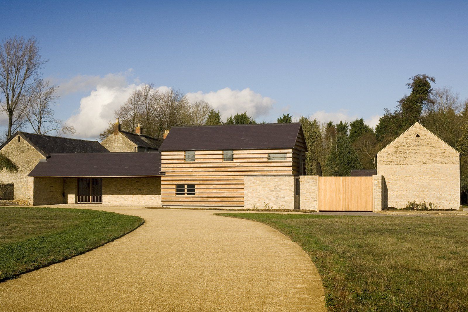 Projekt autorstwa James Gorst Architects zakładał połączenie dwóch obiektów za pomocą nowego, dwupiętrowego budynku z drewna, w którym zlokalizowano garaż oraz kwatery pracownicze. Drewniana bryła subtelnie wpisuje się w krajobraz wiejski, podkreślając relację architektury z otoczeniem i krajobrazem Oxfordshire. To jedna z tych realizacji, o których nie trzeba wiele pisać — wystarczy je podziwiać, analizować detale i czerpać inspirację do własnych projektów architektonicznych.
