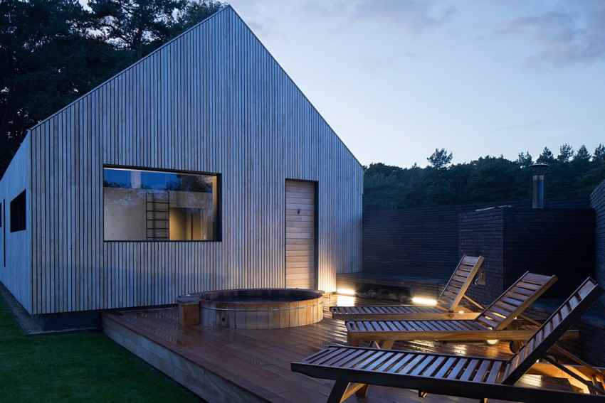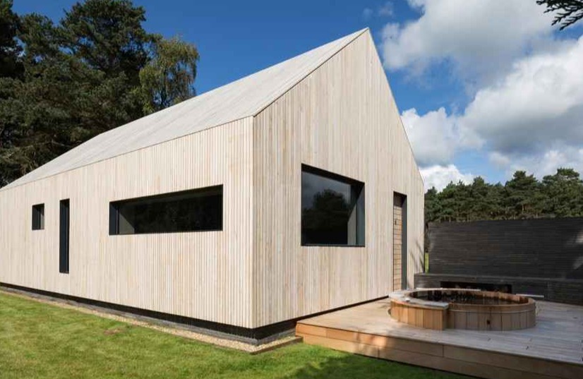 W miejscowości New Forest w hrabstwie Hampshire powstała nowa, obita drewnem przybudówka zaprojektowana przez Ström Architects. Zastąpiła ona starą, dwupiętrową konstrukcję, której właściciel używał jako przestrzeni roboczej, zanim otworzył własną firmę. Nowy obiekt miał pełnić funkcję elastycznej, rekreacyjnej przestrzeni – miejsca na spotkania, zabawę oraz nocleg dodatkowych gości. Ze względu na położenie nieruchomości na terenie Narodowego Parku New Forest, projekt wymagał szczegółowych badań przyrodniczych i wdrożenia działań ochronnych. Dopiero po ich zakończeniu możliwe było rozpoczęcie rozbiórki starej zabudowy i budowa nowej, drewnianej konstrukcji, której bryła nawiązuje subtelnie do estetyki nowoczesnej stodoły.