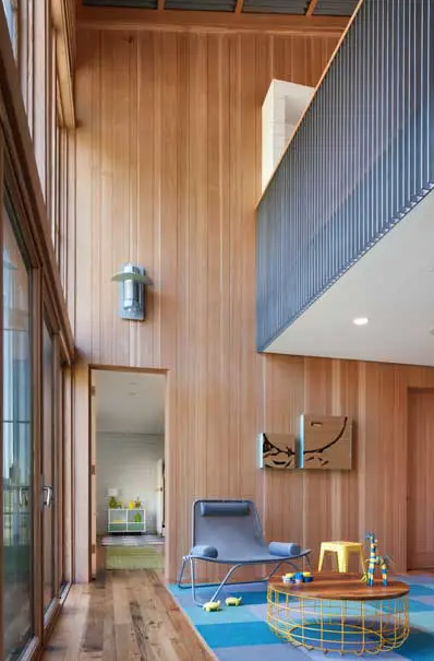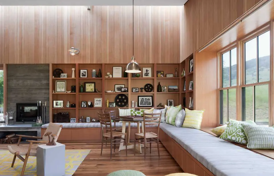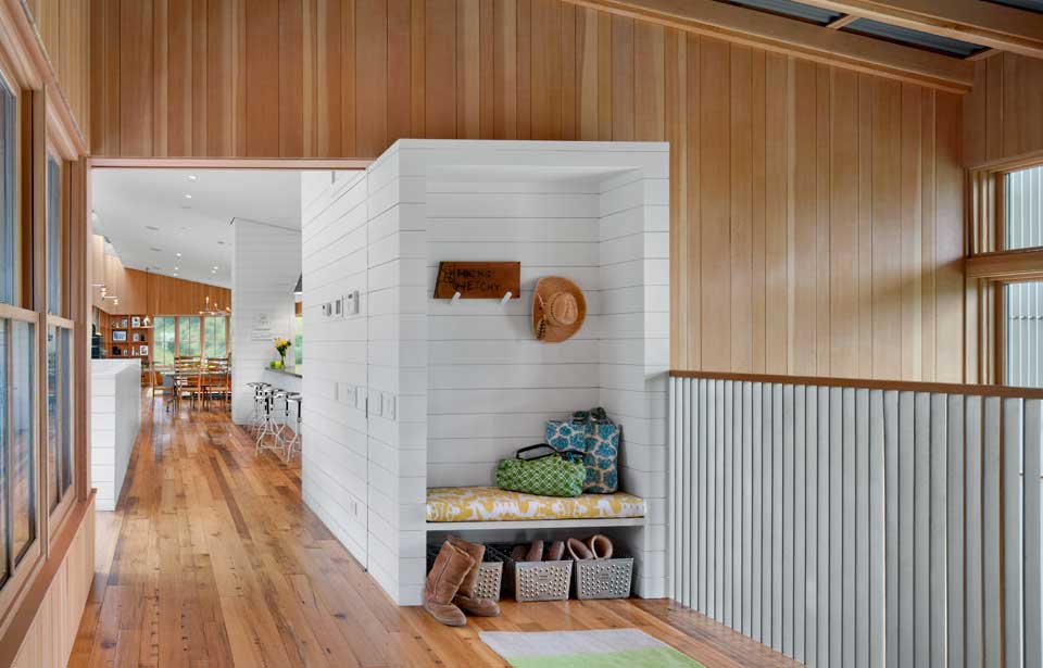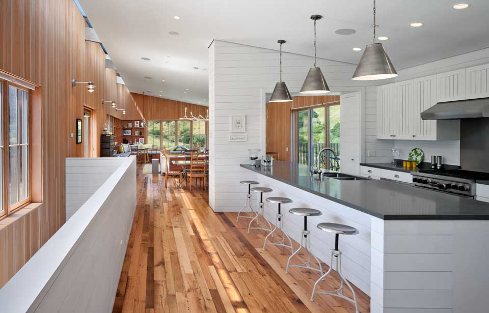 Elewacja domu została obita czerwonym cedrem, a dach pokryto blachą cynkową. Za projekt odpowiada firma Turnbull Griffin Haesloop, która zadbała o każdy szczegół zrównoważonego budownictwa. Wszystkie urządzenia są energooszczędne, a dom jest niemal całkowicie samowystarczalny dzięki systemowi fotowoltaicznemu. Inne kluczowe rozwiązania obejmują odpowiednie ocieplenie, drewniane podłogi z odzysku oraz strefowe ogrzewanie z pasywnym chłodzeniem.