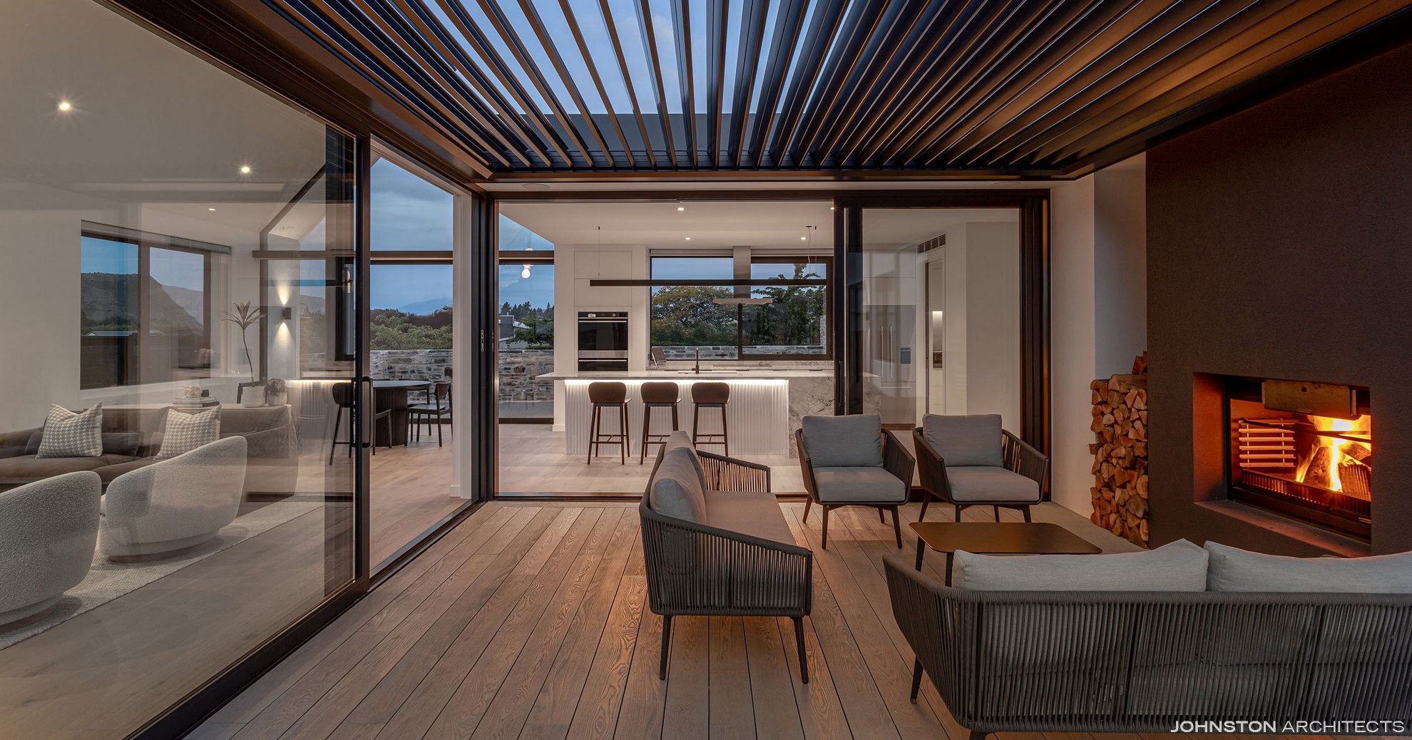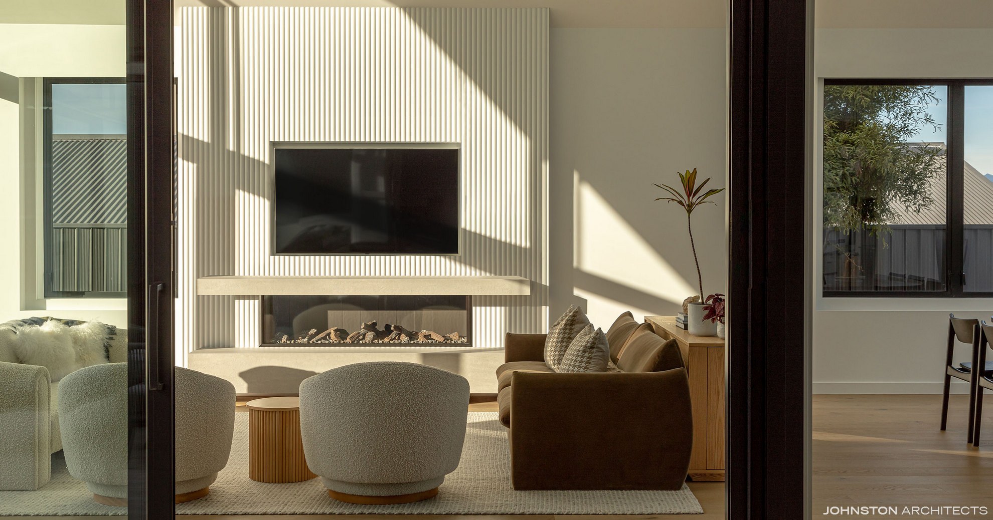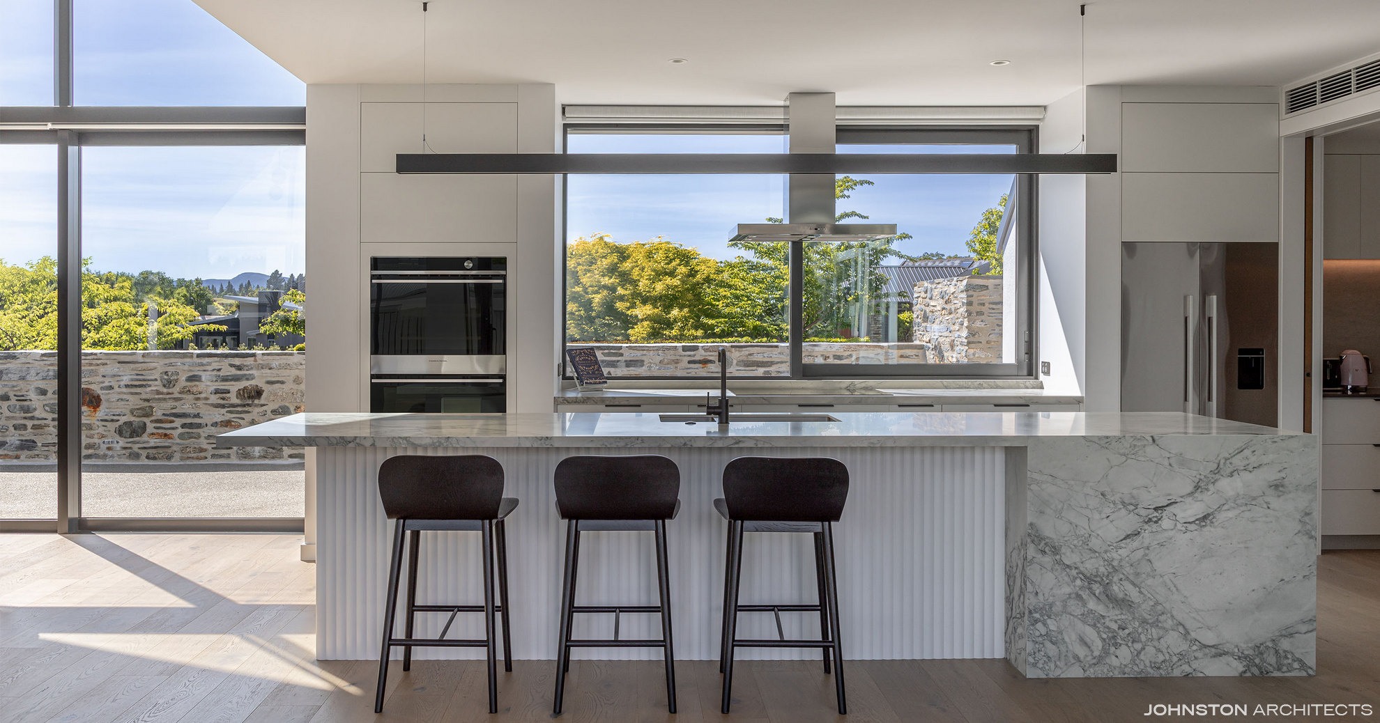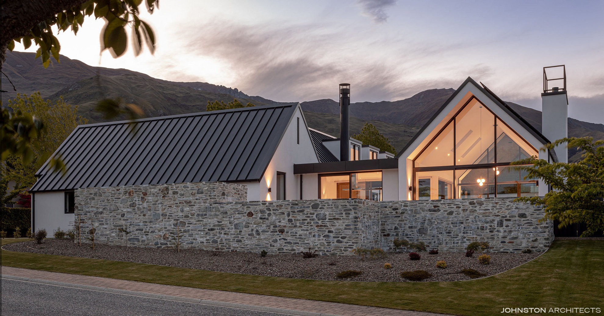 Ten rodzinny dom to nowoczesna reinterpretacja tradycyjnych form budowlanych, w której minimalistyczna paleta materiałów tworzy przestrzeń zarówno piękną, jak i funkcjonalną. Dzięki spadzistemu dachowi, śnieżnobiałym tynkom oraz solidnej obecności kamienia Otago schist, projekt zachowuje ponadczasową elegancję, która będzie aktualna przez pokolenia. To miejsce, gdzie klasyczne piękno spotyka się z nowoczesnym komfortem, oferując azyl dla młodej rodziny, który będzie ewoluować wraz z ich potrzebami.