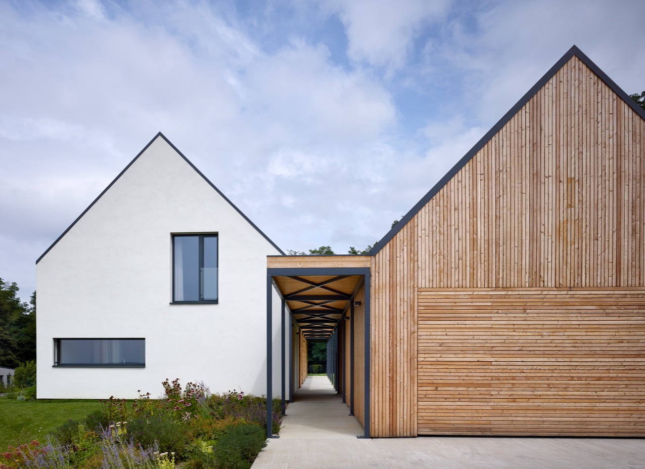 Projekt „J” autorstwa słowackich architektów z firmy ARCHITEKTI Mikulaj & Mikulajova to nowoczesna interpretacja tradycyjnego słowackiego domu. Zlokalizowany w malowniczej wsi Zahorie, budynek o powierzchni 401 m² czerpie inspirację z lokalnych tradycji, w tym charakterystycznego gánoka, który przez wieki pełnił rolę korytarza i przestrzeni do wypoczynku. Współczesna wersja tego elementu wprowadza nową funkcjonalność, łącząc dom murowany z drewnianym garażem, a stalowa konstrukcja gánoka nadaje całej przestrzeni sielski klimat. Budynek łączy tradycję z nowoczesnym designem, zapewniając komfortowe życie współczesnym właścicielom.