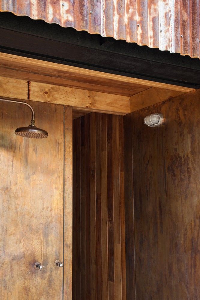 Dom zrealizowano głównie z materiałów pochodzących z recyklingu, co odzwierciedla podejście właścicieli do zrównoważonego życia. Pokryta rdzą blacha nie tylko pełni funkcję estetyczną, ale także zapewnia trwałość i naturalne wpisanie budynku w środowisko. Wnętrza zostały zaprojektowane z myślą o prostocie i funkcjonalności, oferując przestrzeń do wypoczynku i pracy.