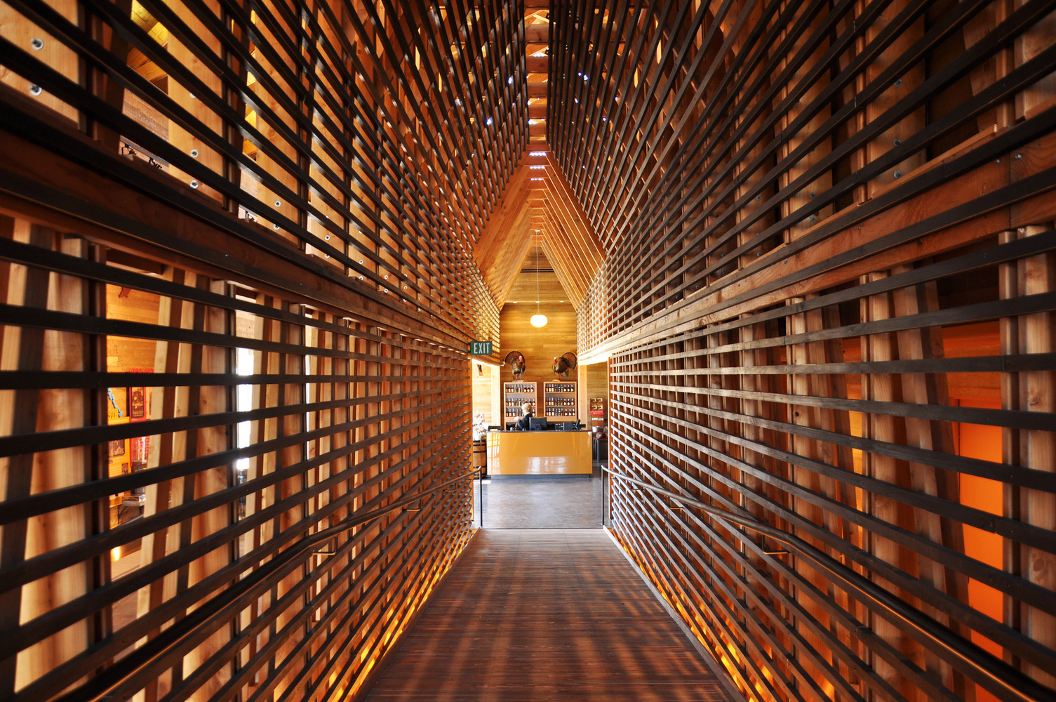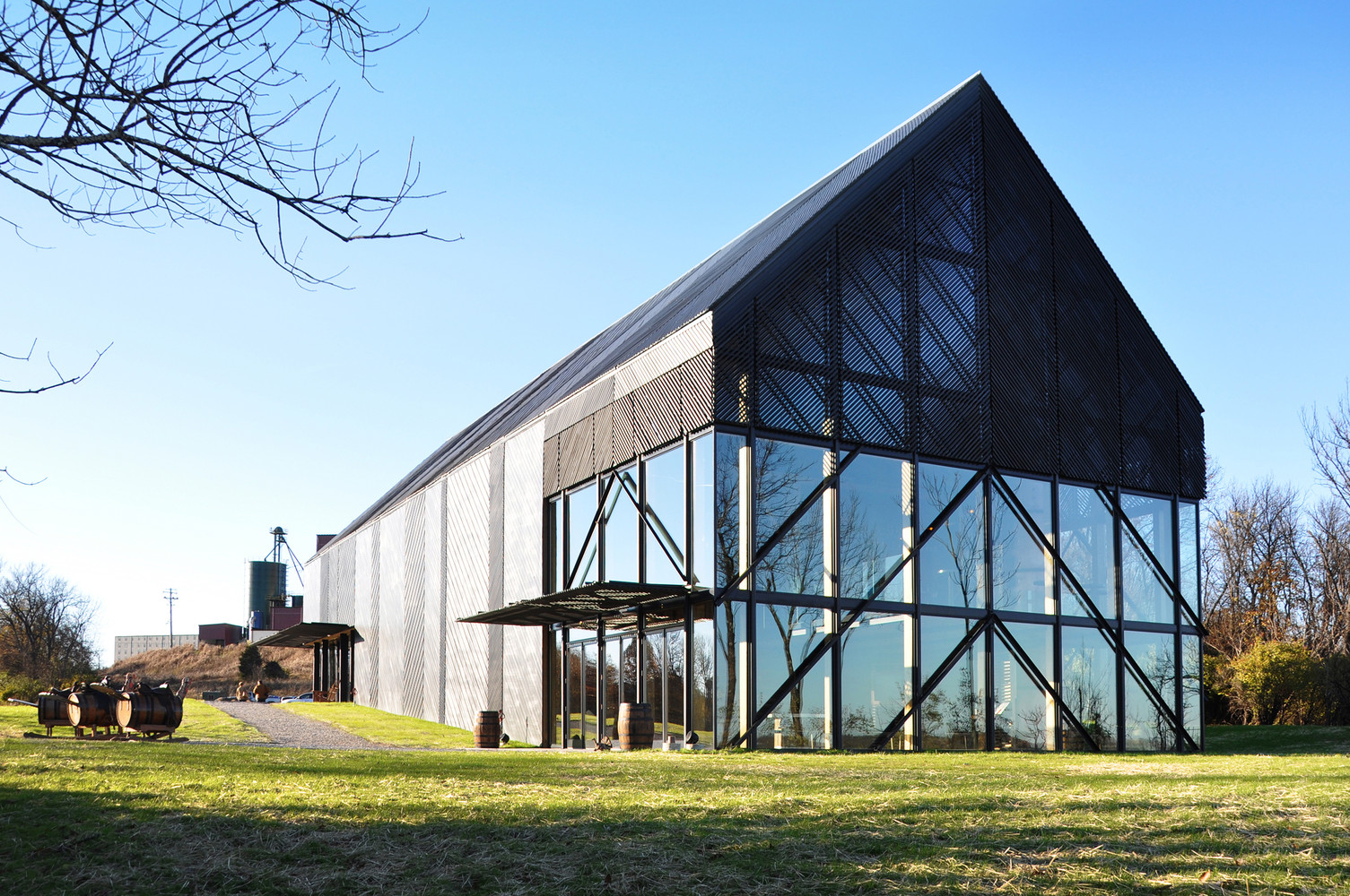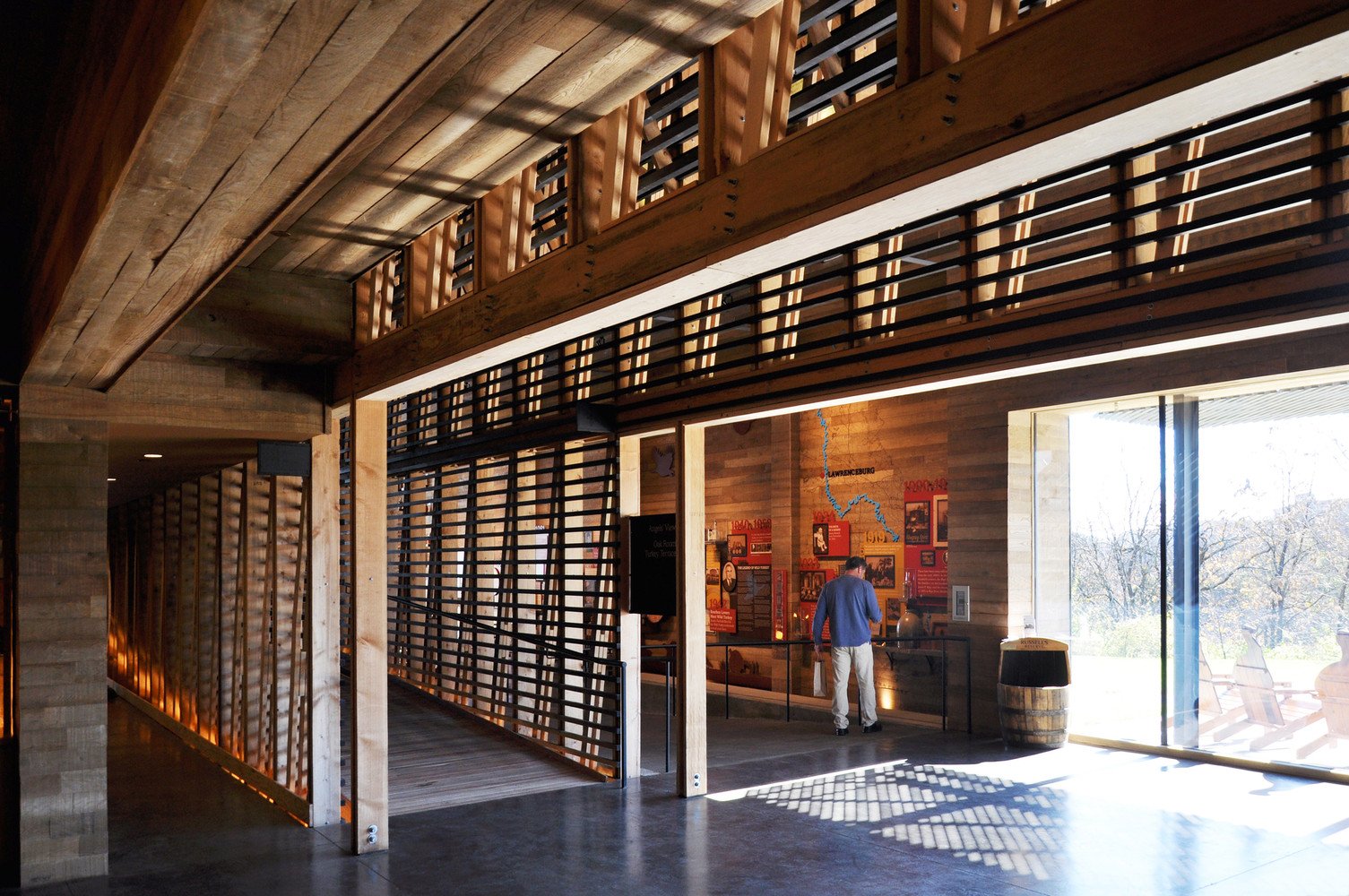 Położone na urwisku z widokiem na rzekę Kentucky, Centrum dla Zwiedzających jest najnowszym elementem kompleksu Wild Turkey Bourbon Distillery – jednego z założycielskich członków Kentucky Bourbon Trail. Ten 850 m² nowoczesna stodoła łączy interaktywne wystawy, sklep, sale eventowe, pokój degustacyjny oraz biura, tworząc przestrzeń, która celebruje zarówno bogatą historię bourbonu, jak i nowoczesne podejście do jego promocji.