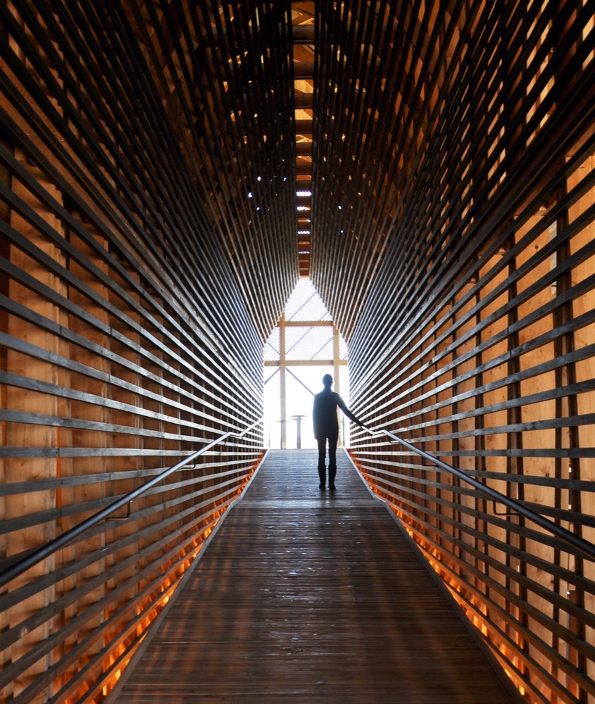 Budynek nawiązuje do kształtu tradycyjnej stodoły z regionu Kentucky, inspirując się lokalnymi suszarniami tytoniu. Jego prostota formy kontrastuje z precyzyjnym detalem elewacji – okładziną z drewnianych desek ułożonych w wzór chevron. Strefy pełne i półprzezroczyste tworzą unikalne wrażenie gry światła i przestrzeni, które zmieniają się wraz z porą dnia. Po zmroku ciemna bryła staje się świetlistym, filigranowym latarniowcem górującym nad rzeką.