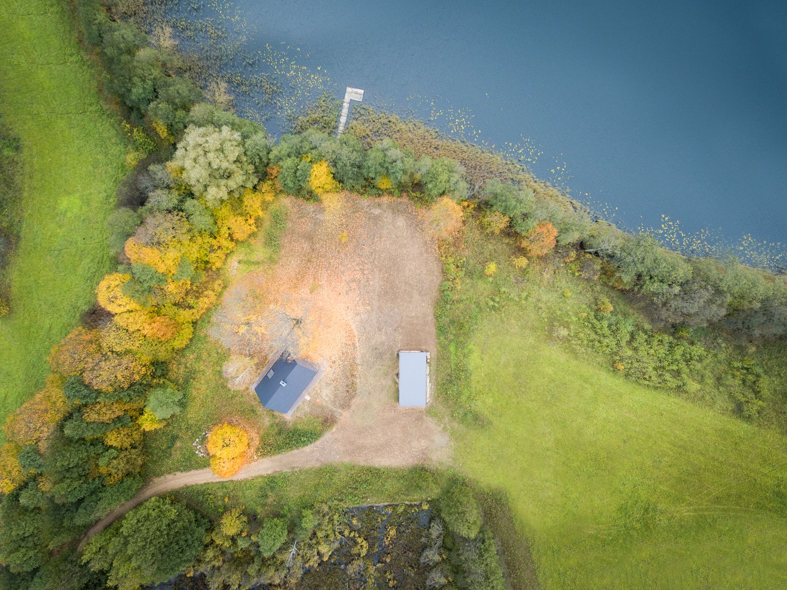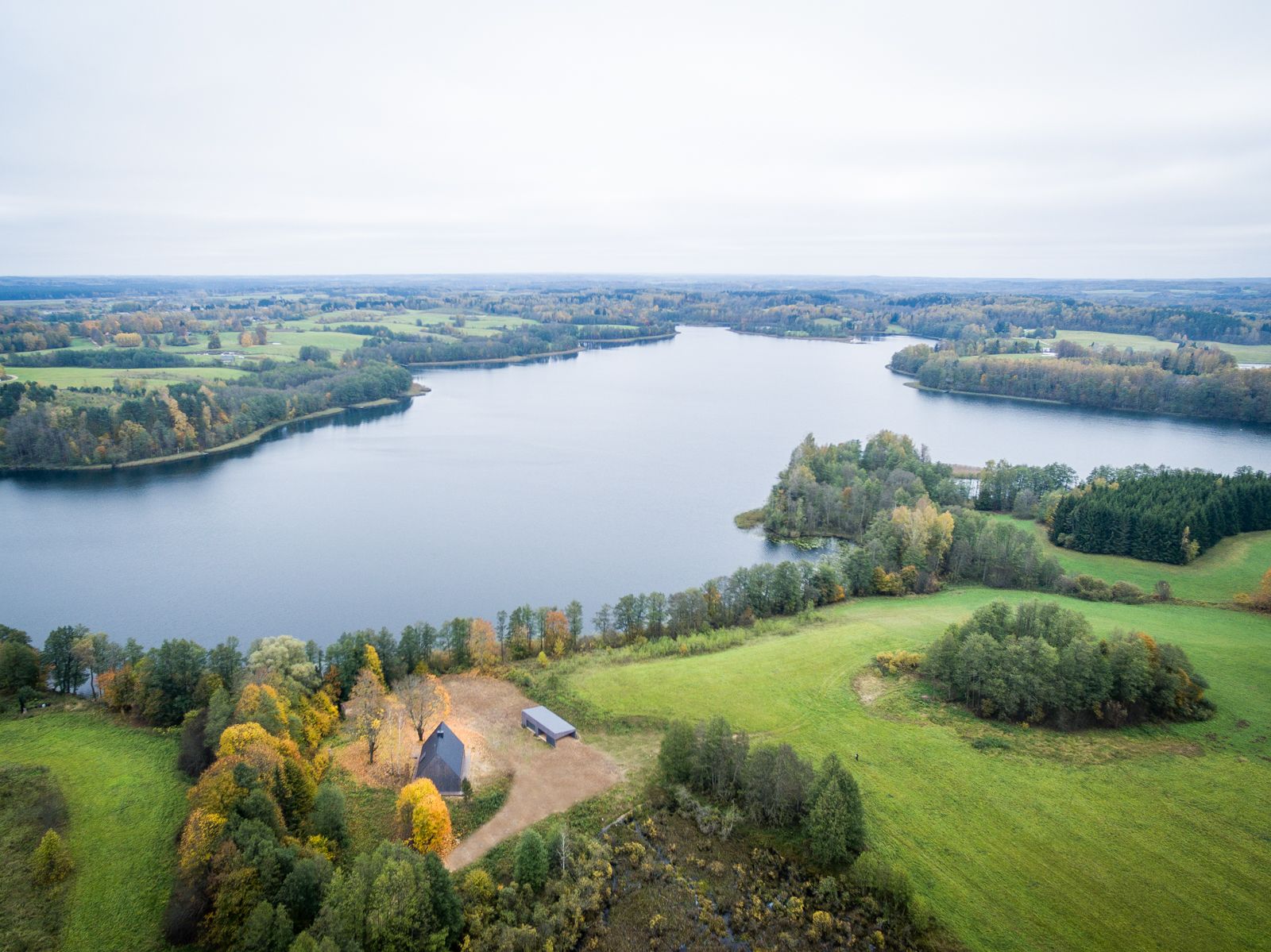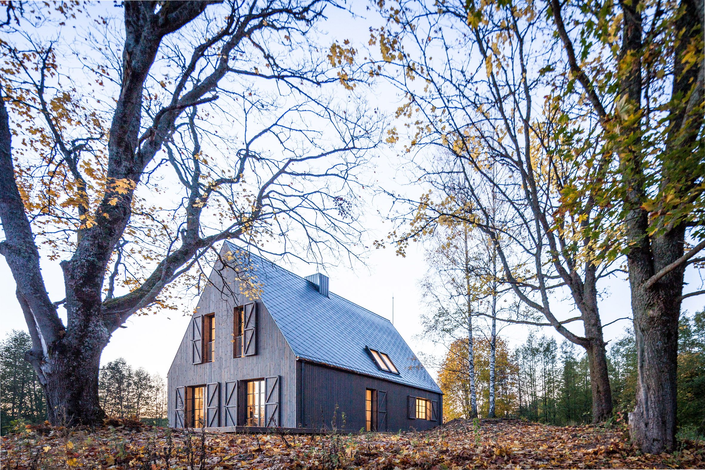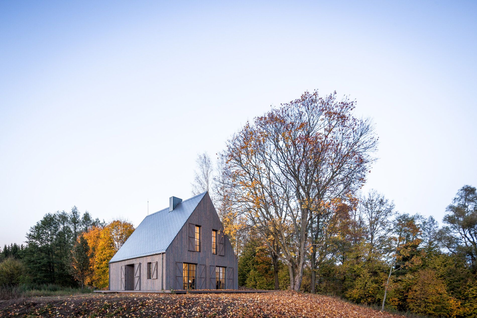 Dom zaprojektowało wileńskie studio architektoniczne Aketuri Architektai, zwracając uwagę na liczne odniesienia do typowych domów wiejskich z tego rejonu. Dzięki temu budynek doskonale pasuje do swego naturalnego otoczenia, choć ma wszystkie cechy nowoczesnego domostwa.Organizacja projektu odzwierciedla typowe lokalne nieruchomości, więc główny budynek zwrócony jest w stronę mniejszego w stylu szopy, który znajduje się po drugiej stronie prostego podwórza. W mniejszym budynku znajduje się miejsce do przechowywania potrzebnego na działce sprzętu oraz drewna, ale może być on też wykorzystywana jako stajnia. Na skraju jeziora urządzono jeszcze małą saunę.