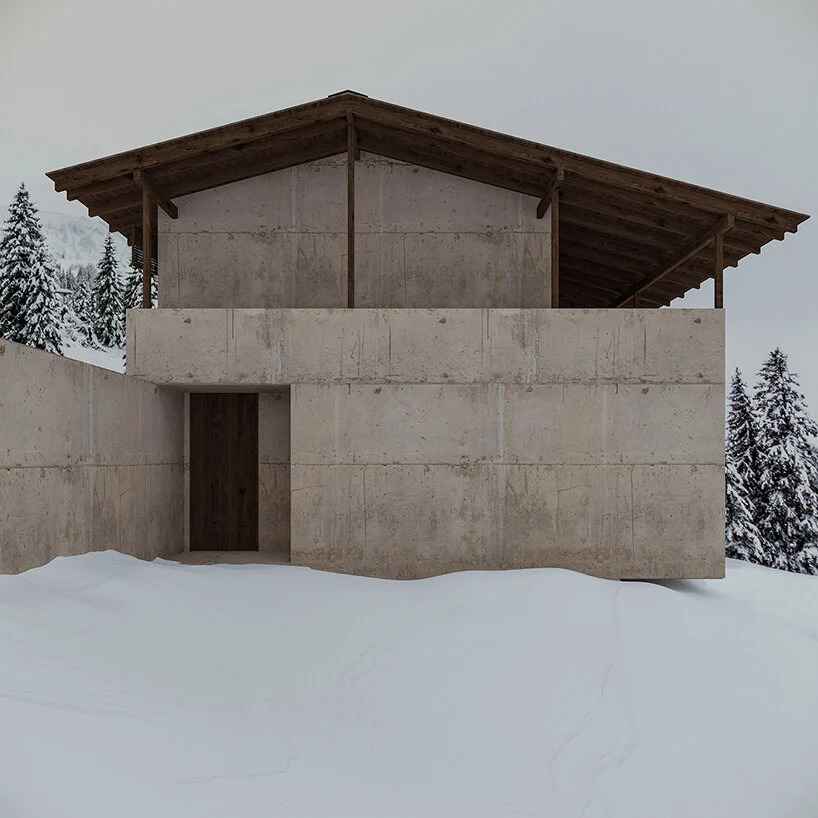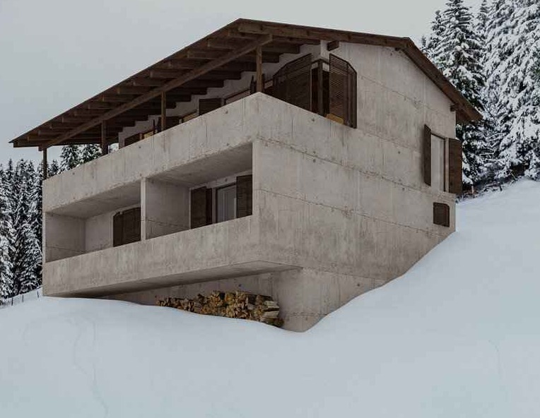 Willa w Brezo to monumentalna, górska kryjówka z surowego betonu, zaprojektowana przez architekta i artystę 3D Besima Krosę, prowadzącego studio projektowe w Prisztinie w Kosowie. Budynek został pomyślany jako ascetyczna rezydencja osadzona na odludnym, ośnieżonym zboczu górskim, gdzie architektura stapia się z krajobrazem poprzez ciężką formę i brutalistyczny charakter materiałów. Zamiast tradycyjnej, drewnianej chaty czy formy znanej jako nowoczesna stodoła, projekt świadomie sięga po beton, ostre kąty i masywne bryły, które wizualnie nawiązują do skalistego otoczenia i surowości górskiego klimatu.