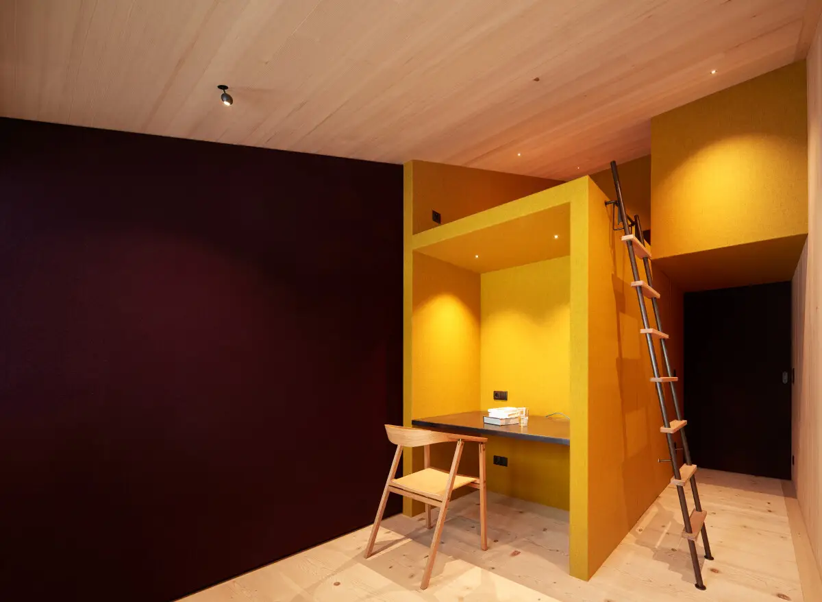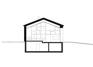 Brak odpowiednich istniejących rozwiązań zaowocował stworzeniem nowego budynku, który sięga po metafory tradycyjnych domów, ale je twórczo przekształca. Przestrzeń dzienna, robocza i zewnętrzna – ogród, podwórko, krajobraz – tworzą jedną ciągłą strukturę mieszkalną. Centralną osią przestrzeni jest podłużny pokój, pełniący funkcję salonu, strefy wejściowej i pokoju ogrodowego. Parter otwiera się na kuchnię przy wejściu – zgodnie z lokalną tradycją – gdzie beton architektoniczny i niska wysokość sufitu tworzą przytulną atmosferę.