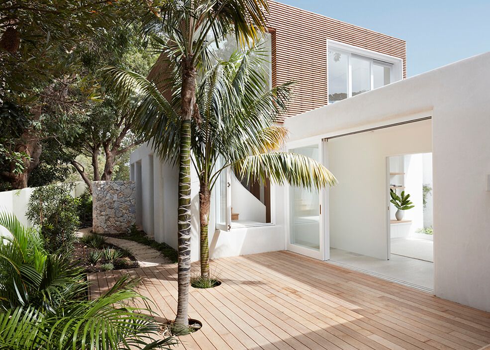 Dom powstał na niewielkiej działce sąsiadującej z chronionym terenem leśnym, otaczającym plaże Palm Beach. Projektanci zadbali o to, aby architektura harmonijnie wpisywała się w naturalne otoczenie i podkreślała lekkość oraz relaksacyjny charakter miejsca. Starannie rozmieszczone okna kadrują widoki na drzewa i krajobraz, wprowadzając przyrodę do wnętrz. Całość dopełnia naturalna paleta materiałów, charakterystyczna dla Studia CM, która spaja formę domu, jego układ funkcjonalny oraz detale architektoniczne.