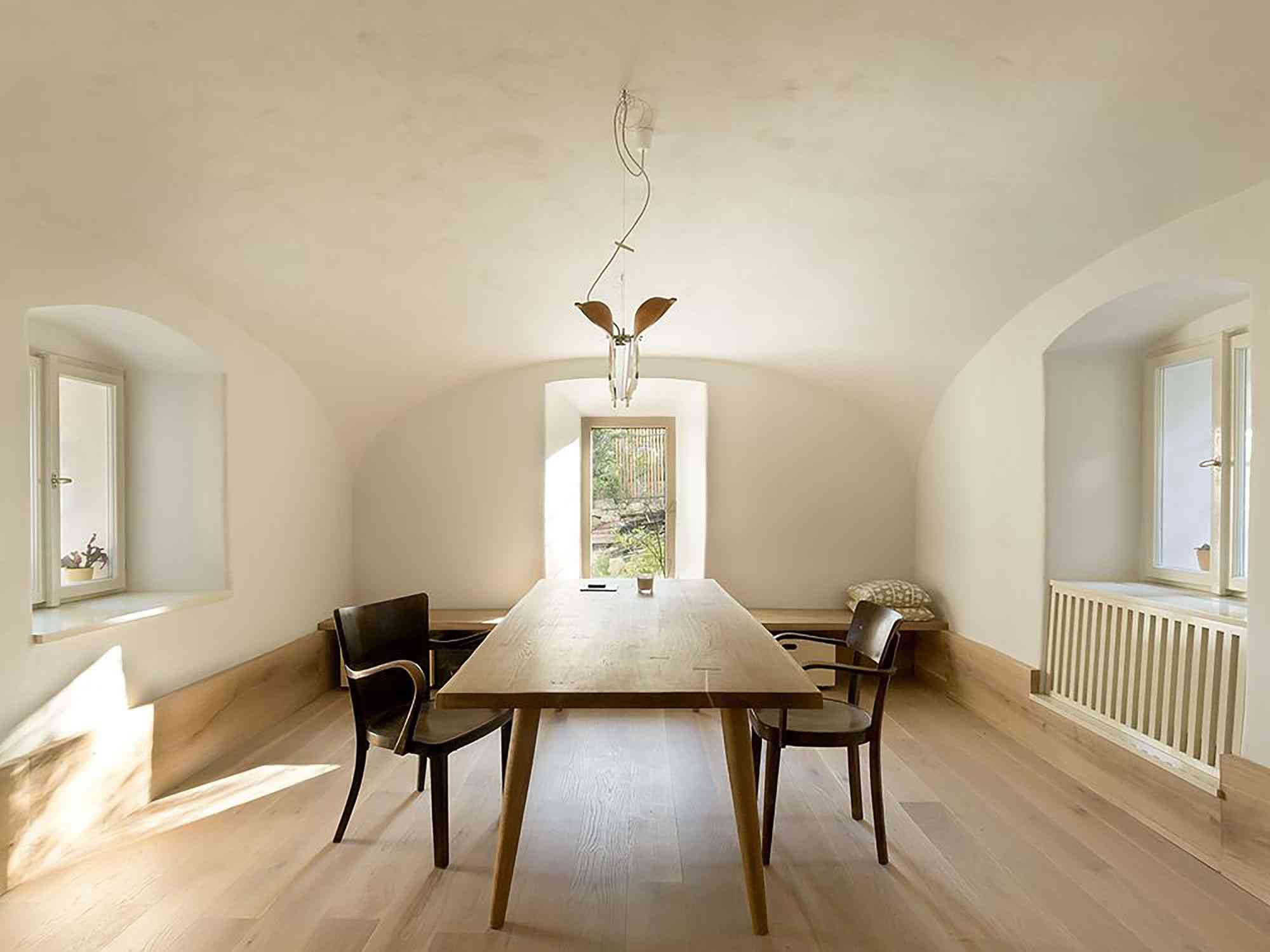 Dwieście lat temu w czeskiej wiosce Hloubětín, dziś będącej częścią Pragi, powstała skromna kolonia domków robotniczych. Ta niezwykła enklawa, mimo rozwoju miasta, przez lata zachowała swój wiejski charakter i autentyczną atmosferę. Architekci z pracowni A1 odnaleźli tu dom, który wciąż pozostawał poza miejską infrastrukturą — z oryginalną latryną, sklepionymi sufitami, kamienno-ceglanymi ścianami o grubości 900 mm i sześcioma niewielkimi oknami. Ciężka, rustykalna bryła wymagała poszanowania historii, a jednocześnie subtelnego dostosowania do współczesności, tworząc wyjątkową przestrzeń łączącą ducha wsi i bliskość metra. To idealny przykład, jak tradycyjna architektura może stać się podstawą dla koncepcji, jaką dziś określa się mianem nowoczesna stodoła.