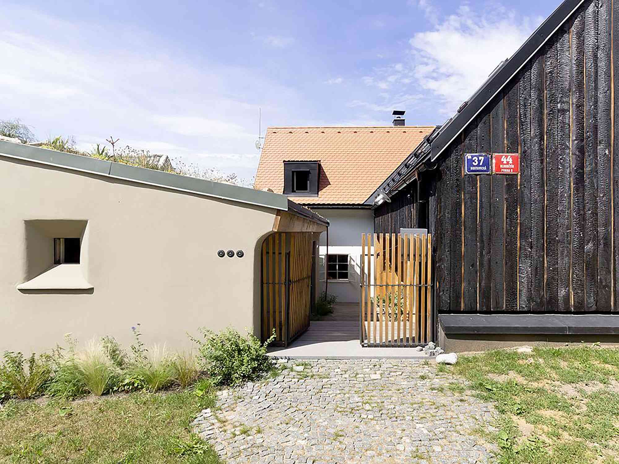 Architekci David Maštálka i Lenka Křemenová postanowili połączyć życie rodzinne i zawodowe, realizując projekt polegający na zestawieniu starego domu z nowym budynkiem. Nowa część powstała z drewna, z metalowym, dwuspadowym dachem i ciemną elewacją, dzięki czemu tworzy kontrast, ale też harmonijny dialog z historyczną zabudową. Cały proces – od pozwoleń po budowę – był pełen wyzwań i trwał sześć lat. Odkrywanie braku fundamentów, ukrytej piwniczki czy konieczność wielokrotnych zmian dokumentacji projektowej ukazywały, jak złożone jest łączenie tradycji z nowoczesnym podejściem architektonicznym.
