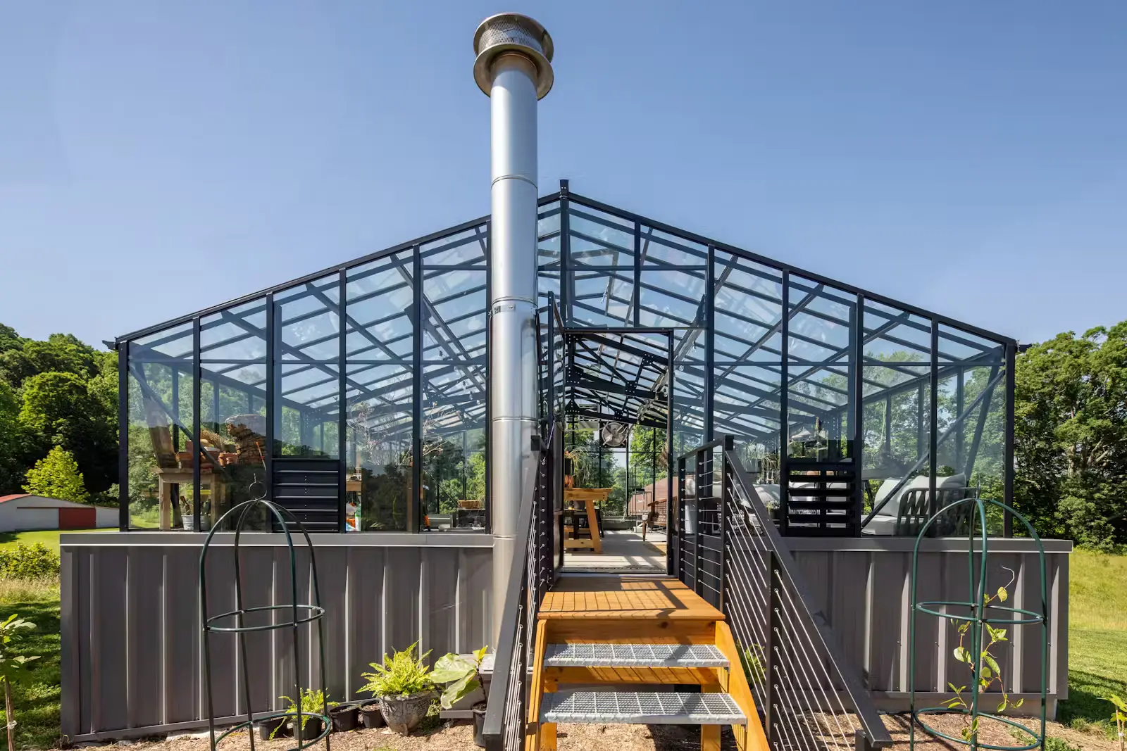 Projektanci Russ Herndon i Allyn Lambert stworzyli szklany dach szklarni, używając czarnej stalowej ramy i hartowanego szkła niskoemisyjnego. Przestrzeń pod szklarnią, pieszczotliwie nazywana przez Nesbitów „bunkrem”, ma kuchnię i pomieszczenia mieszkalne, które służą jako mały domek gościnny. Ta przestrzeń była kiedyś piwnicą pierwotnego mieszkania. Ponieważ pierwotnie wbudowano ją w ziemię, przestrzeń pozostaje chłodna, nawet gdy temperatura szklarni wynosi 45 stopni. Automatyczne wentylatory włączają się, gdy szklarnia ma temperaturę powyżej 32 stopni, a grzejniki włączają się, gdy temperatura spada poniżej 10 stopni.