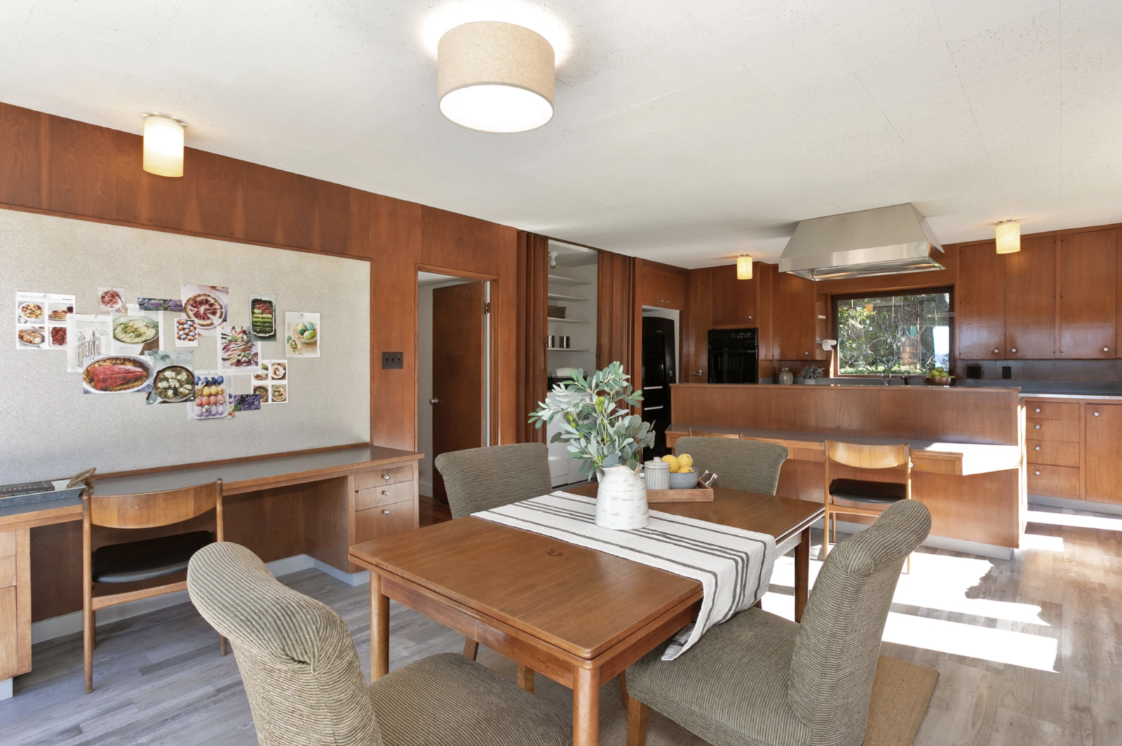 Niektóre pomieszczenia zostały odświeżone w ostatnich latach, w tym kuchnia i wszystkie cztery łazienki. Kuchnia zachowała dawny charakter i drewniane szafki wykonane na miarę, ale jest dobrze oświetlona i nowocześnie wyposażona. Nie brakuje w niej blatów i okien, z których jedno umieszczone jest nad kuchennym zlewem, wychodząc na ogród z tyłu domu. Tuż obok salonu znajduje się biblioteka, która jest przytulnym miejscem do relaksu.