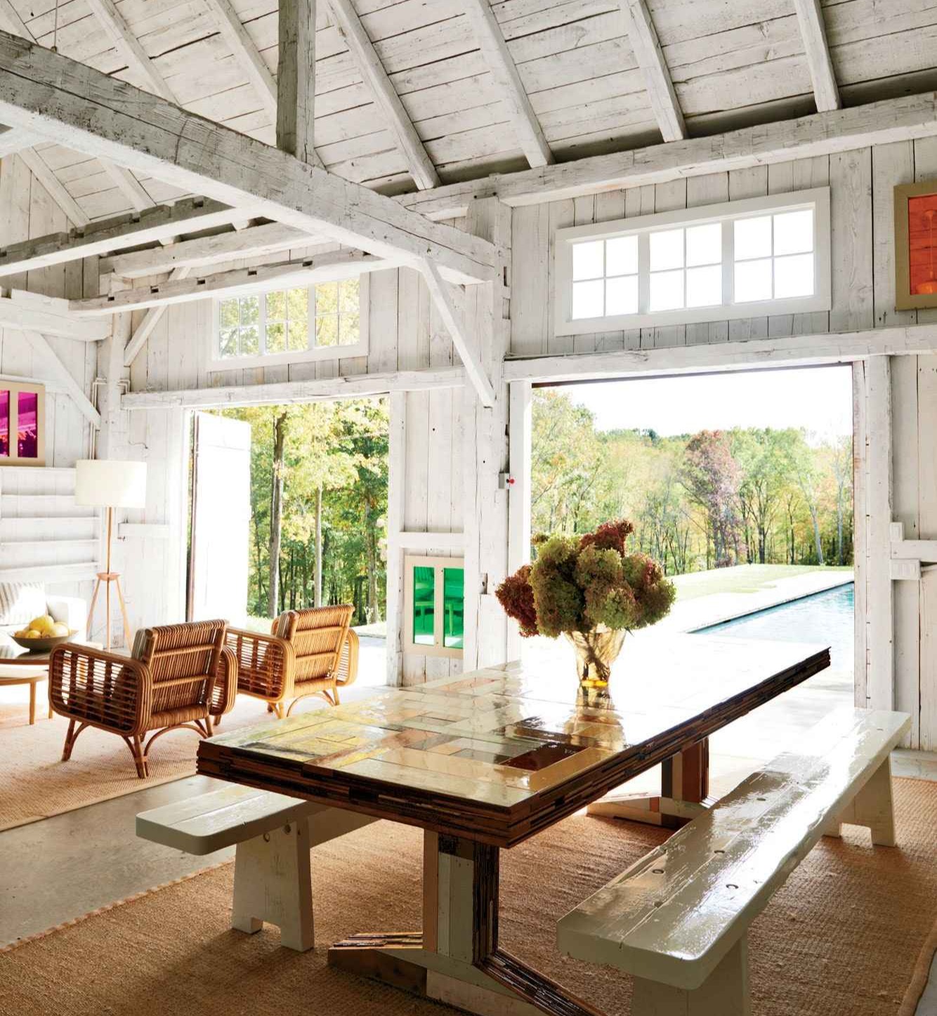 Projektantka wnętrz India Mahdavi, znana z odważnego łączenia kolorów i form, nadała wyjątkowy charakter rodzinnej posiadłości w hrabstwie Litchfield w stanie Connecticut. Jej klienci, kolekcjonerzy sztuki z Londynu, postanowili zamienić miejskie życie na spokojną codzienność w otoczeniu natury. Mahdavi miała za zadanie stworzyć przestrzeń, która połączy wytworny styl z przytulnością rodzinnego domu. Efektem stała się wiejska rezydencja pełna światła, koloru i harmonii, w której nowoczesny design przenika się z rustykalnym urokiem – niczym reinterpretacja idei, jaką niesie nowoczesna stodoła.