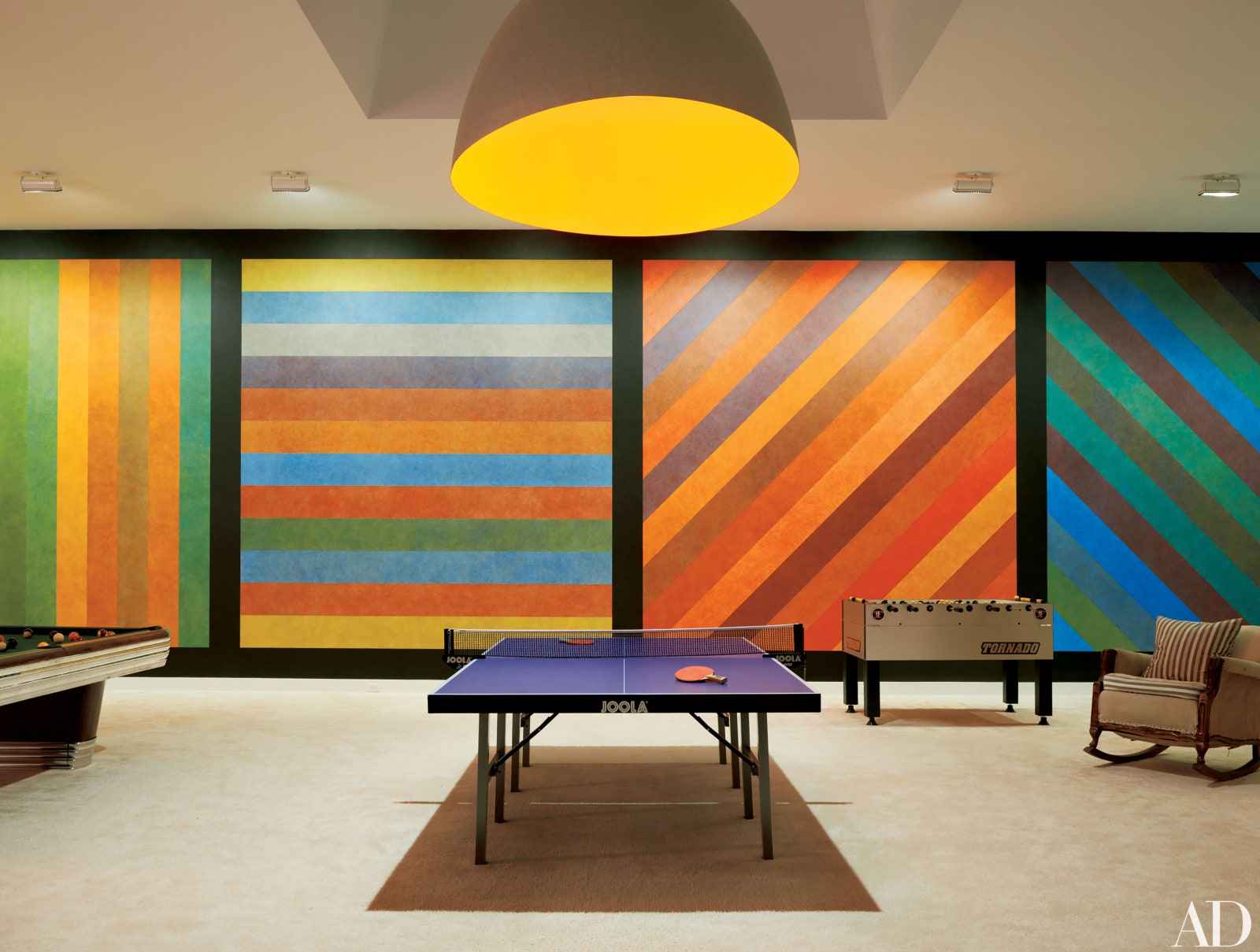 Wnętrza rezydencji odzwierciedlają mistrzowski balans między sztuką a designem. W przestronnej kuchni błyszczące szafki kontrastują z betonowymi blokami z lat 60., a w salonie uwagę przyciągają półokrągłe sofy w cytrynowym odcieniu oraz rzeźba ścienna Ellsworth Kelly. Obok nich znalazły się meble autorstwa XX-wiecznych mistrzów – Jean Royère, André Arbus czy Osvaldo Borsani. Biblioteka, w przeciwieństwie do jasnych, otwartych przestrzeni, zachwyca przytulnością i ciemniejszą paletą barw, tworząc idealne miejsce do relaksu i refleksji. Całość udowadnia, że nowoczesna stodoła może być nie tylko architekturą, ale też stylem życia – eleganckim, artystycznym i głęboko zakorzenionym w naturze.